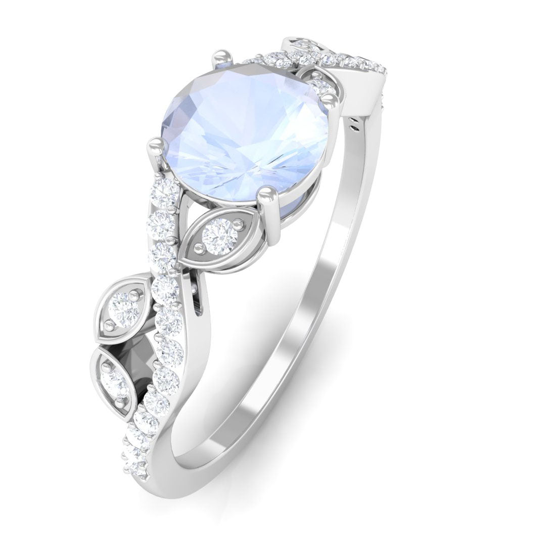 Round Shape Moonstone Designer Engagement Ring with Diamond