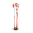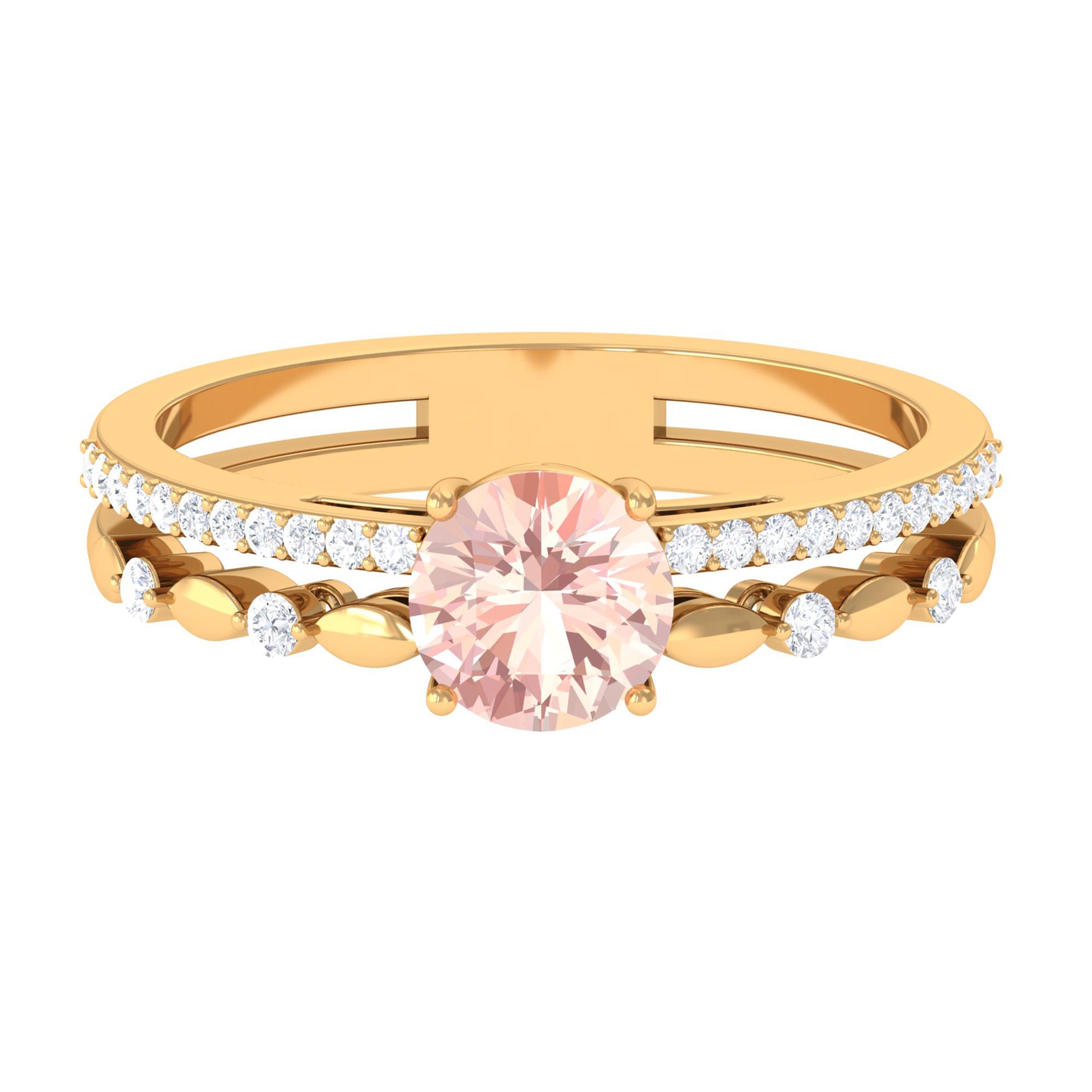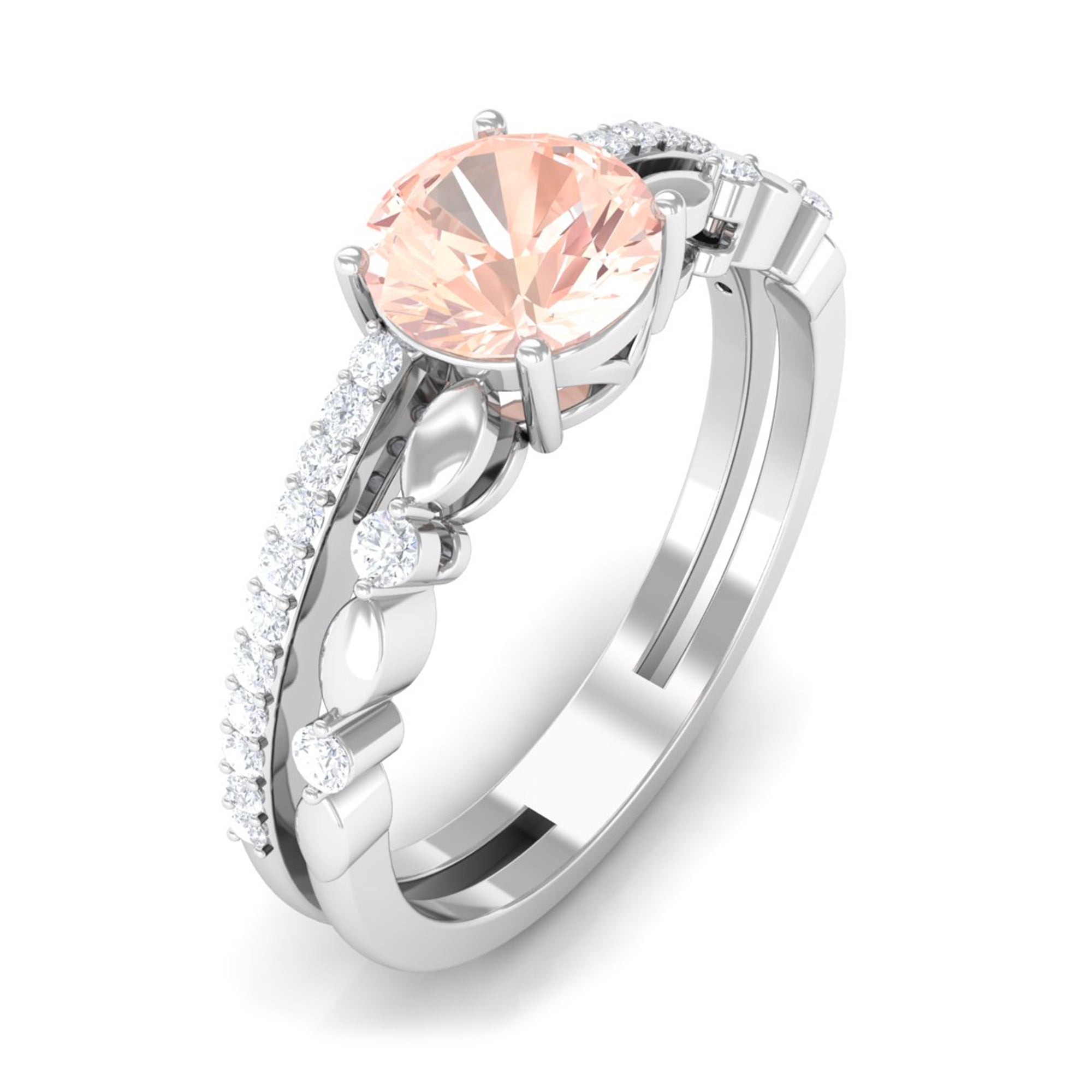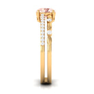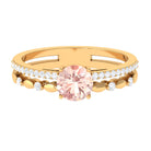 Round Shape Morganite Solitaire Double Band Ring with Diamond