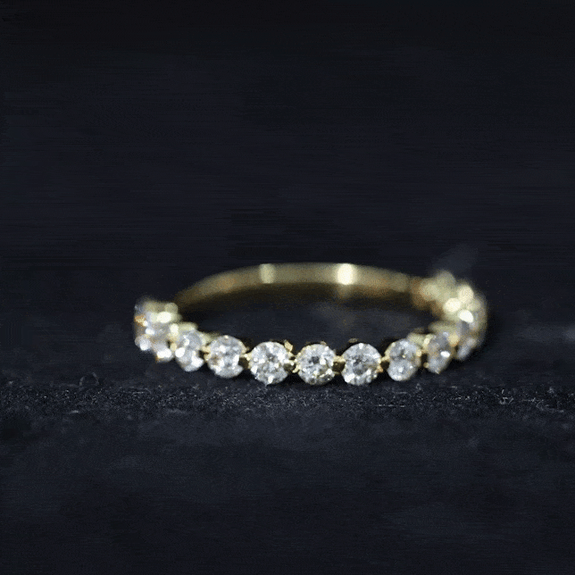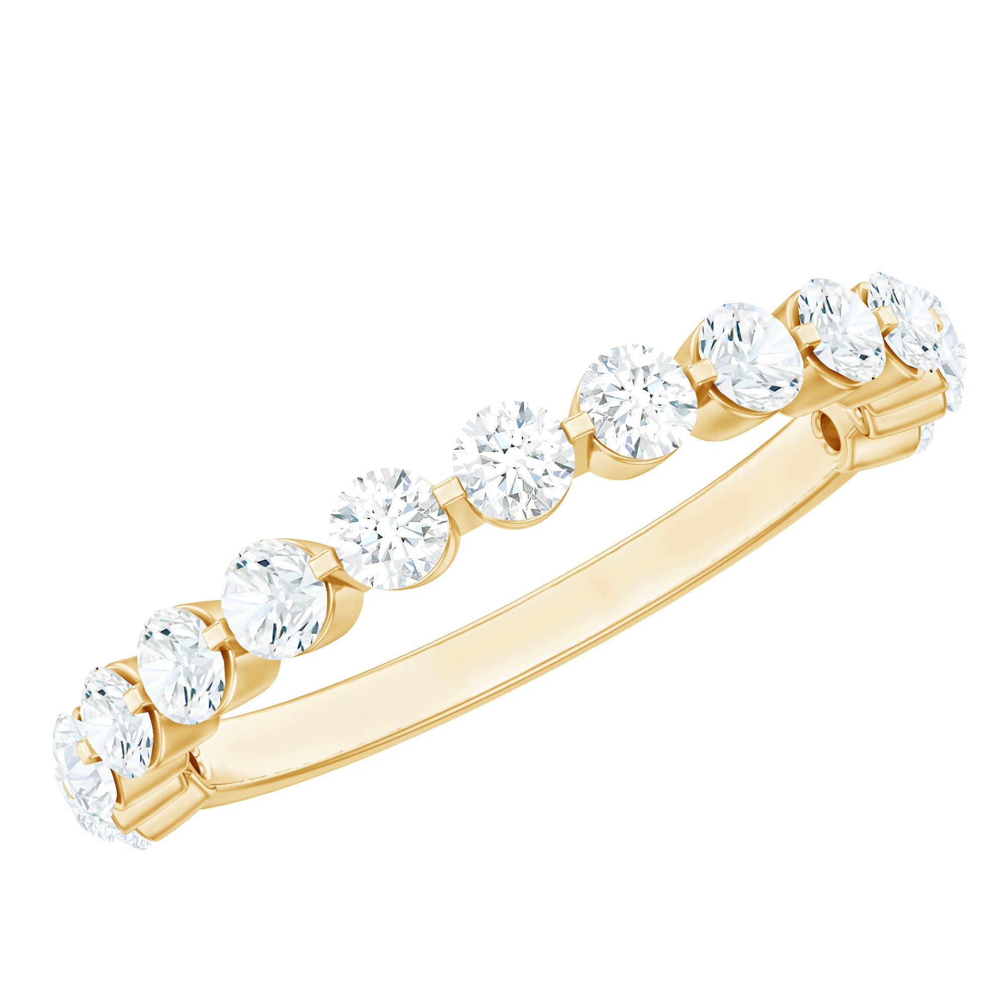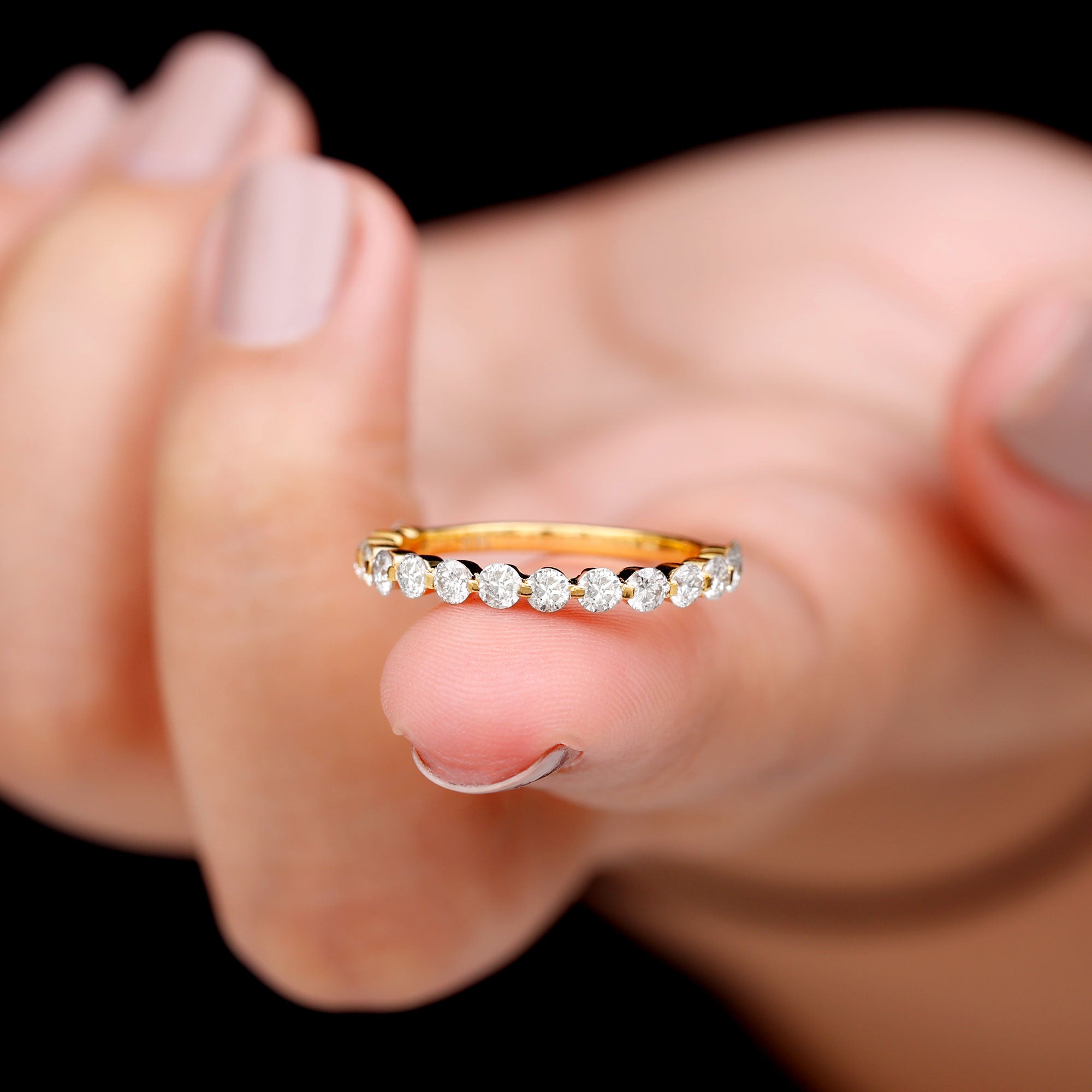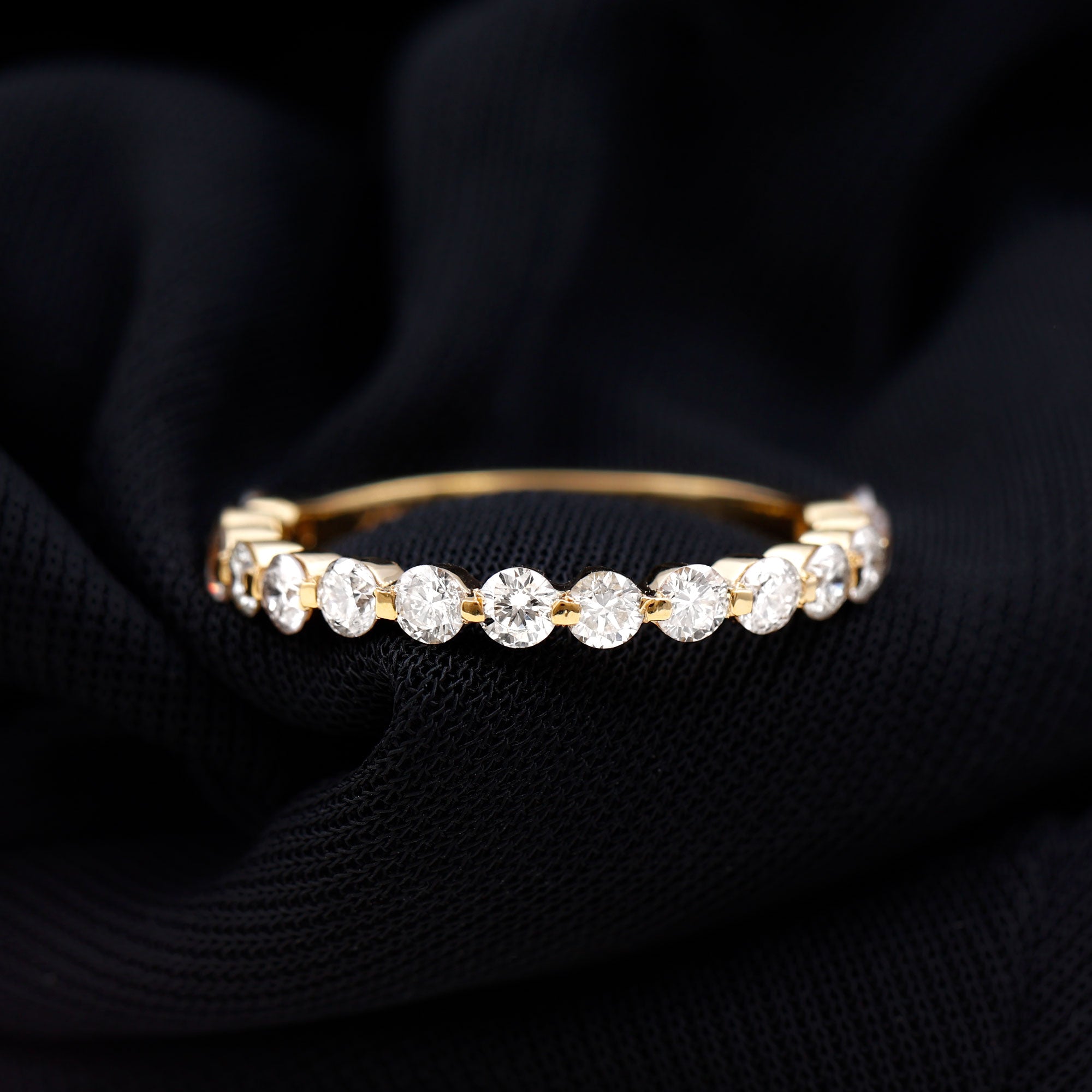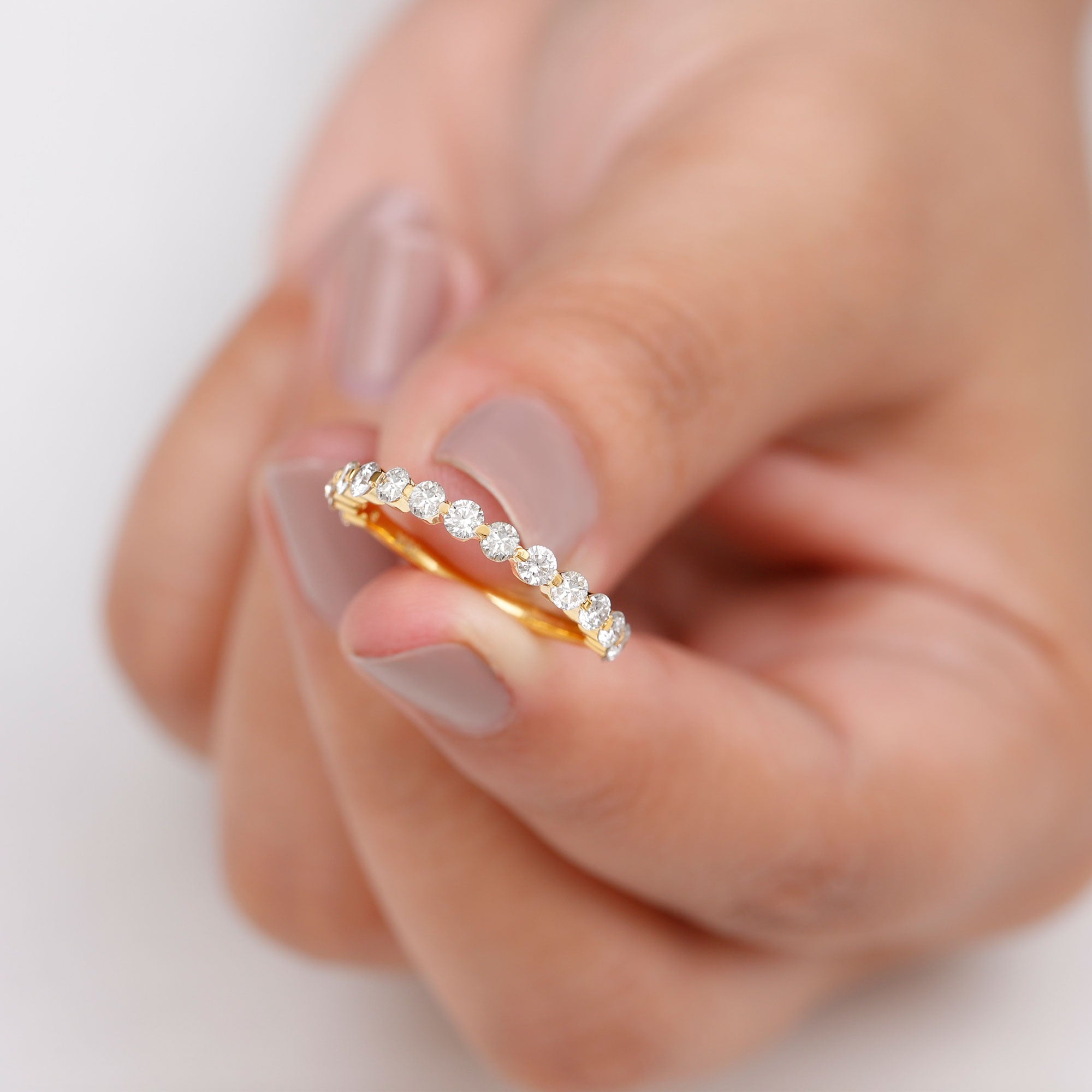 Elegance and brilliance meet in this stunning Half Eternity Band Ring, adorned with Round Shape Diamond Gemstones meticulously set along the band in a Floating Setting. Each gemstone seems to hover gracefully, forming a captivating and sophisticated design.