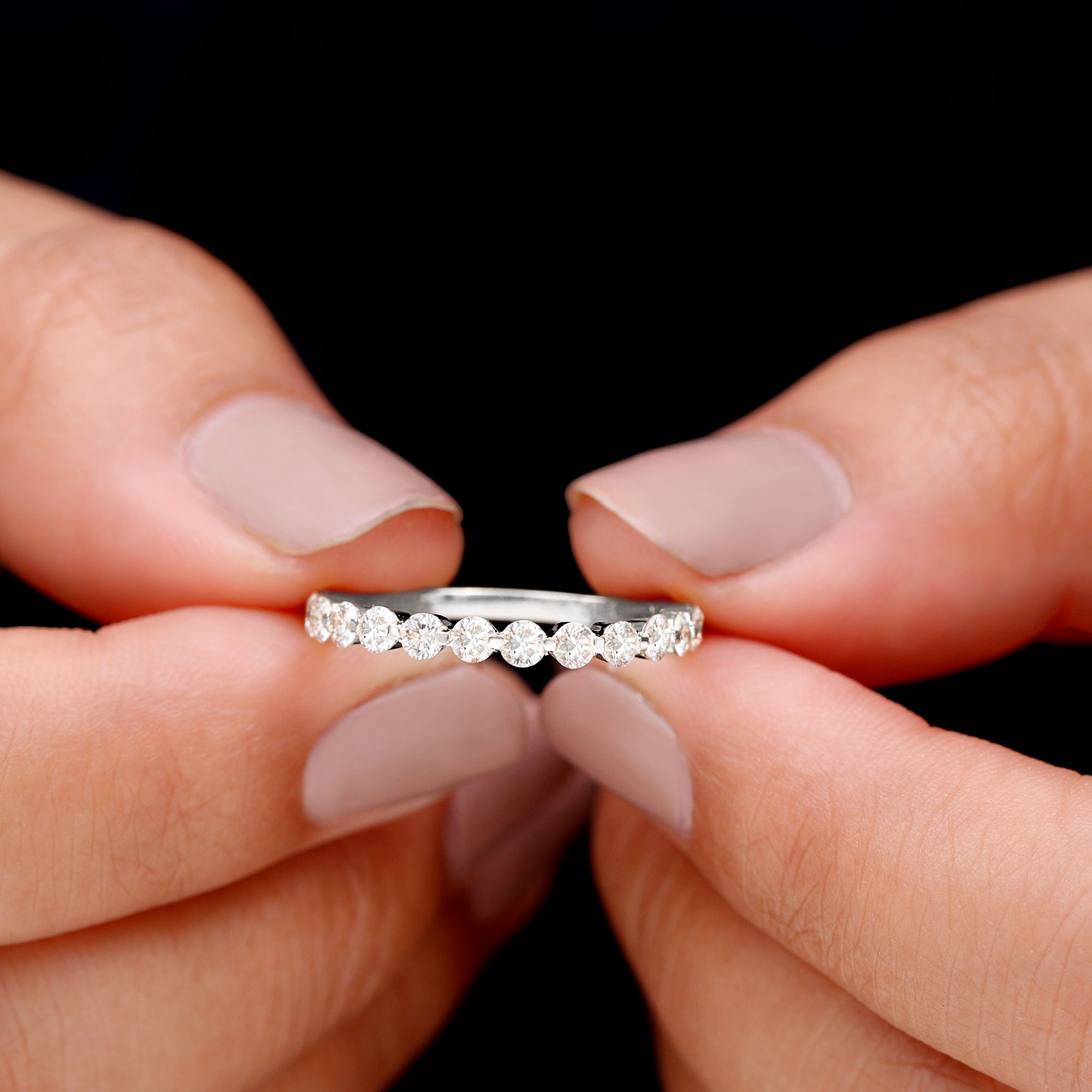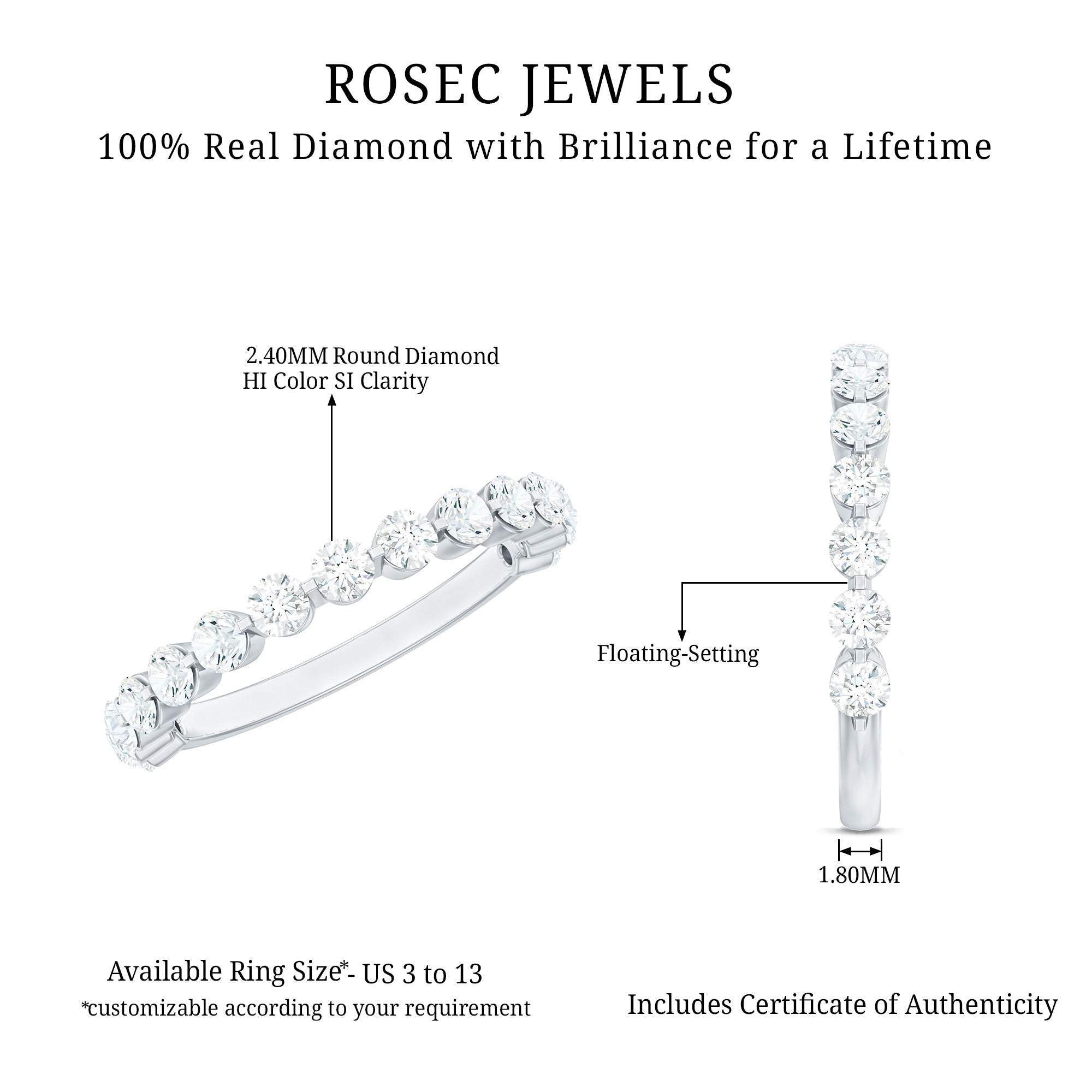 Round Shape Natural Diamond Floating Half Eternity Band Ring