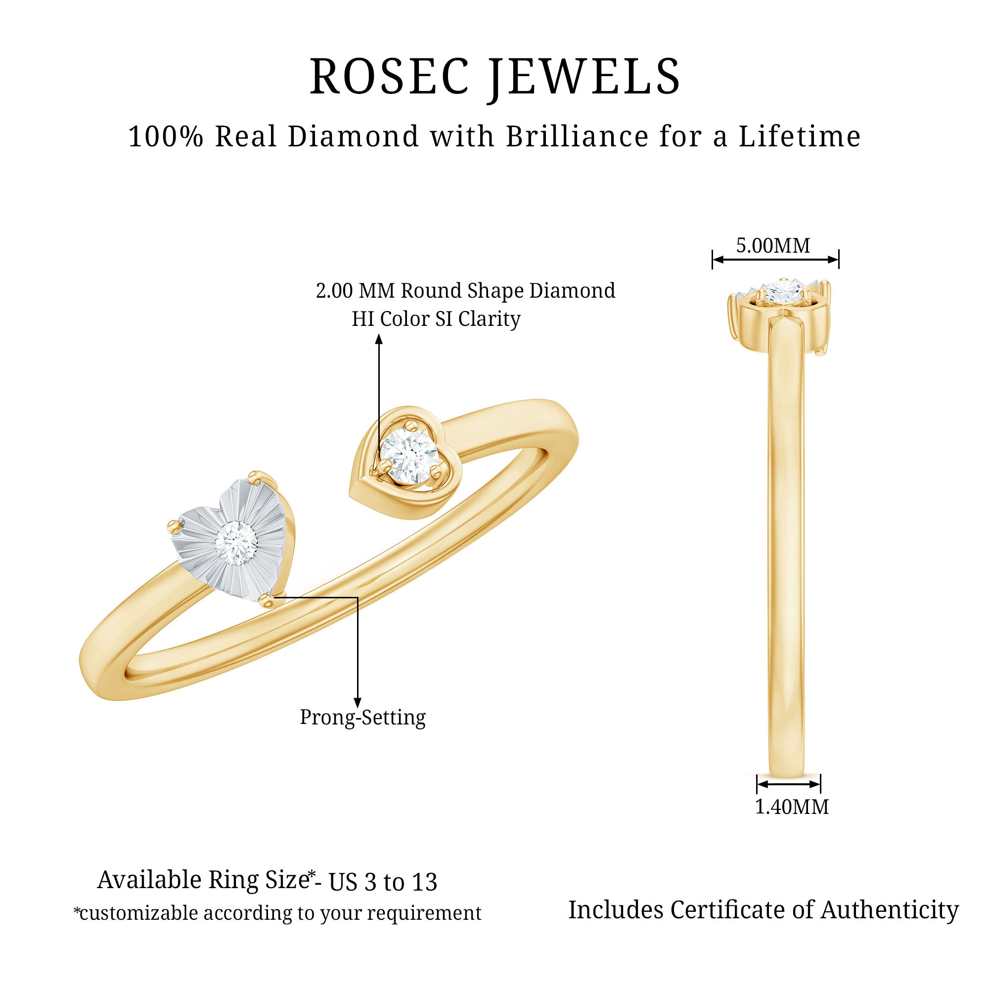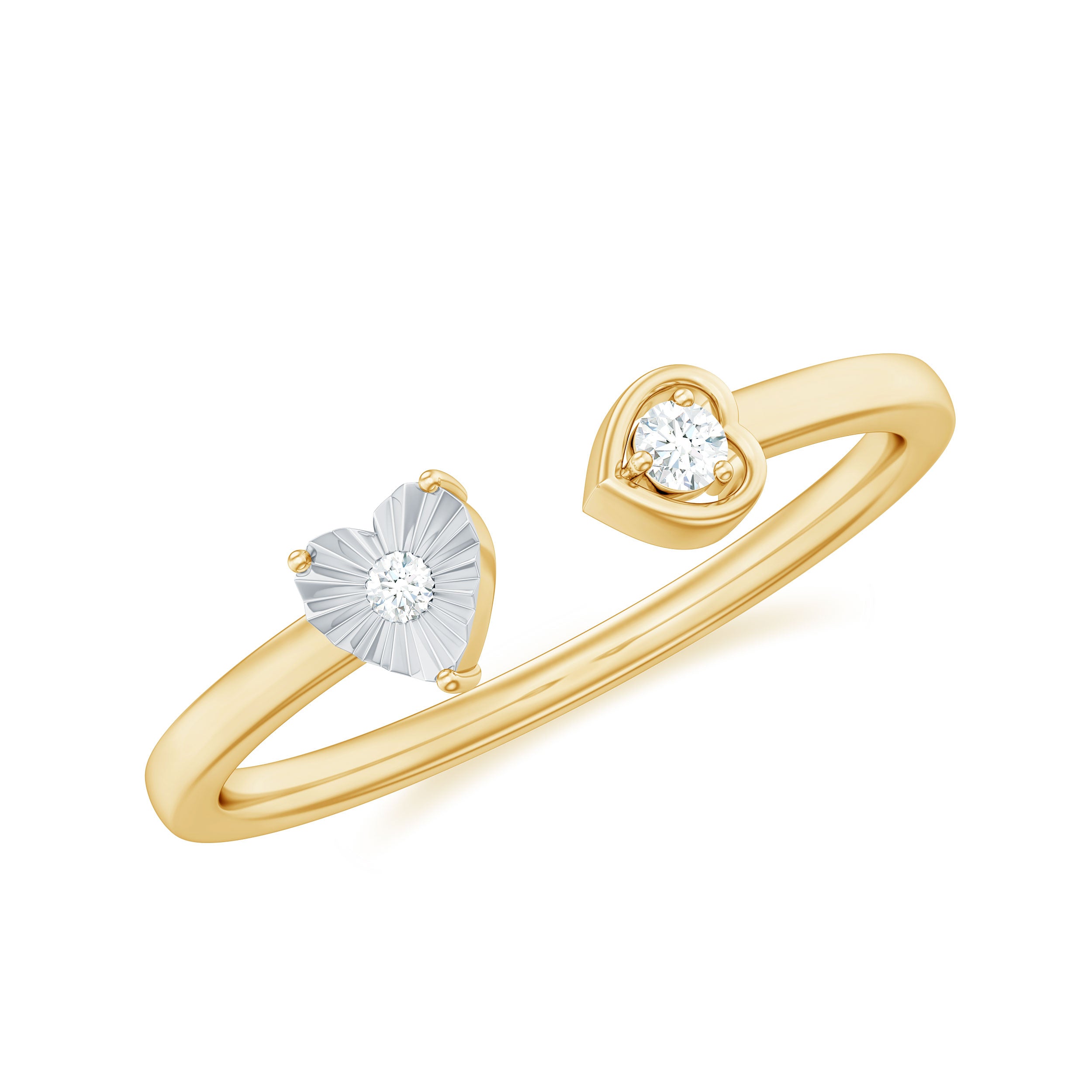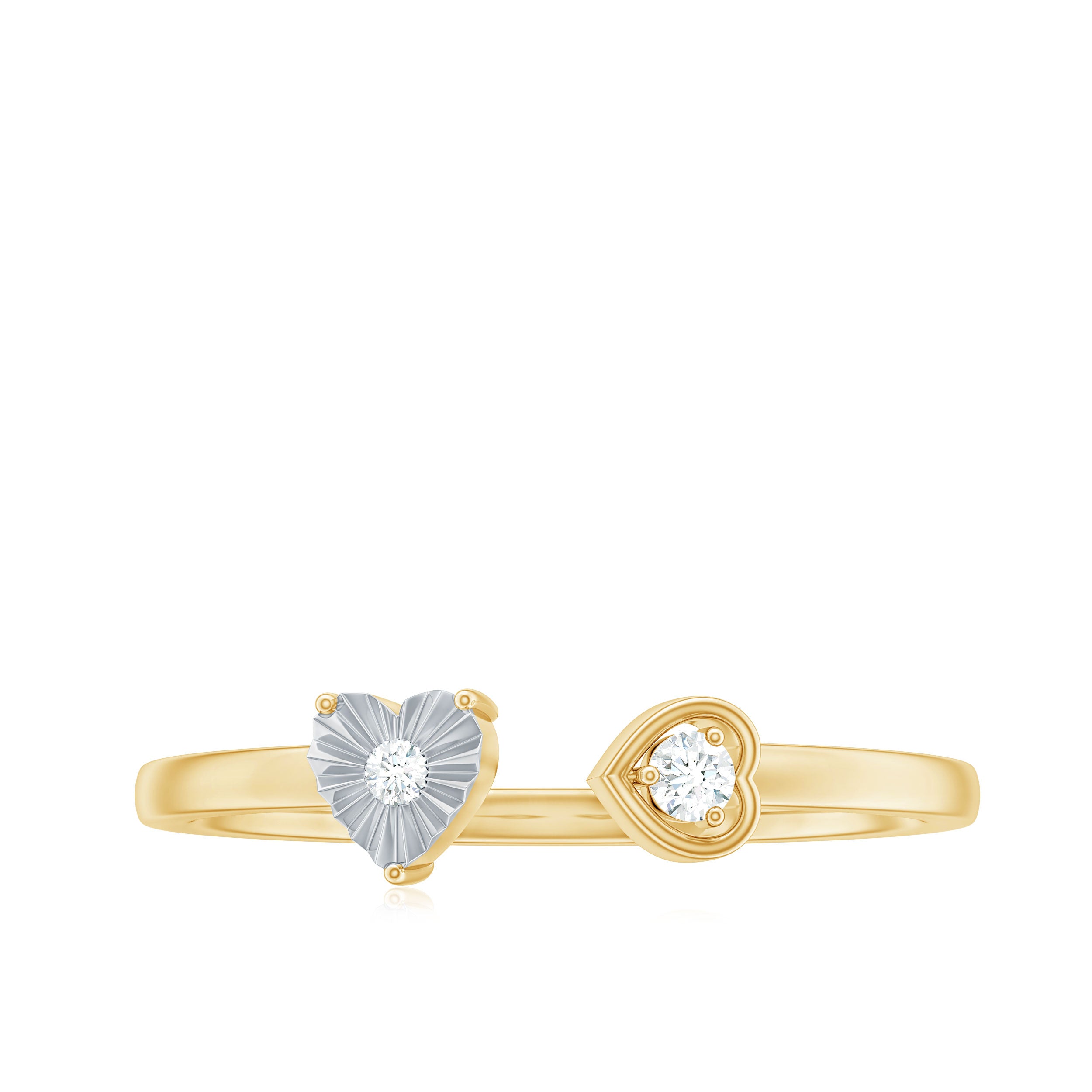 Round Shape Natural Diamond Heart Cuff Ring in Gold