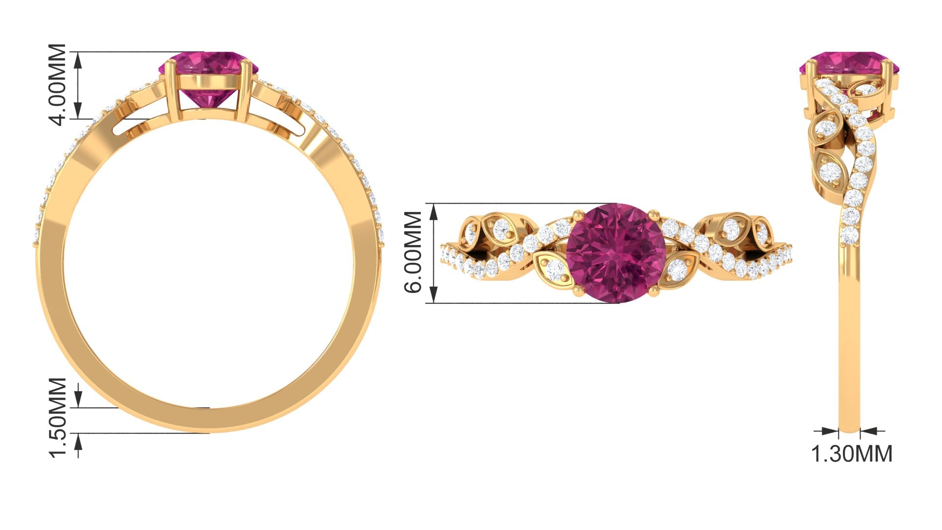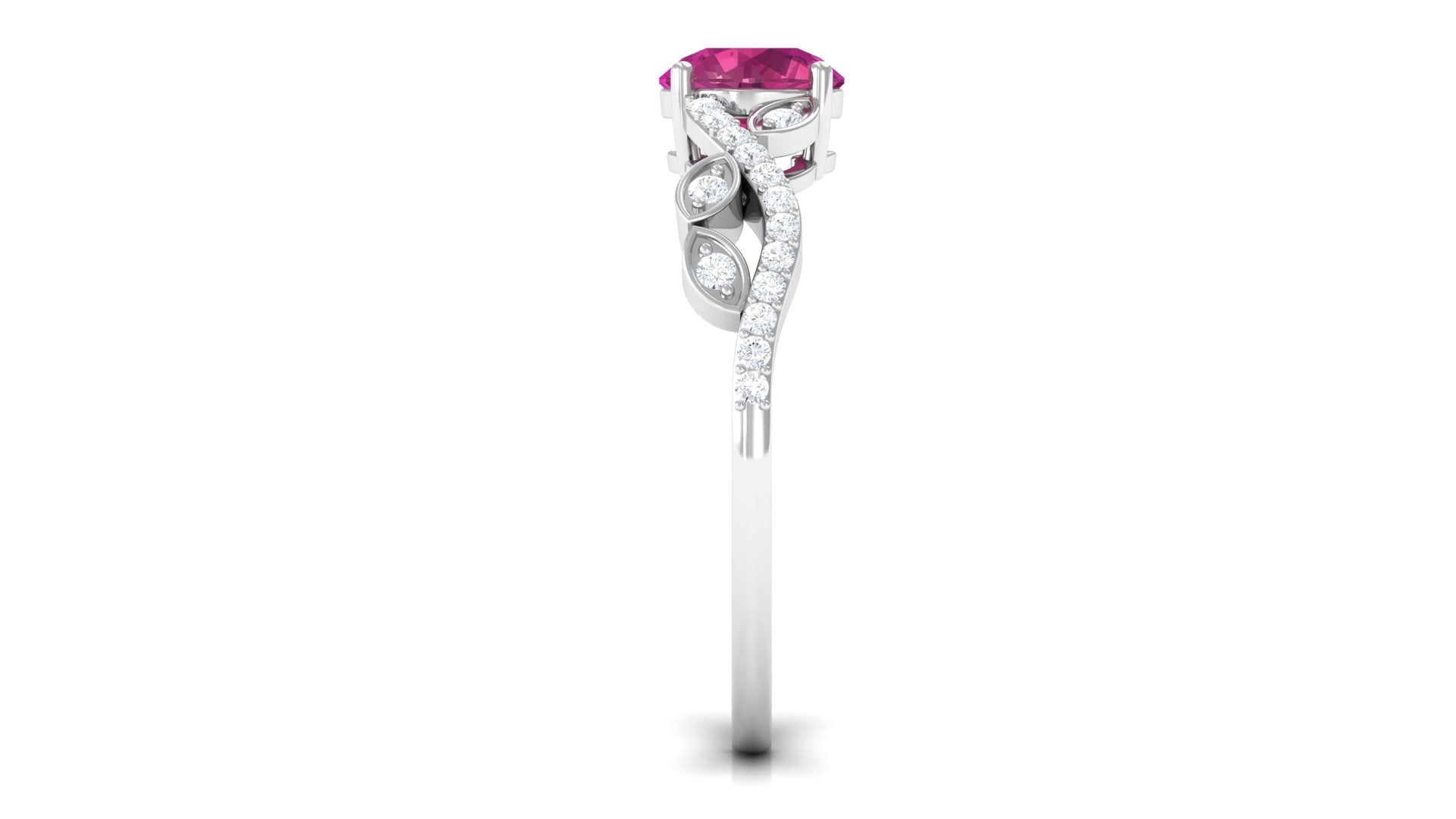 This designer engagement ring exudes luxury and style with its dazzling Round Shape Pink Tourmaline at the center, capturing attention with its bold and fiery pink hue. The shank of the ring is decorated with stunning Diamond stones, adding extra sparkle and glamour. Crafted with a meticulous attention to detail, this Pink Tourmaline engagement ring is designed to impress with its perfect balance of sophistication and contemporary flair. The Round Shape Pink Tourmaline is held in a secure prong setting that ensures its lasting beauty, making it a perfect choice for a bride who seeks a ring that is both unique and timeless.