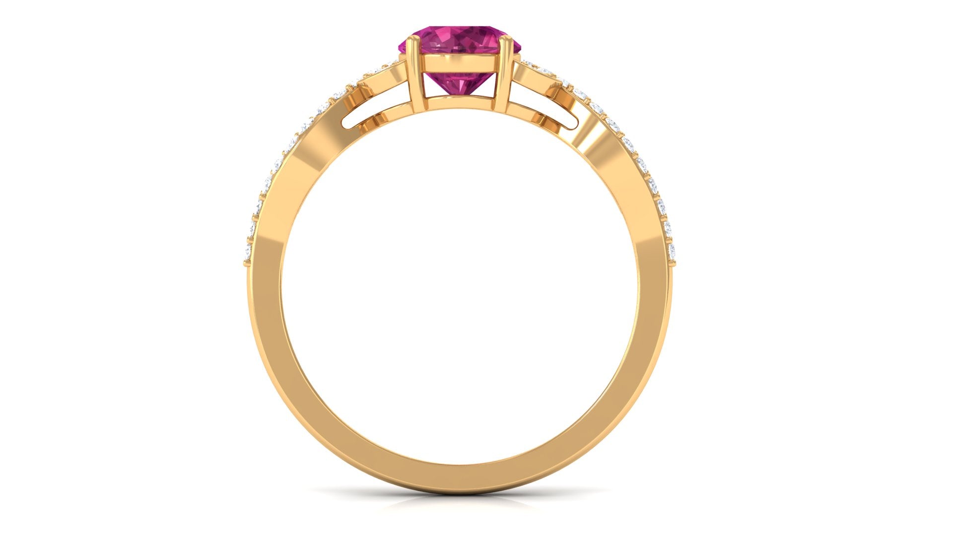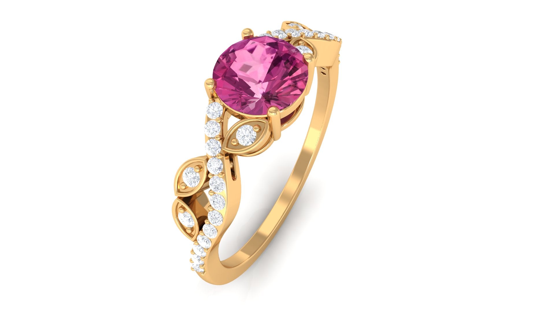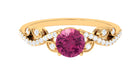 Round Shape Pink Tourmaline Designer Engagement Ring with Diamond