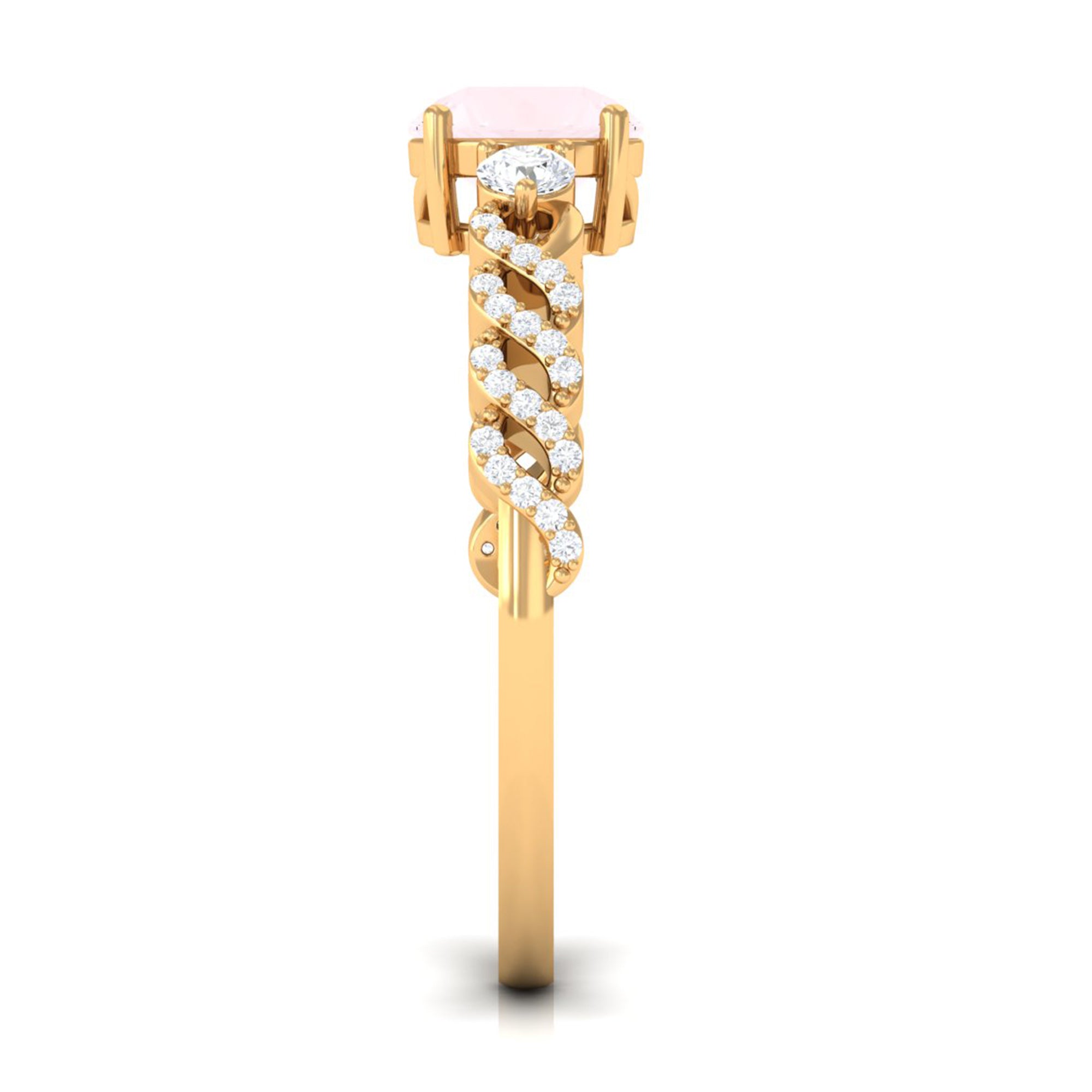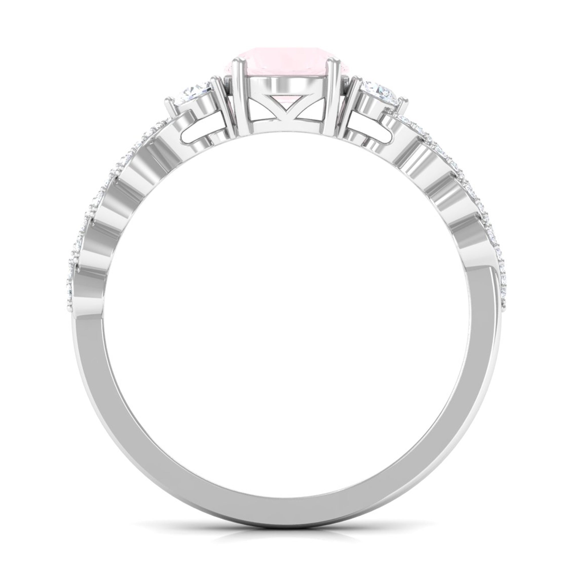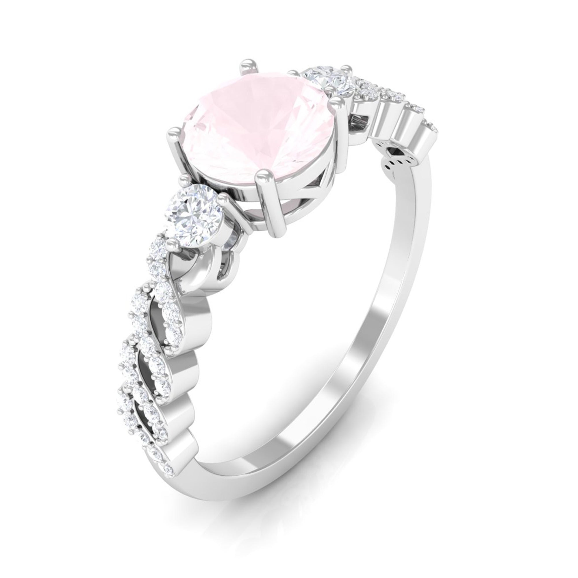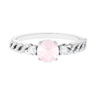 Round Shape Rose Quartz Designer Engagement Ring with Diamond Side Stones