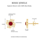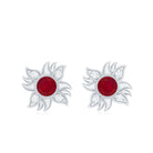 This Sunburst Stud Earrings is embellished with Round Shape Ruby is set at the center in a Bezel Setting and round shape Diamond are set as floral pattern.