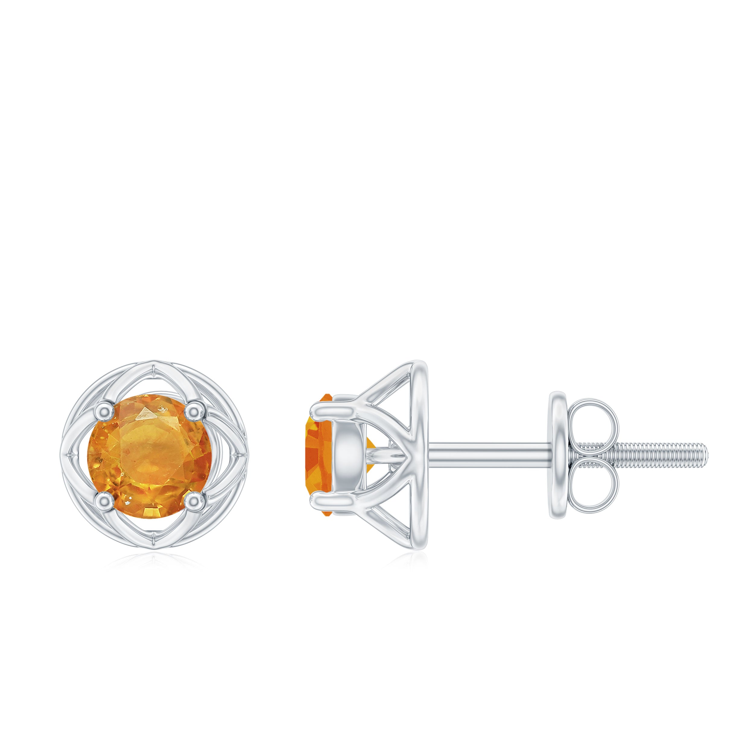 Round Shape Solitaire Orange Sapphire Flower Stud Earrings