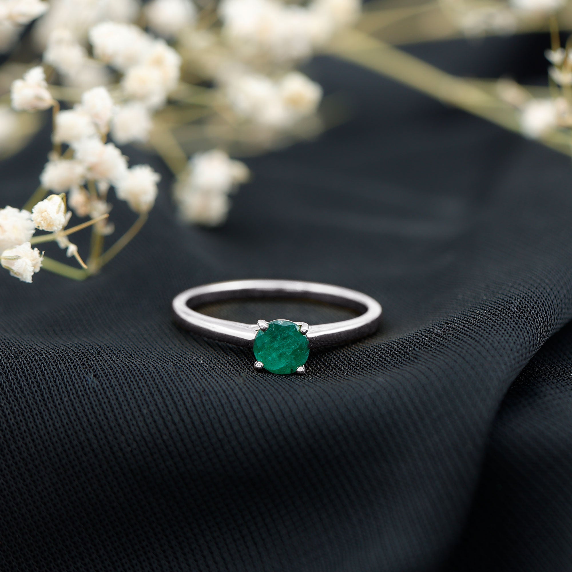 Round Shaped 5MM Emerald Solitaire Promise Ring for Her