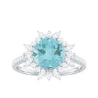 Round Sky Blue Topaz Statement Engagement Ring with Moissanite Floral Halo