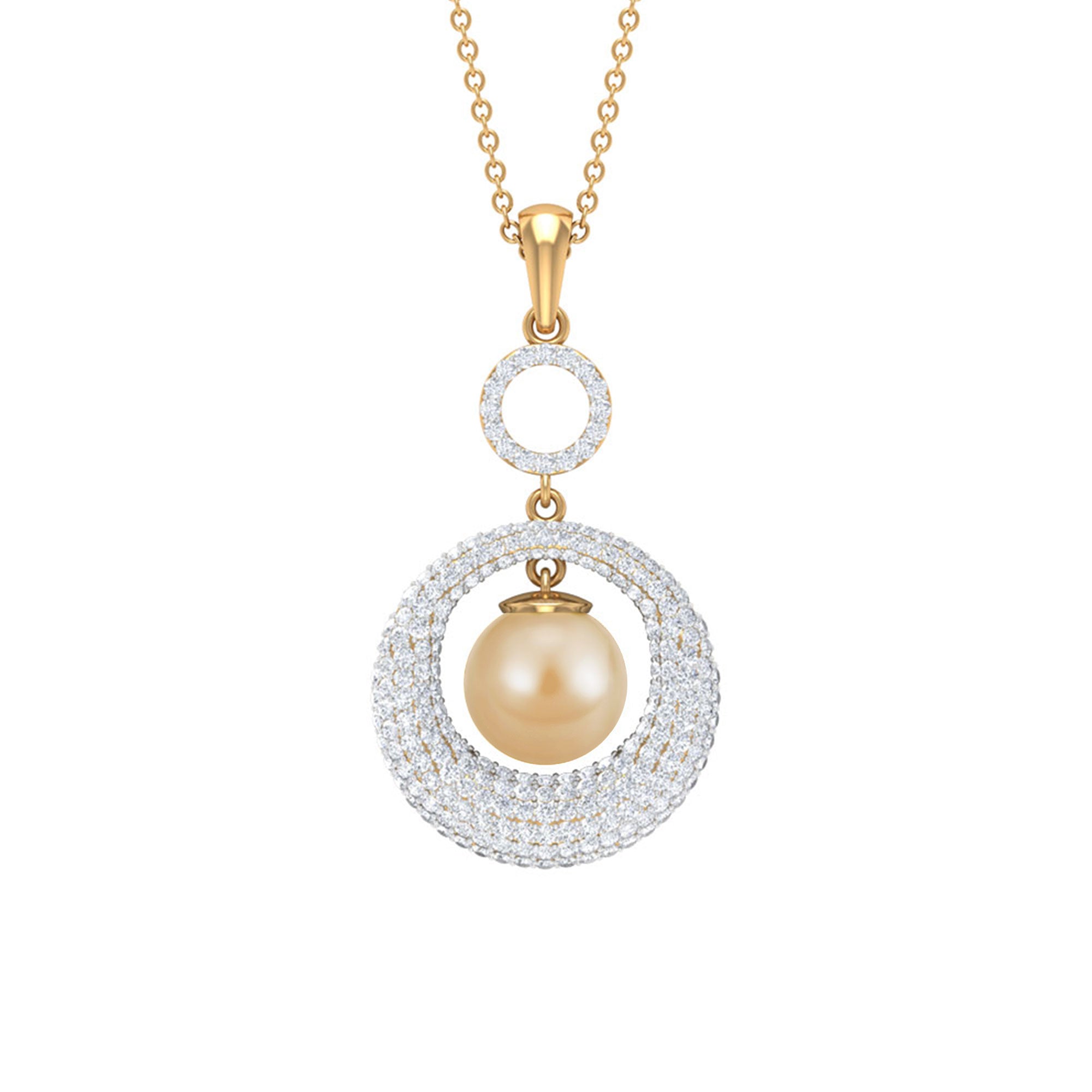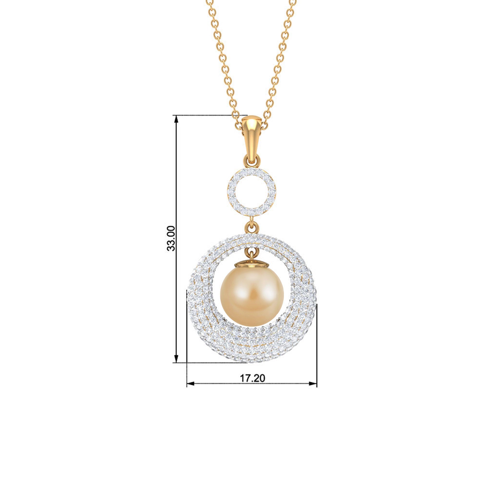 Its time to switch your queenly side with our exquisite Dangle Pendant, a masterpiece of elegance. Adorned with an open circle adorned with delicate Moissanite stones, gracefully suspended under it, a lustrous Round South Sea Pearl encircled by more glistening Moissanite stones. This pearl pendant is highly customizable and you can personalize it with a range of metal options to match your unique taste and style.