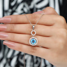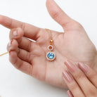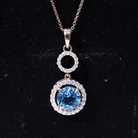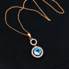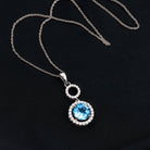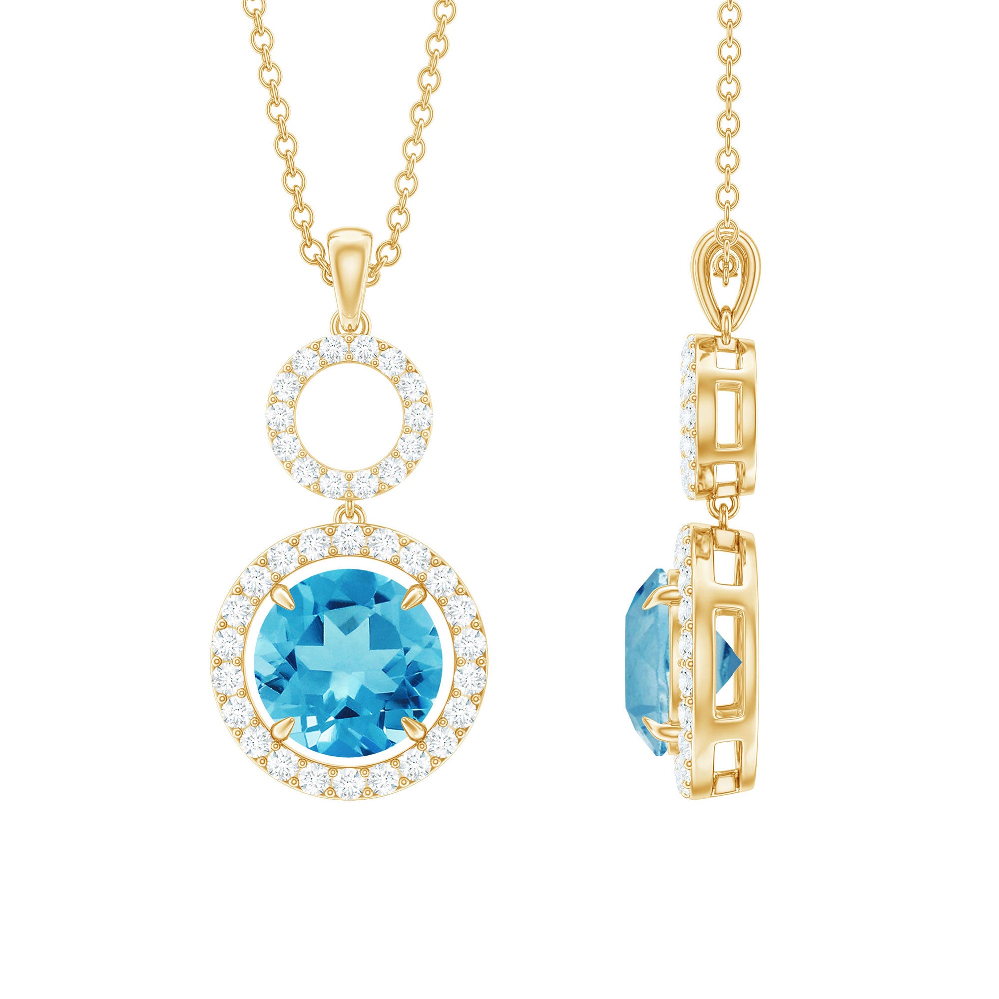 Round Swiss Blue Topaz Dangle Pendant with Diamond Halo