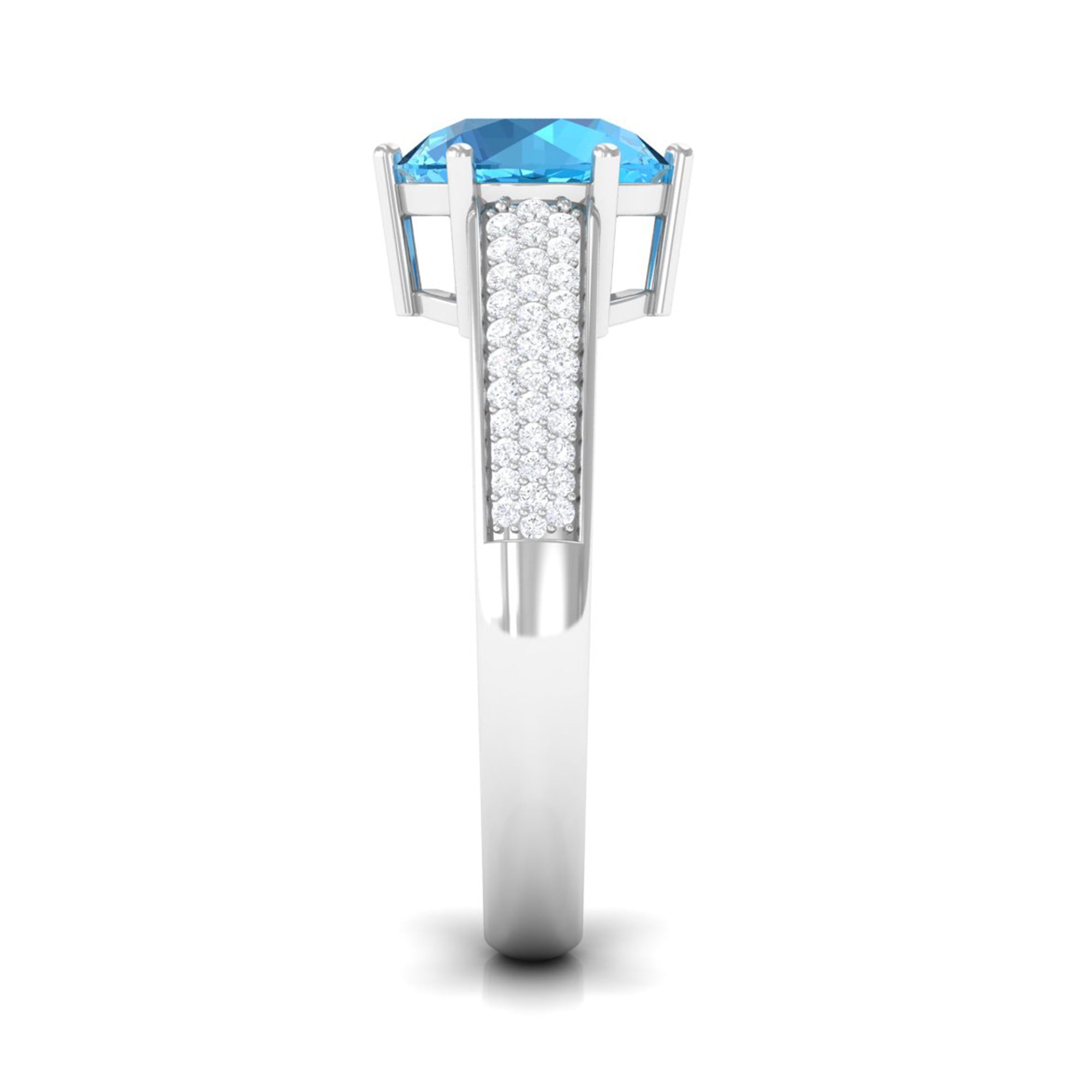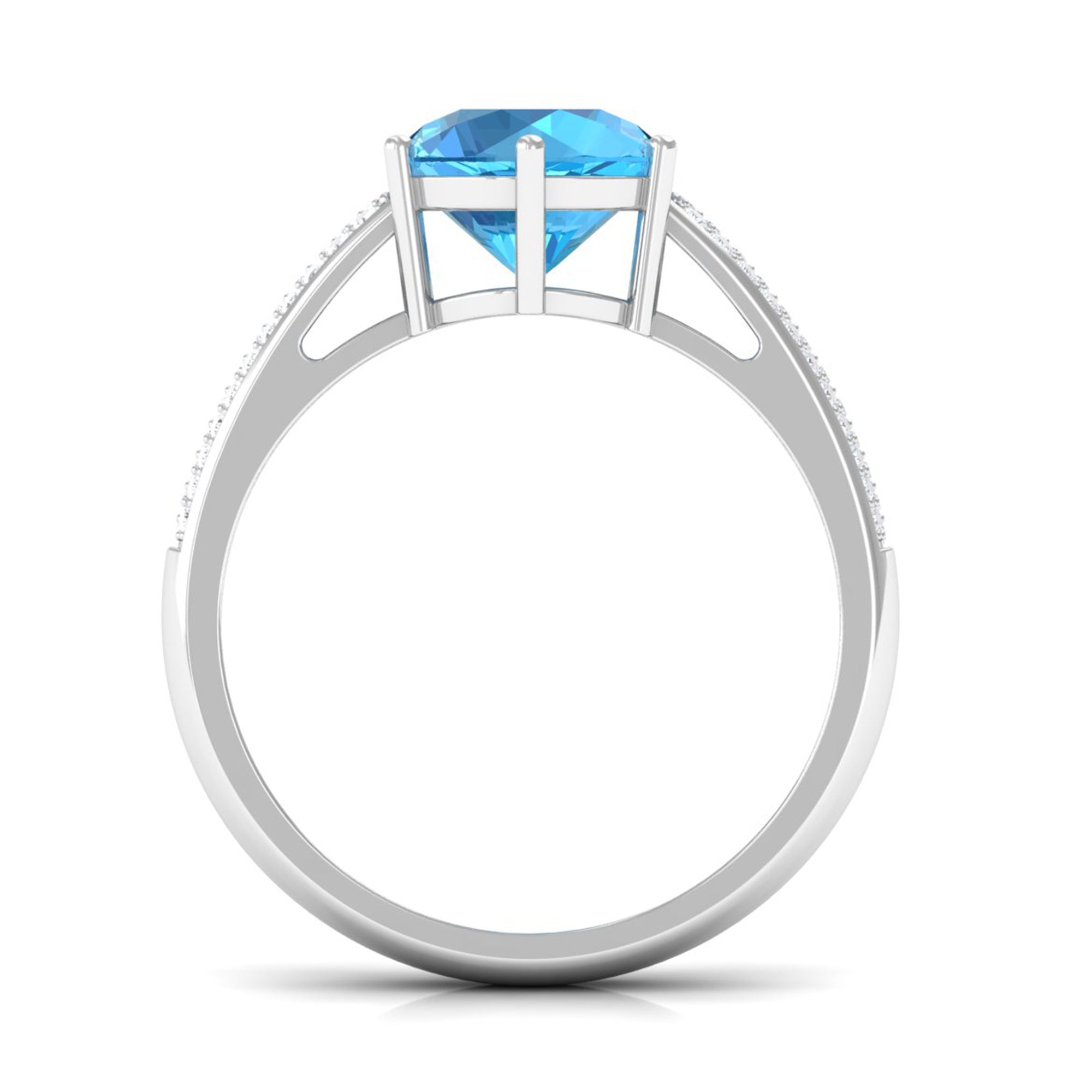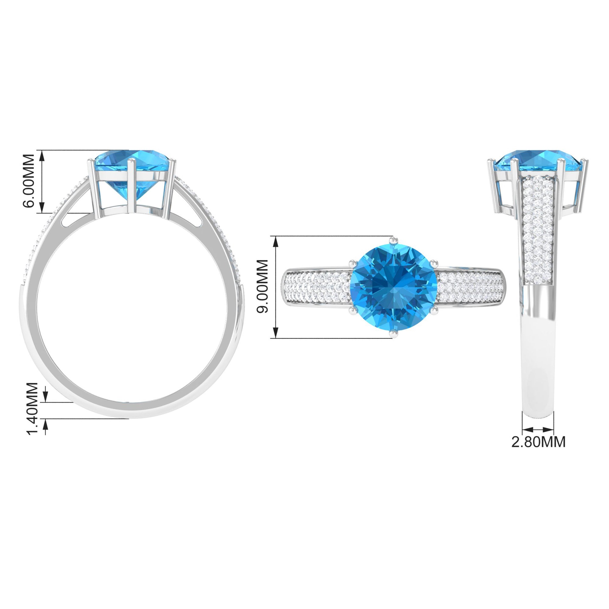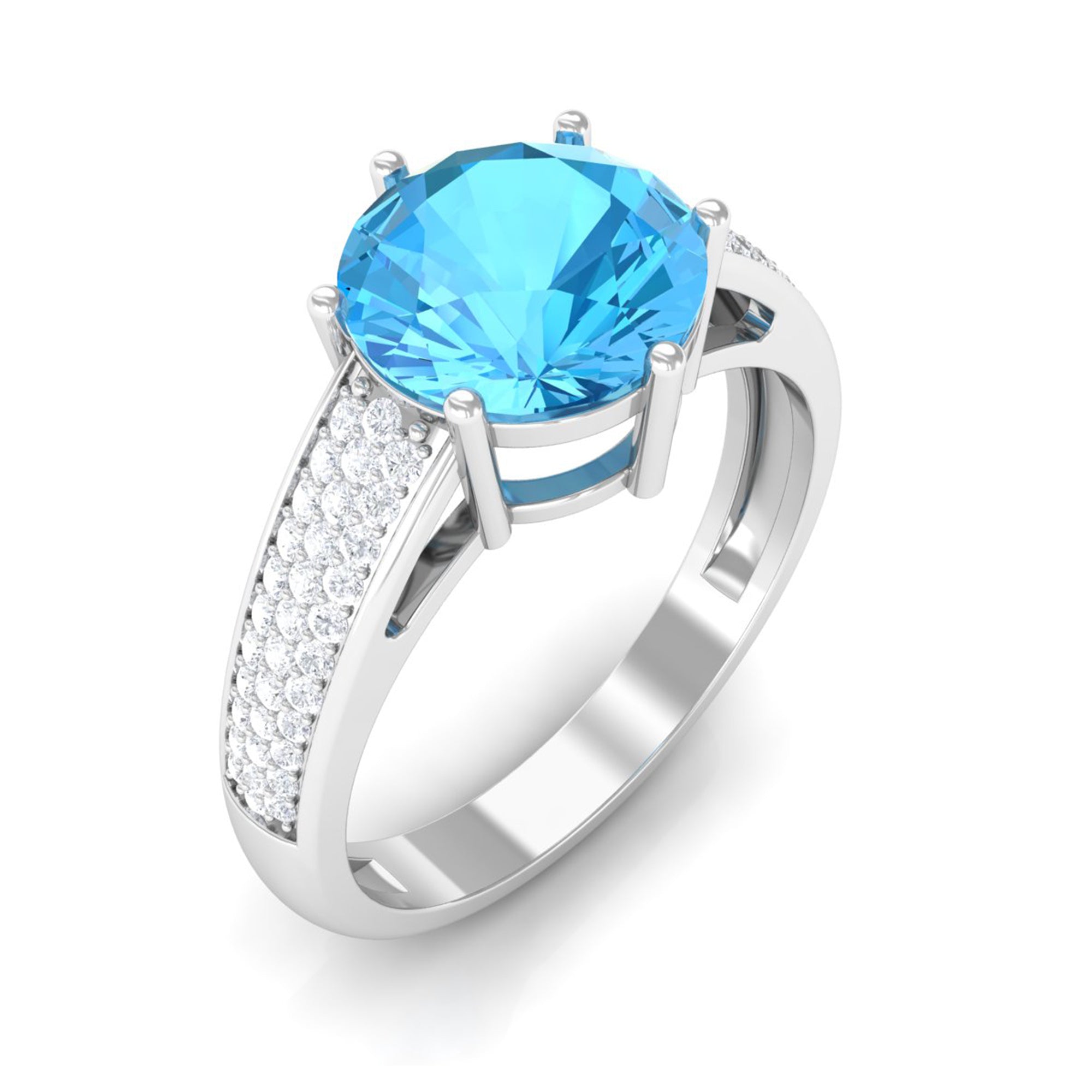 Round Swiss Blue Topaz Solitaire Ring with Diamond Side Stones