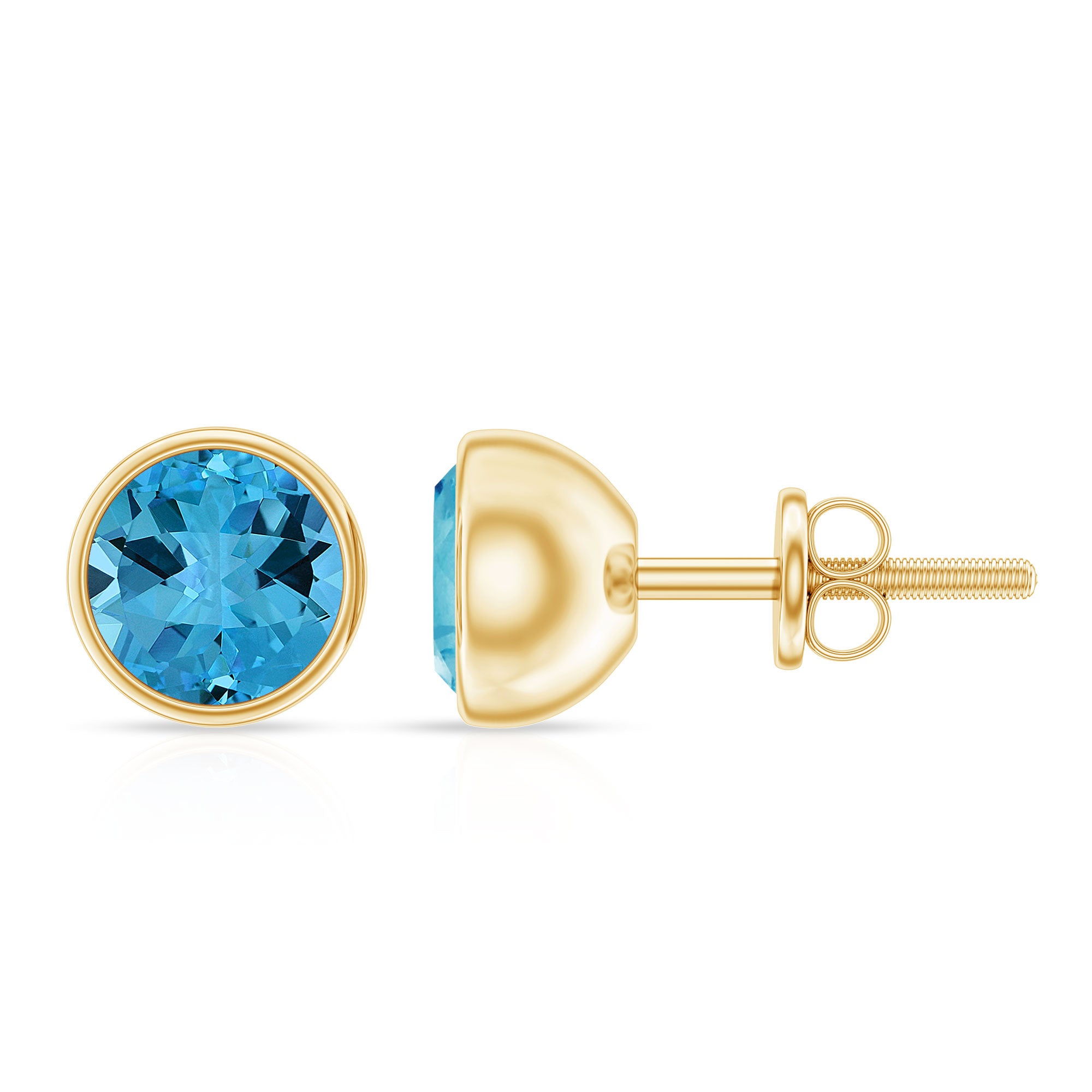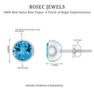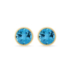 Round Swiss Blue Topaz Solitaire Stud Earrings in Bezel Setting