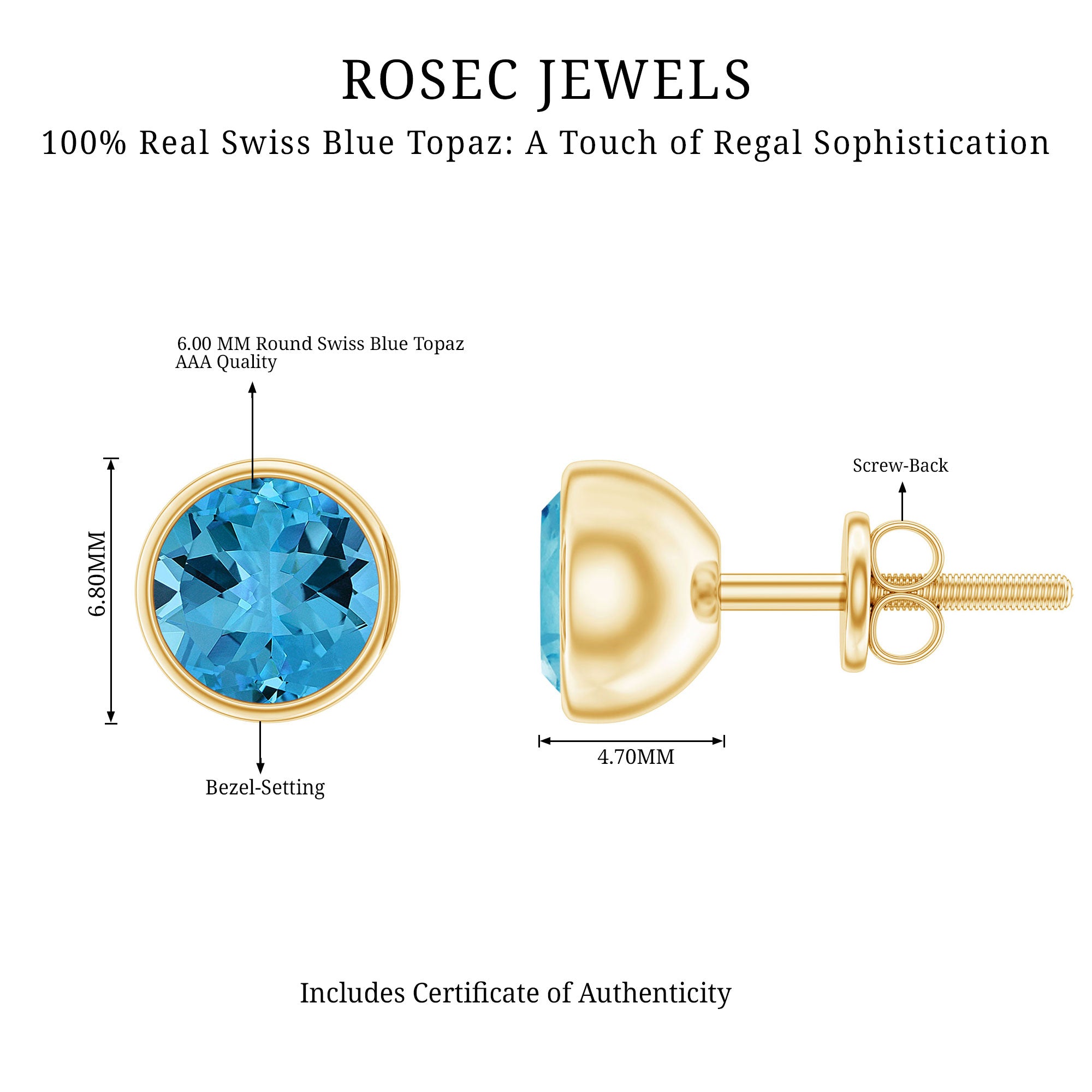 Brighten up your style with these one-of-a-kind Certified Swiss Blue Topaz Earrings. The round Swiss Blue Topaz gemstone in a bezel setting provides a gorgeous, beautiful look. Available in White Gold, Rose Gold, and Yellow Gold, this Blue Gemstone Earring adds a charming touch. It makes an ideal anniversary gift for your significant other.