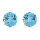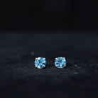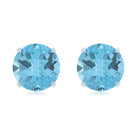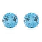 Round Swiss Blue Topaz Solitaire Stud Earrings in Claw Setting