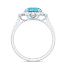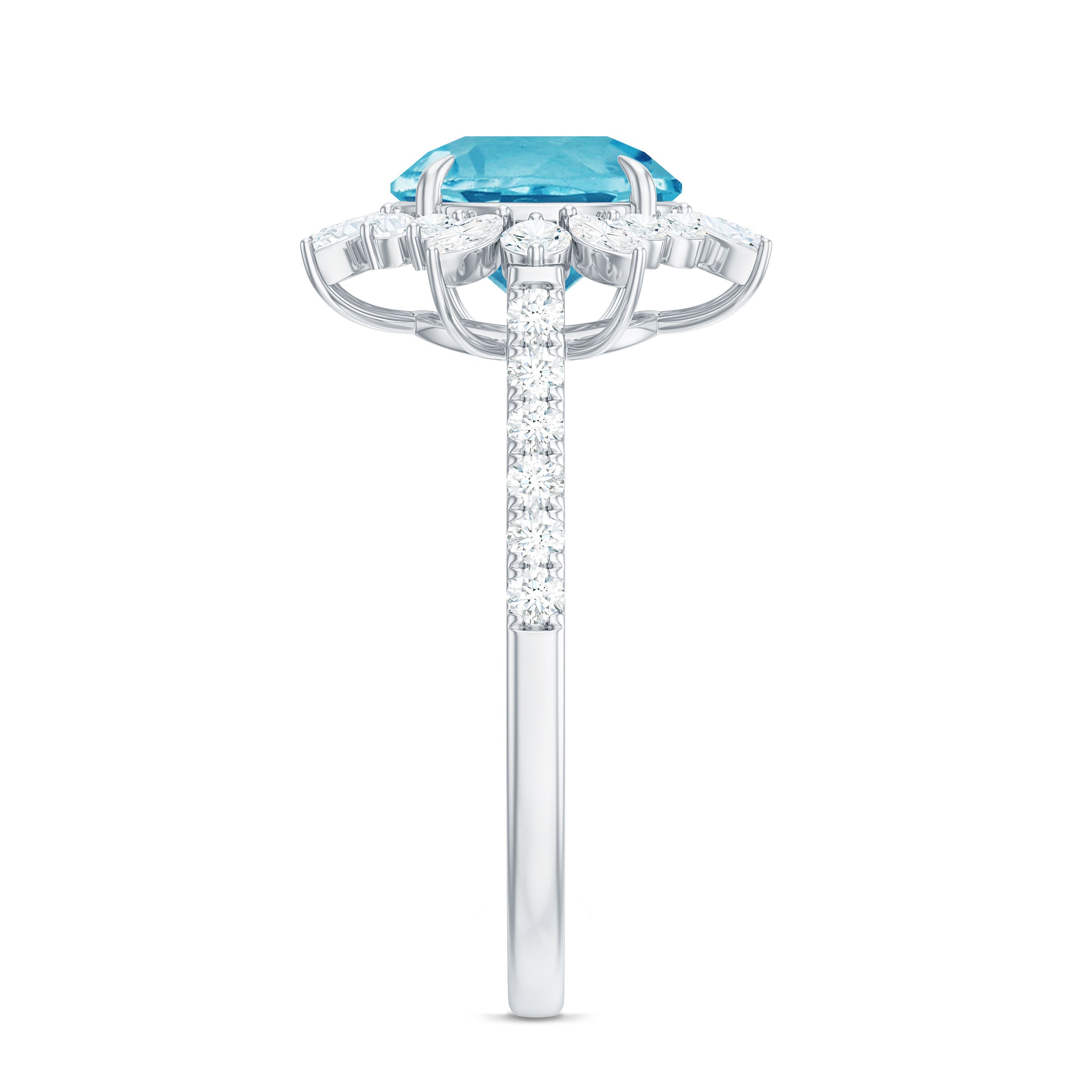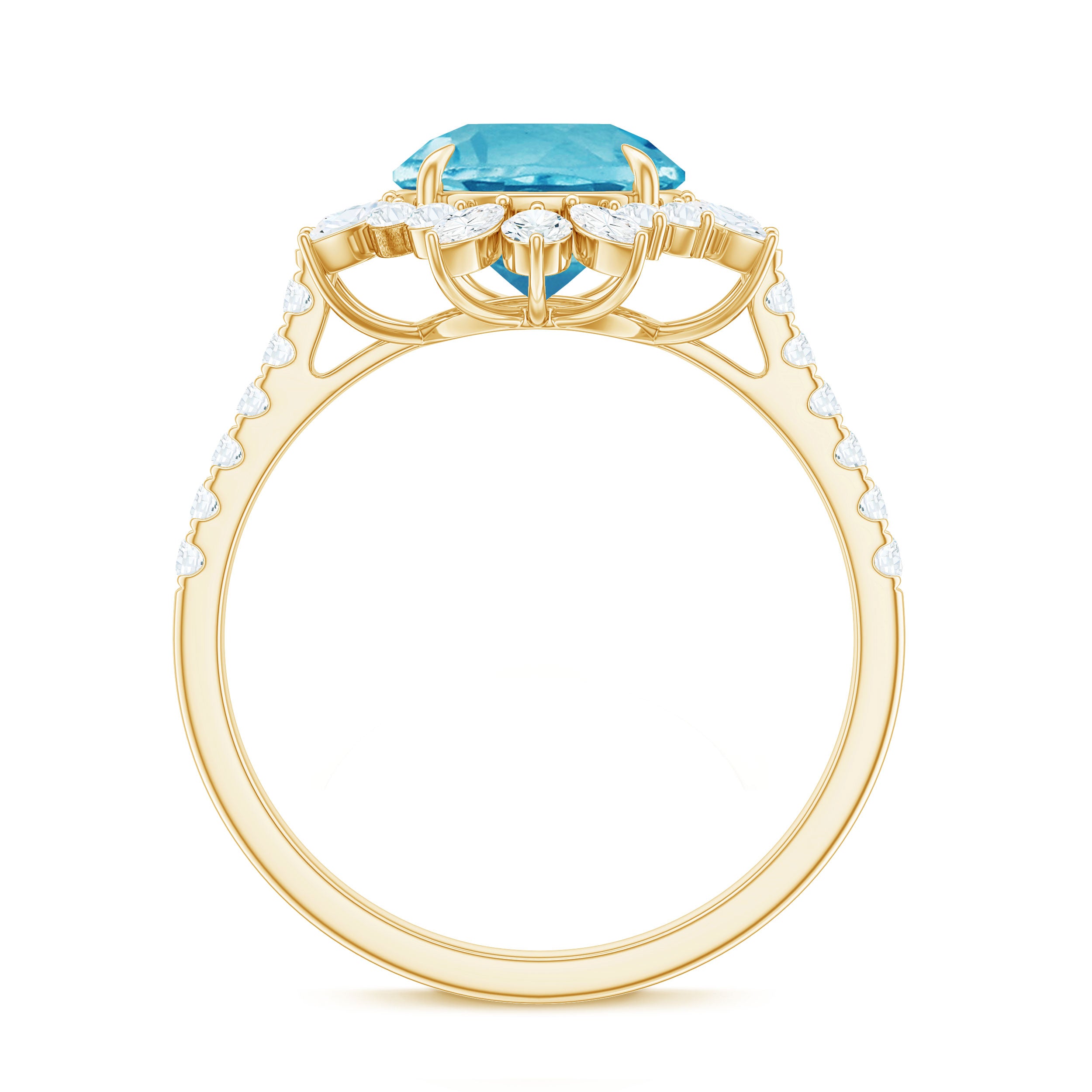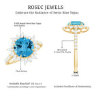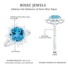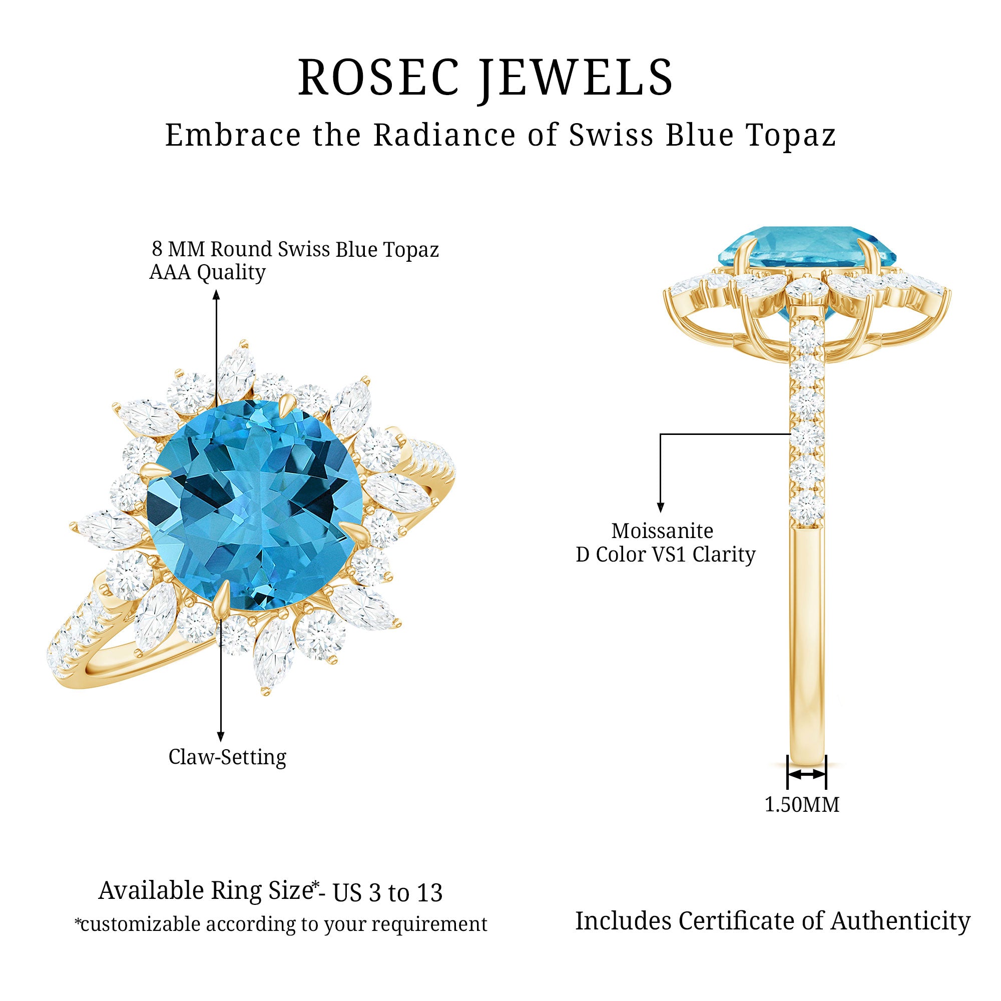 Round Swiss Blue Topaz Statement Ring with Moissanite Floral Halo