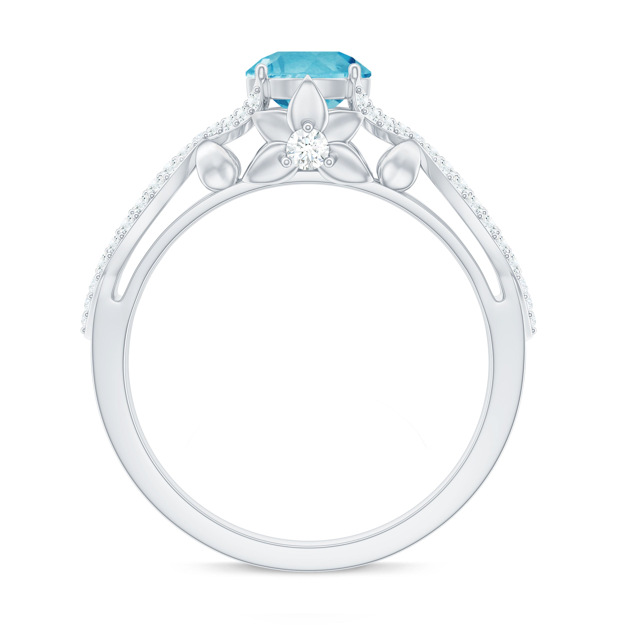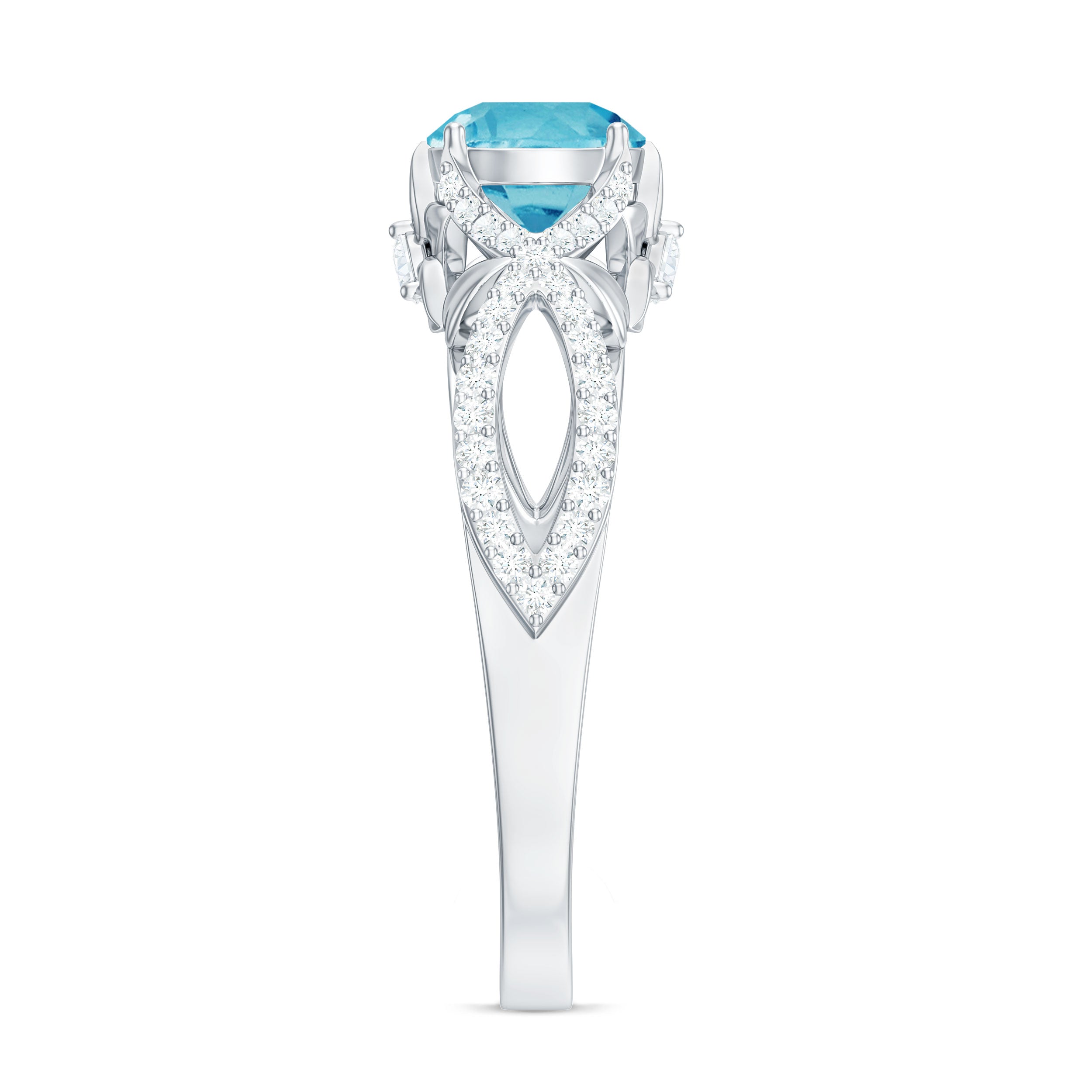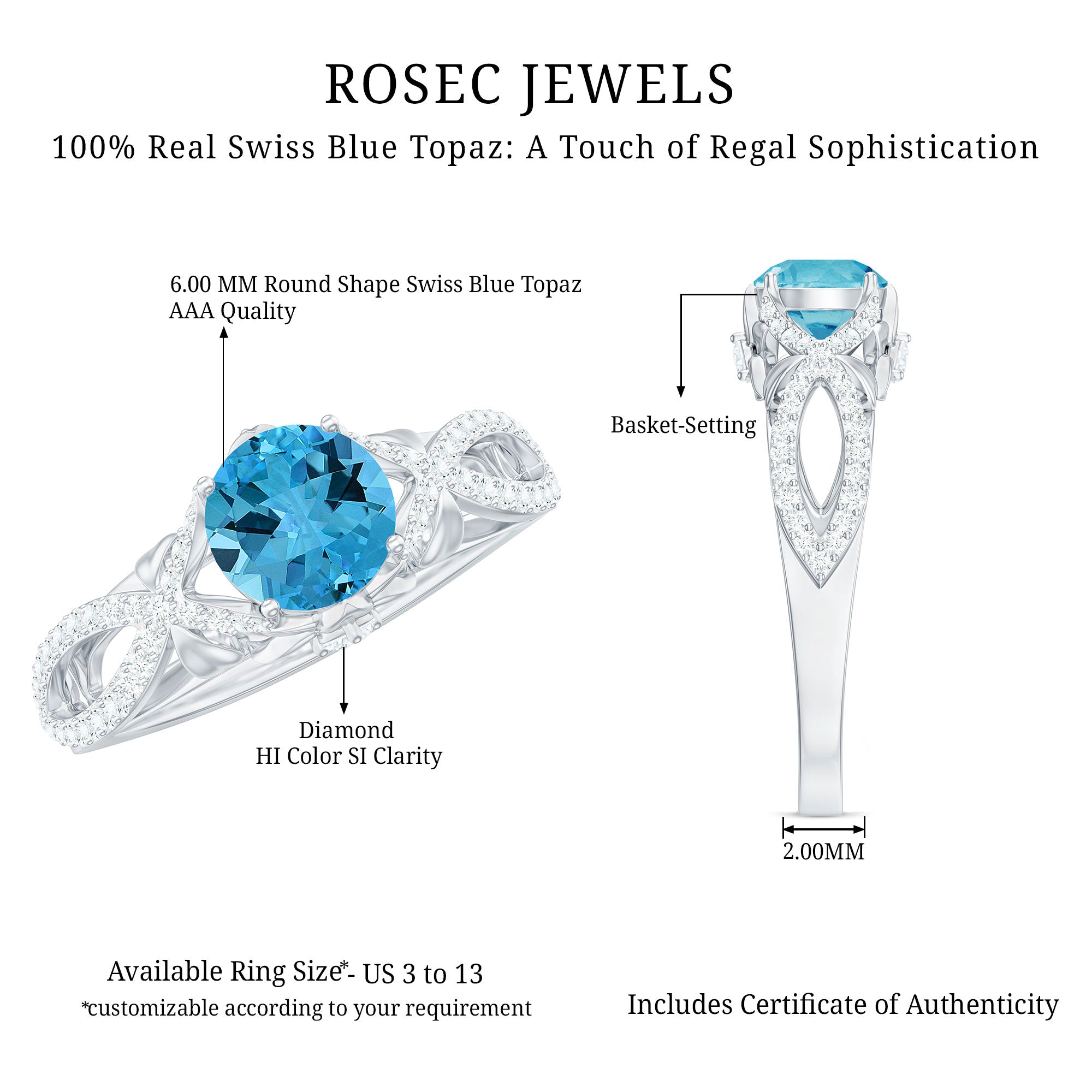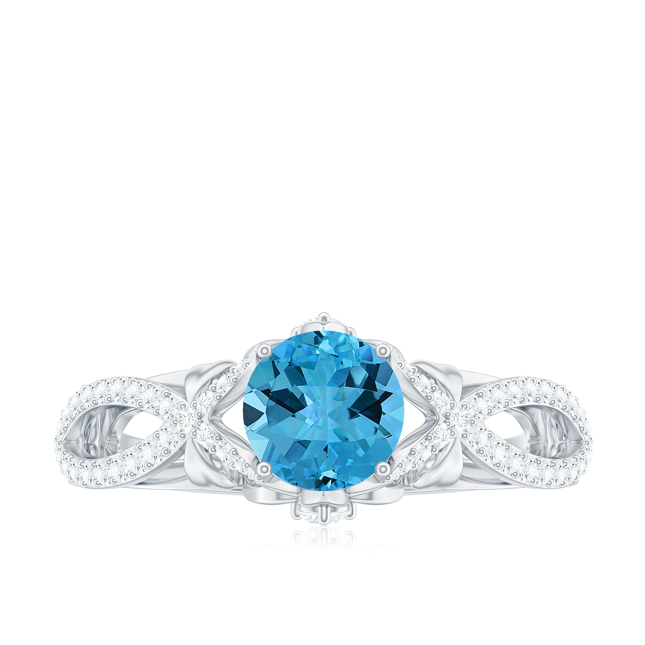 Round Swiss Blue Topaz Vintage Inspired Engagement Ring with Diamond