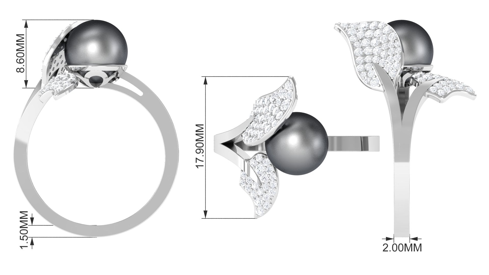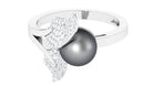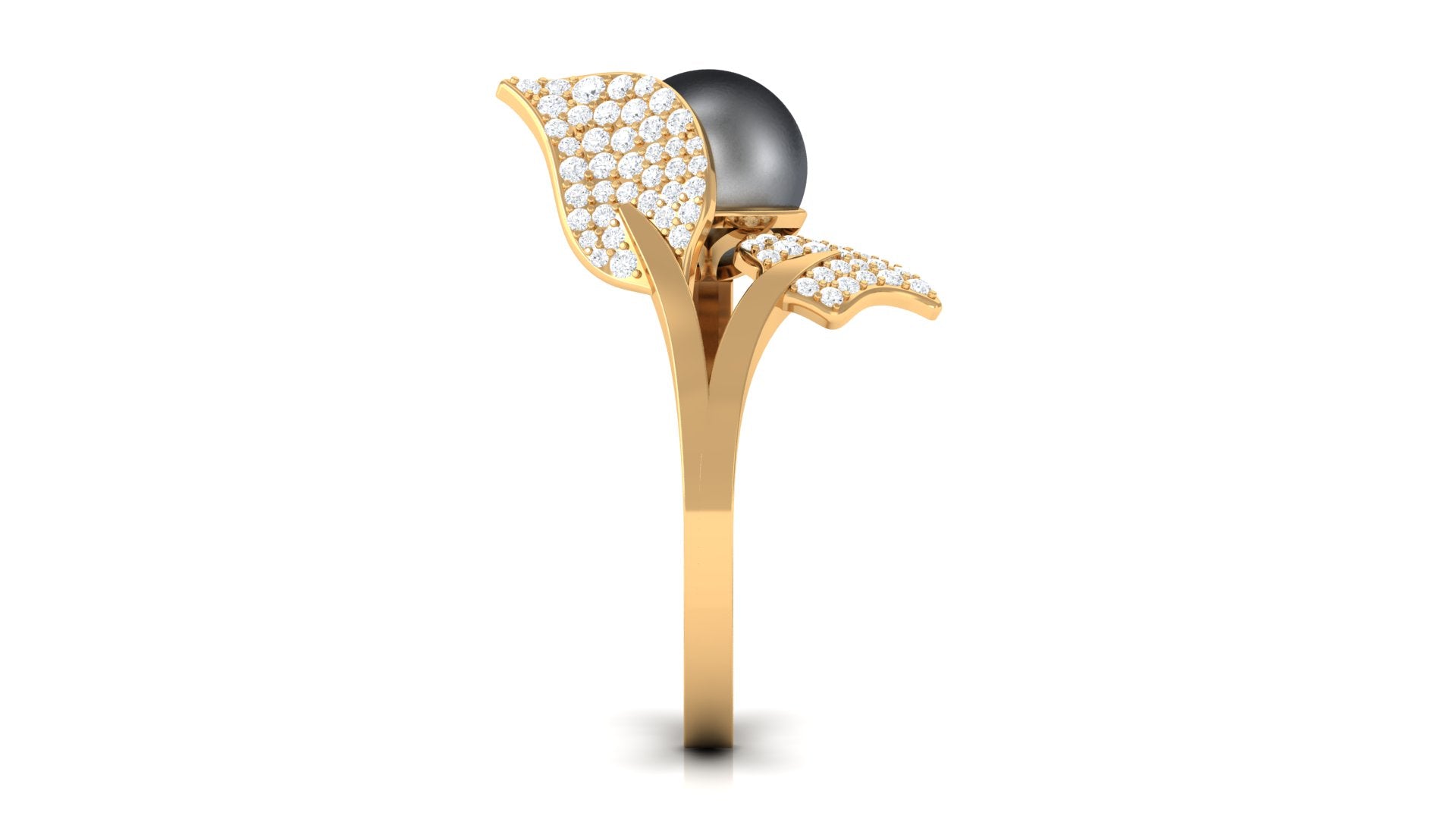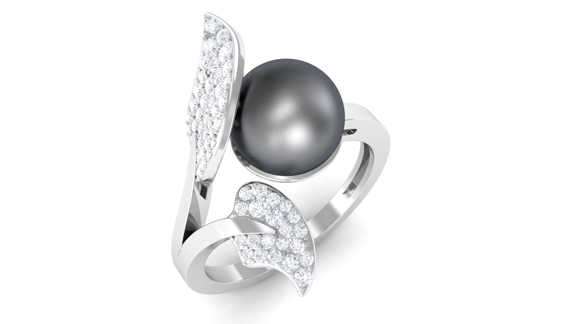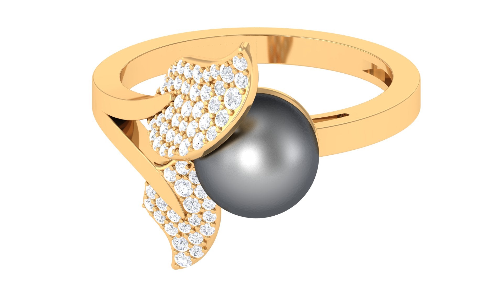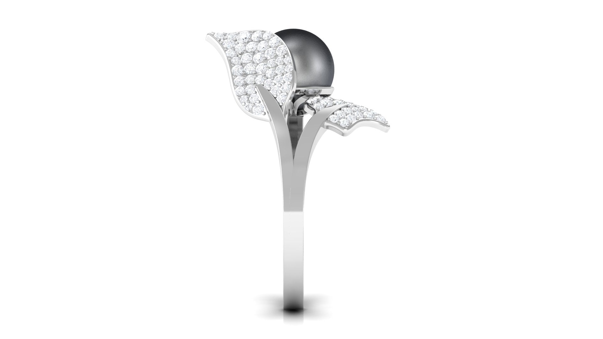 Round Tahitian Pearl and Diamond Leaf Engagement Ring