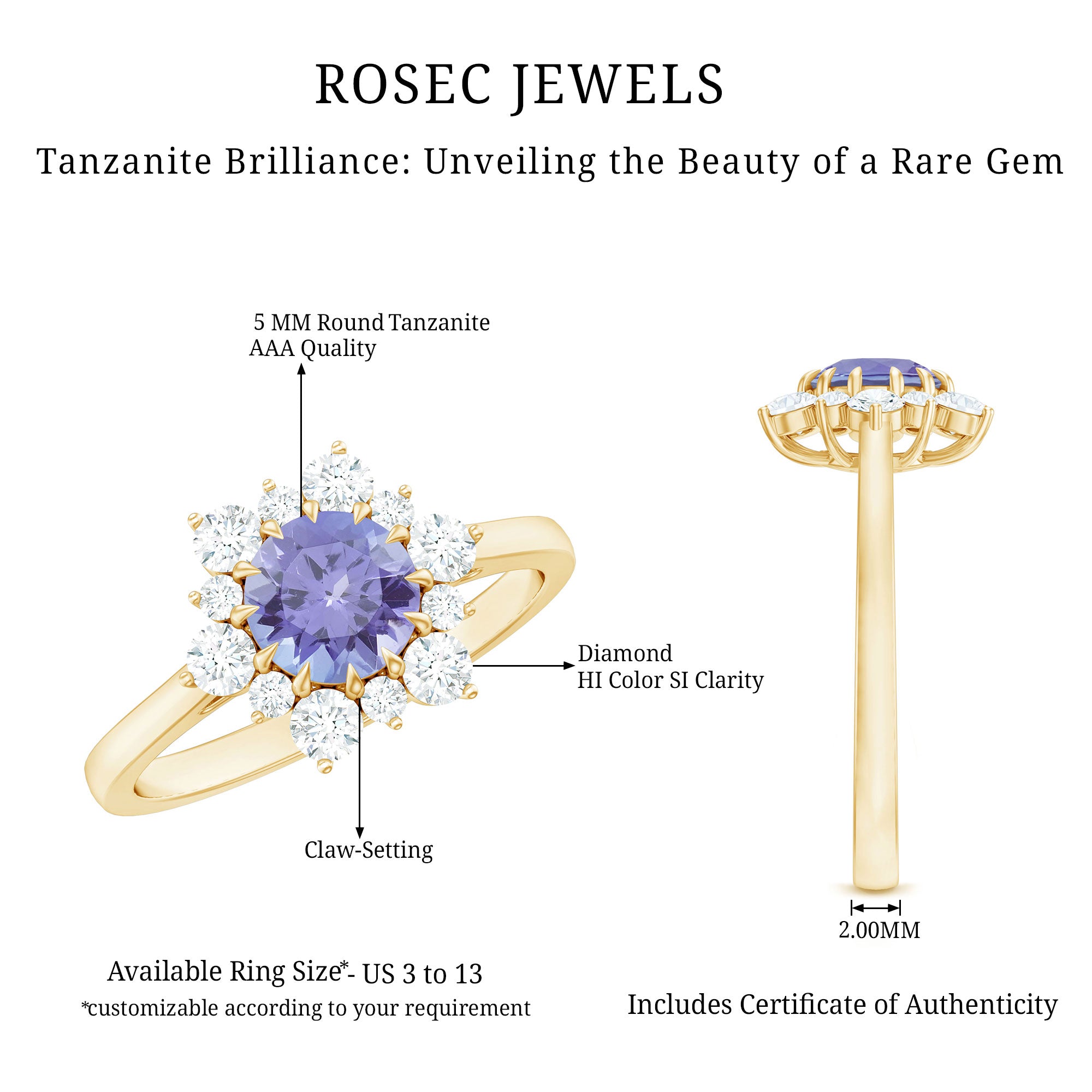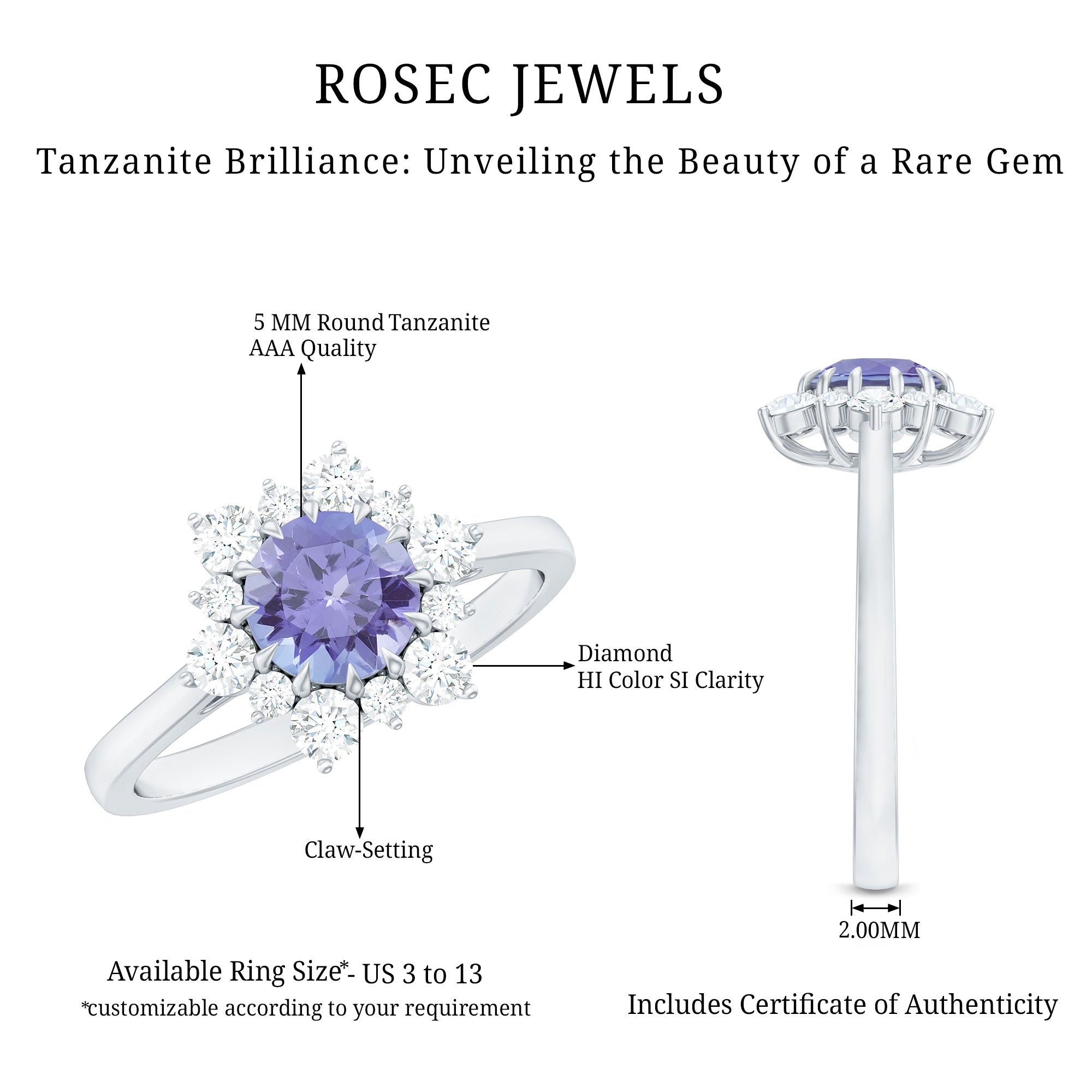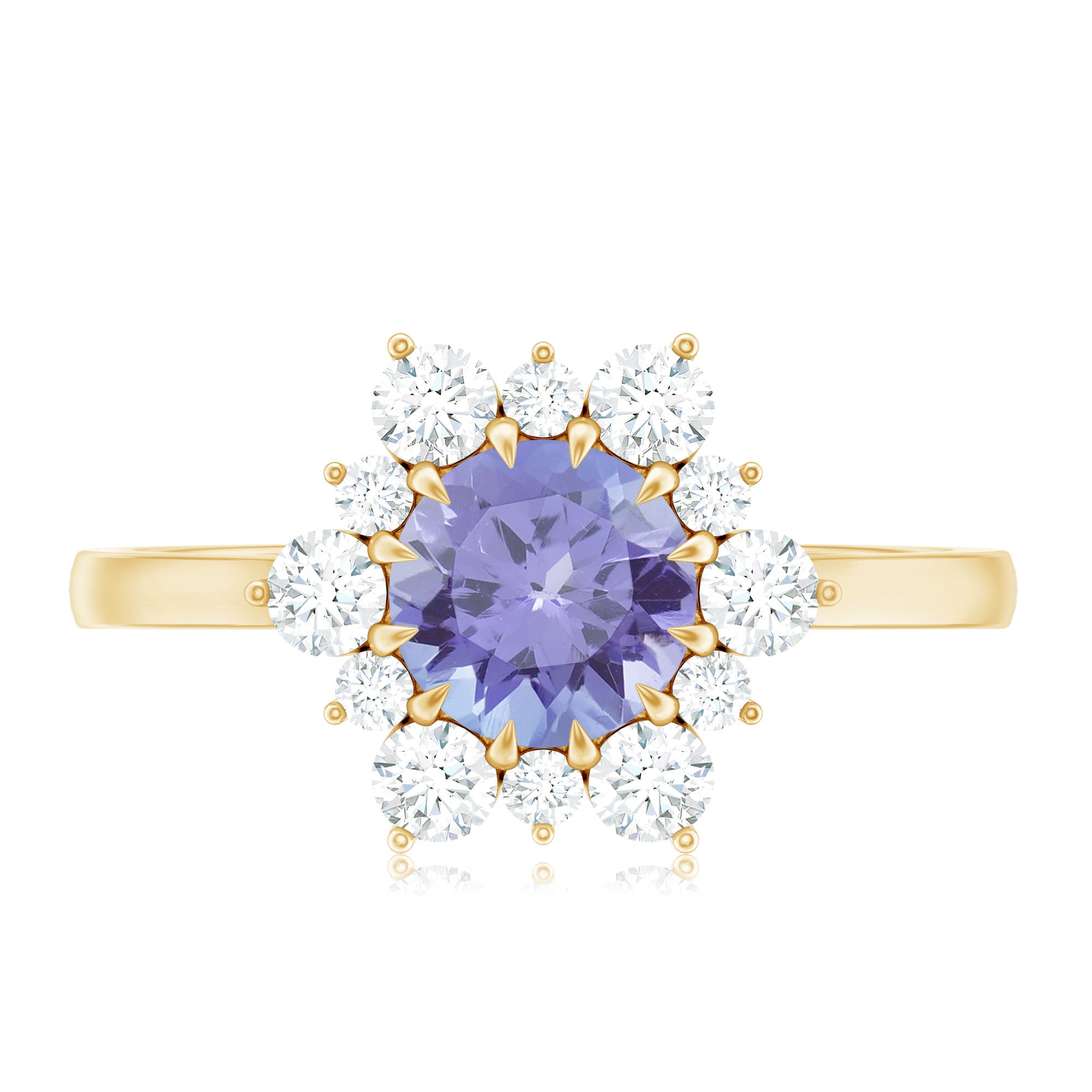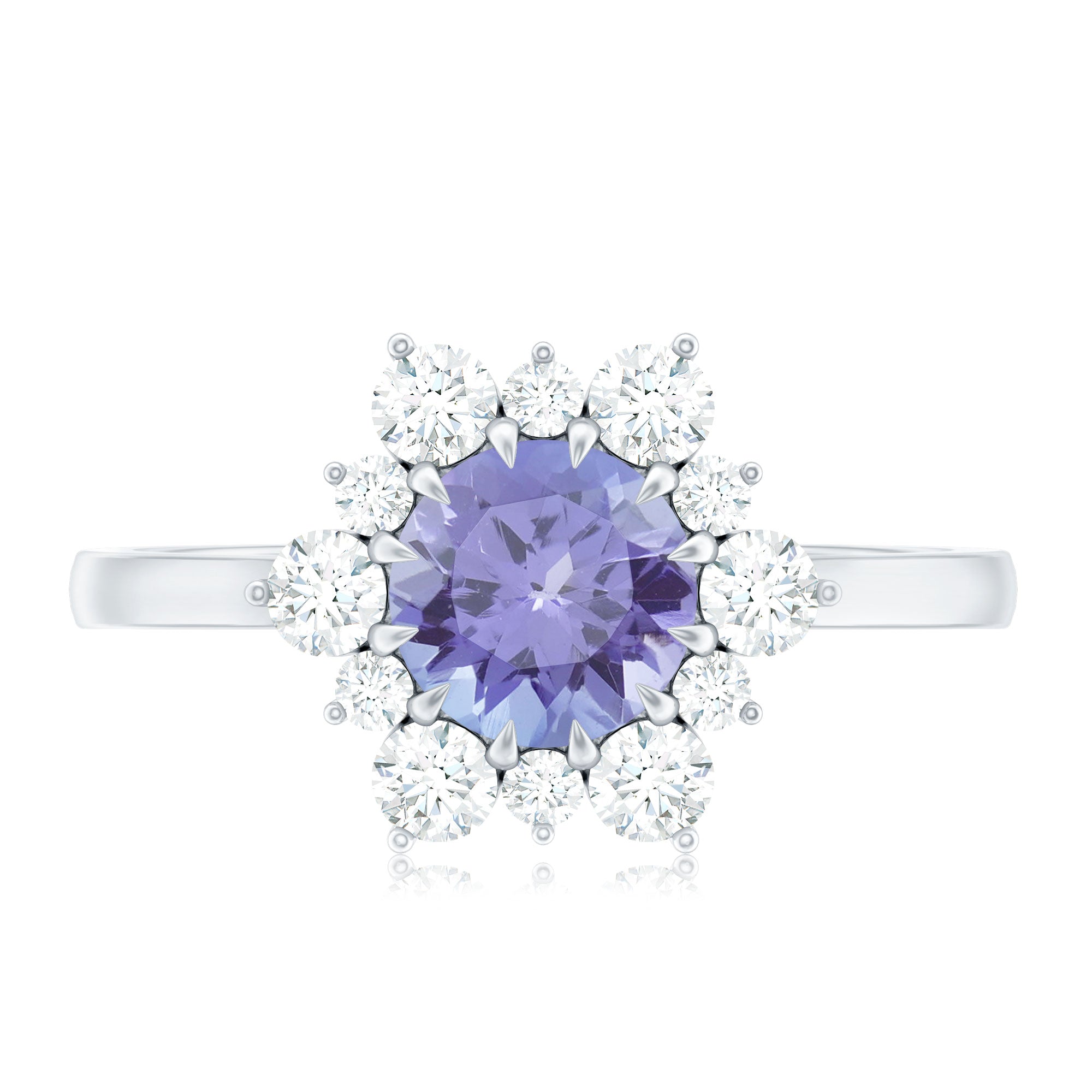 Round Tanzanite Classic Halo Engagement Ring with Diamond