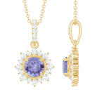 Round Tanzanite Halo Pendant with Diamond Accent Bail