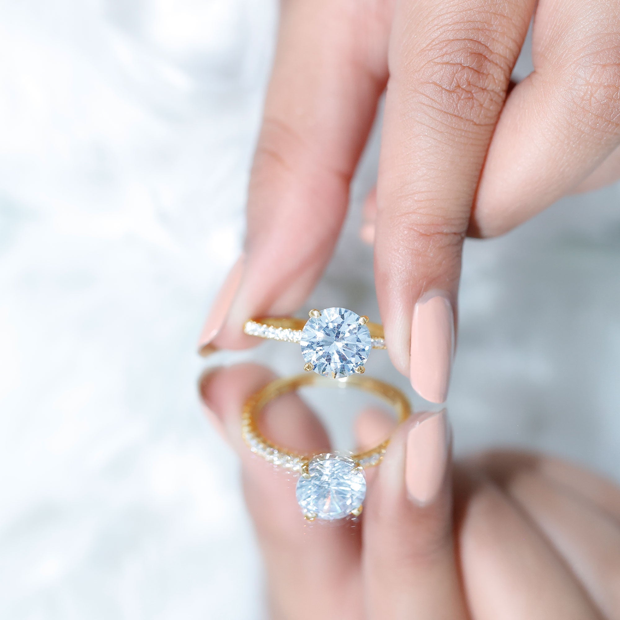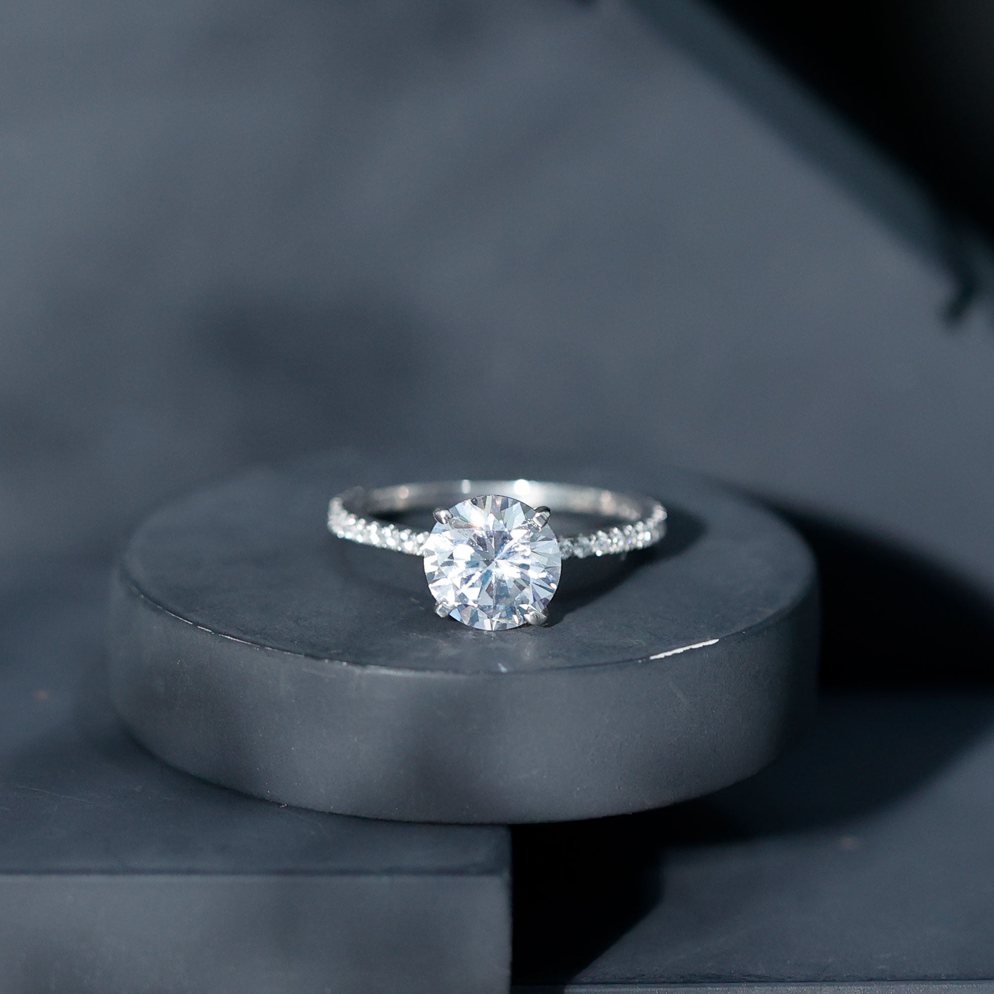Round Zircon Solitaire Engagement Ring