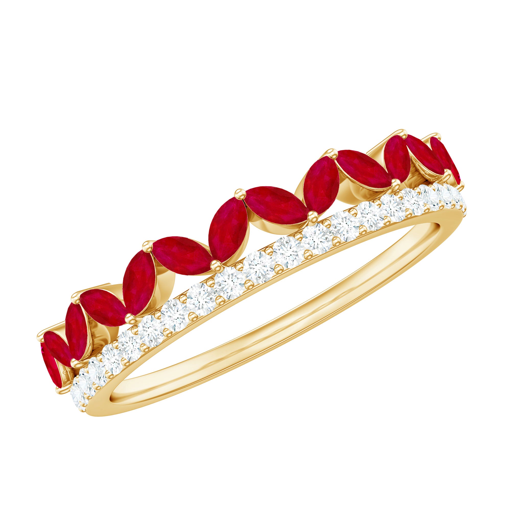 Feel like royalty with this Crown Style Half Eternity Ring adorned with exquisite Ruby and sparkling Diamond, a regal symbol of elegance and grace.