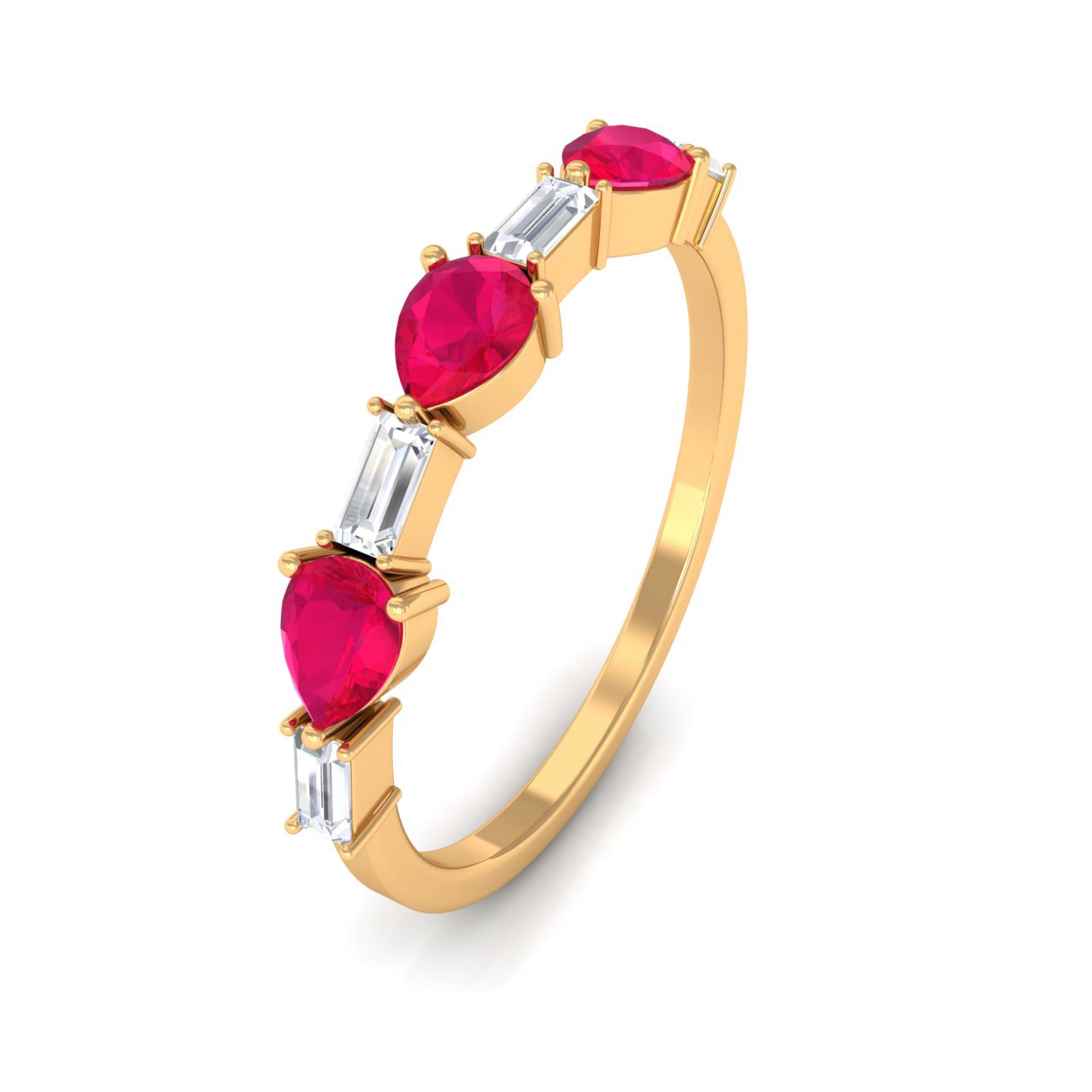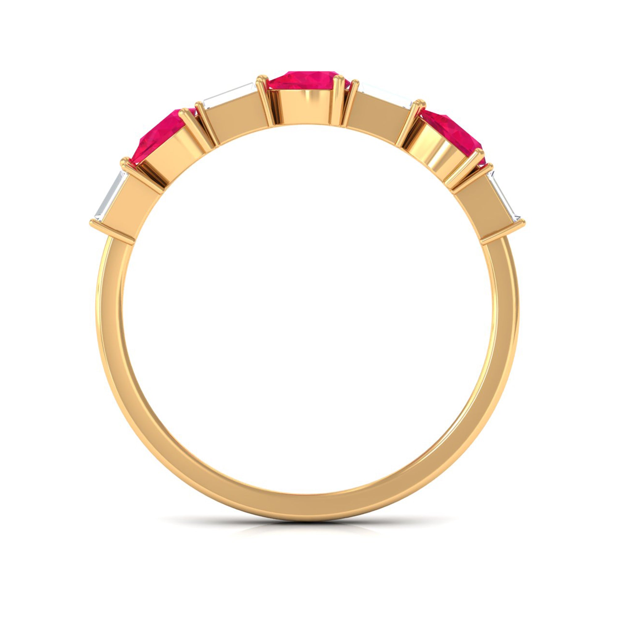 Unleash modern sophistication with this Half Eternity Ring with Ruby and Diamond in East West Style, a fusion of timeless allure and contemporary design.