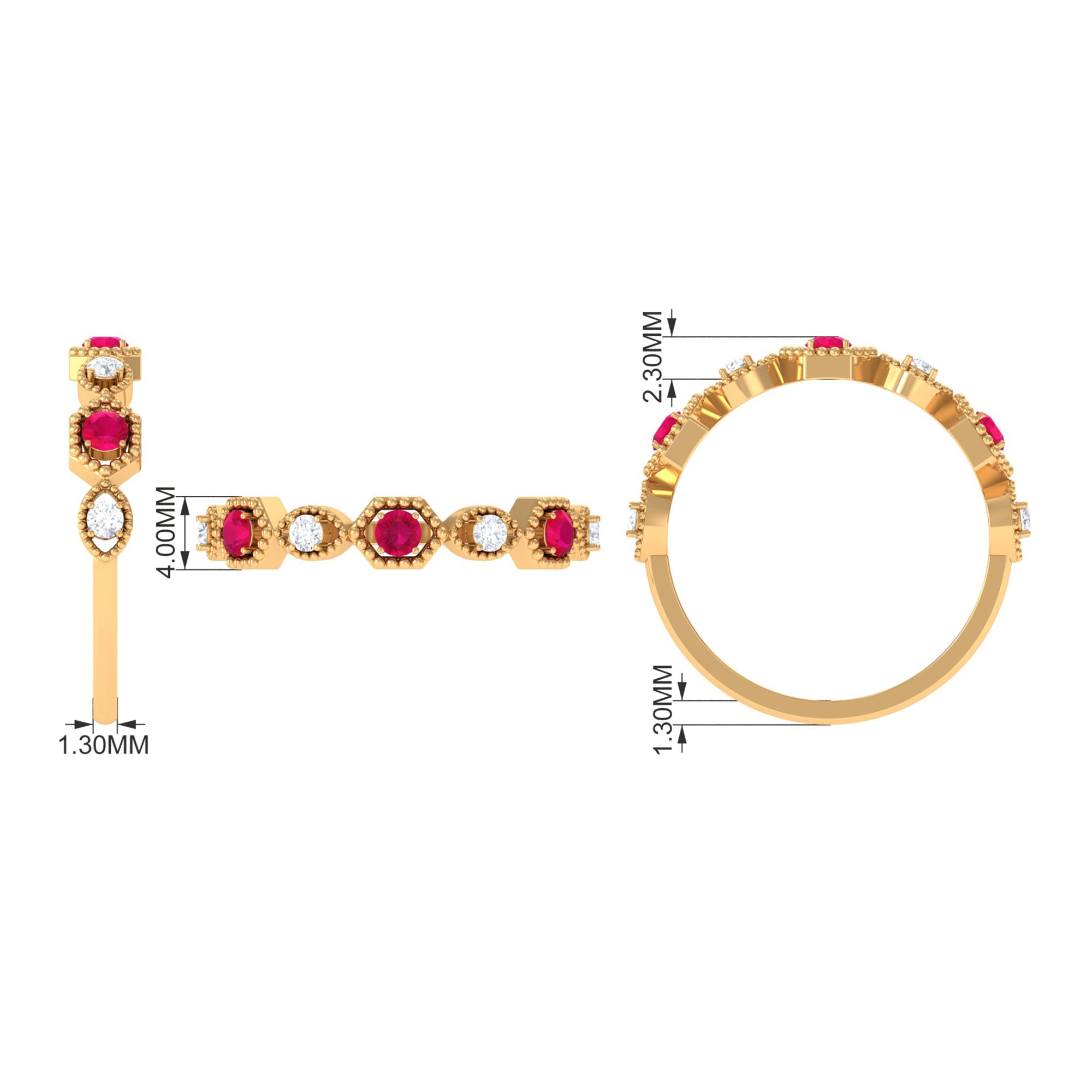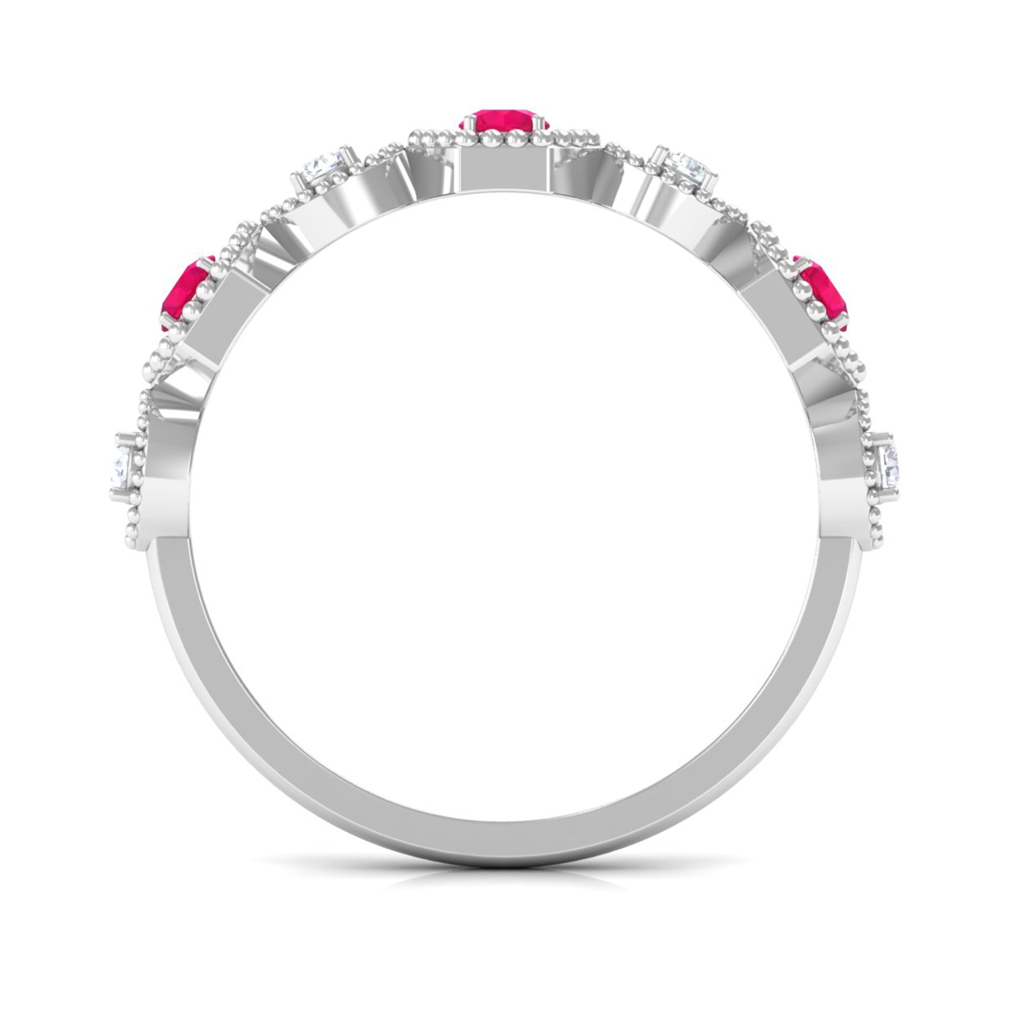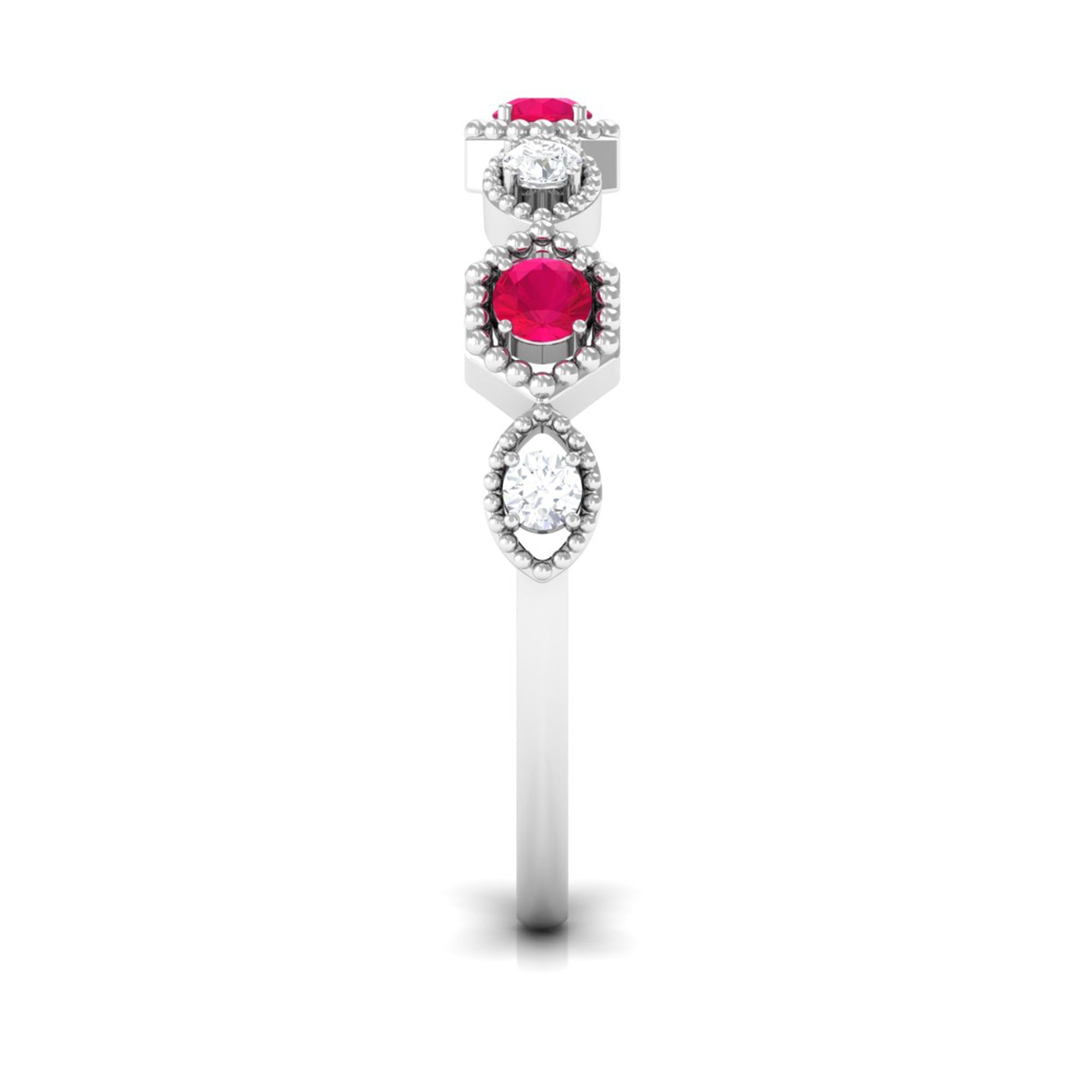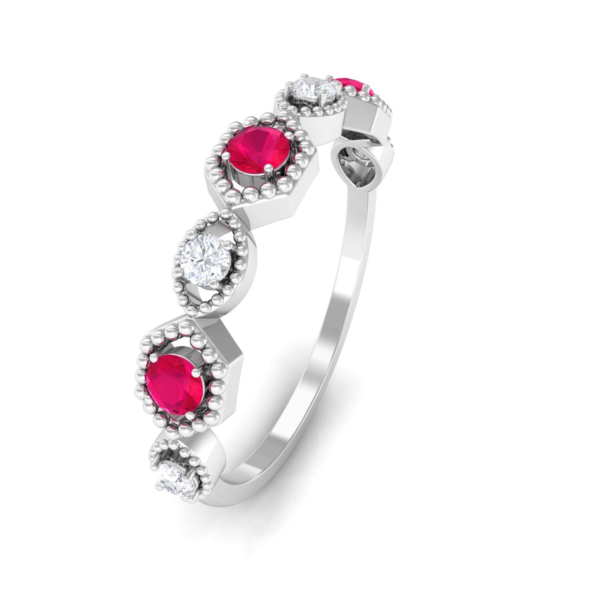 Radiate brilliance with this Half Eternity Ring with Ruby and Diamond gemstones in Prong Setting, showcases the captivating beauty of each stone.