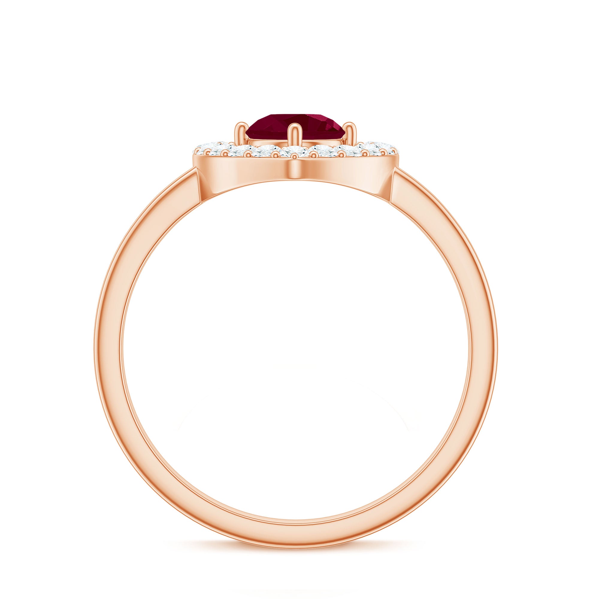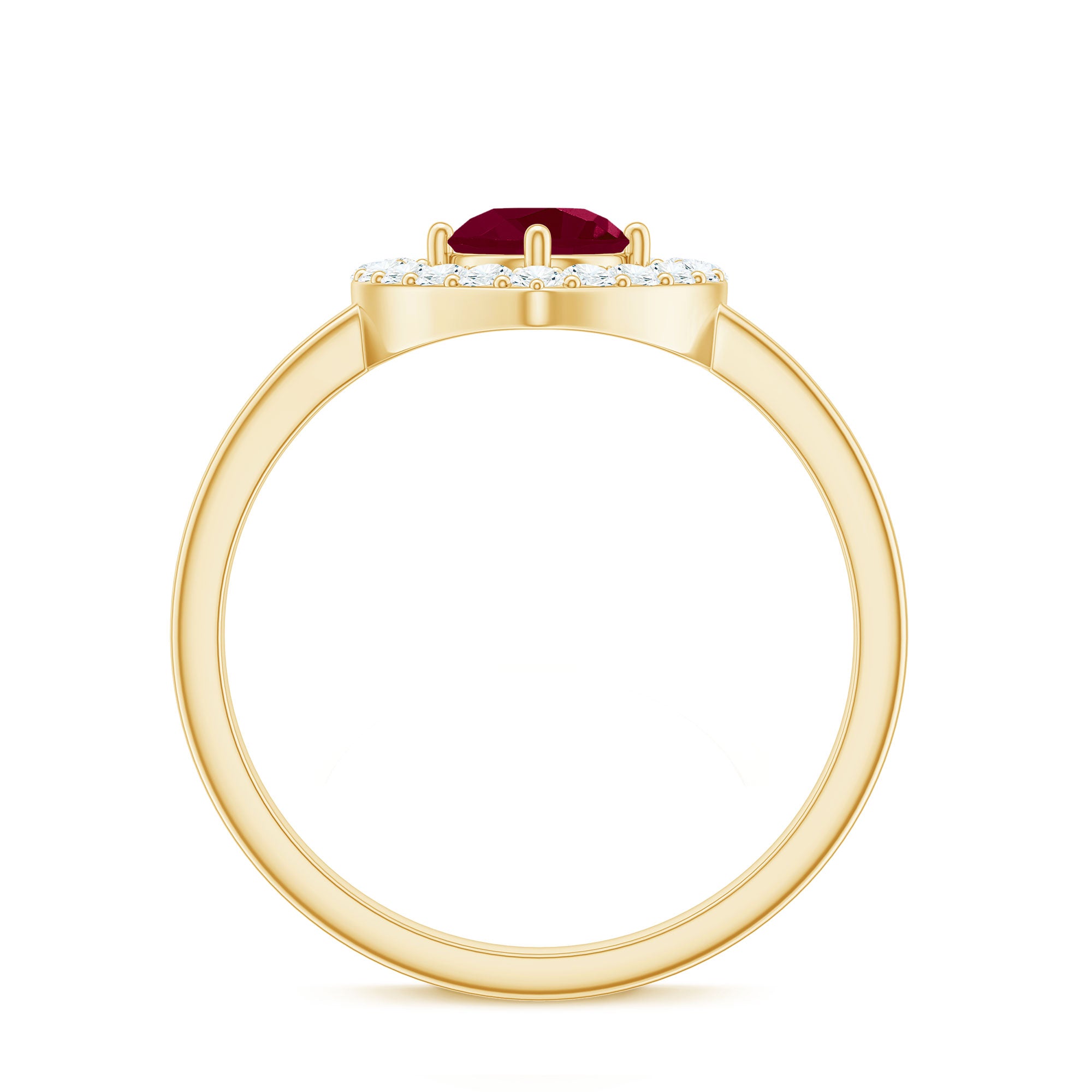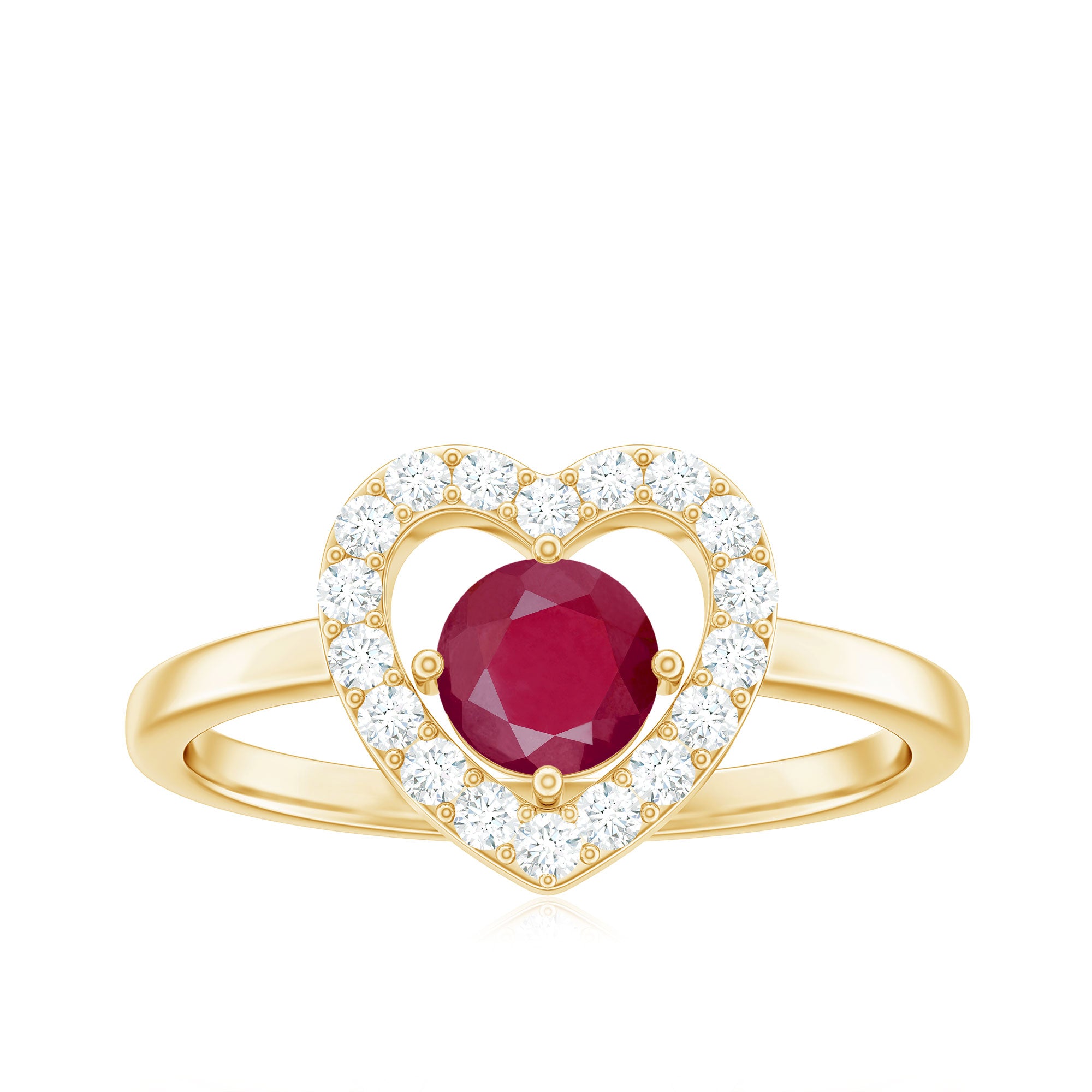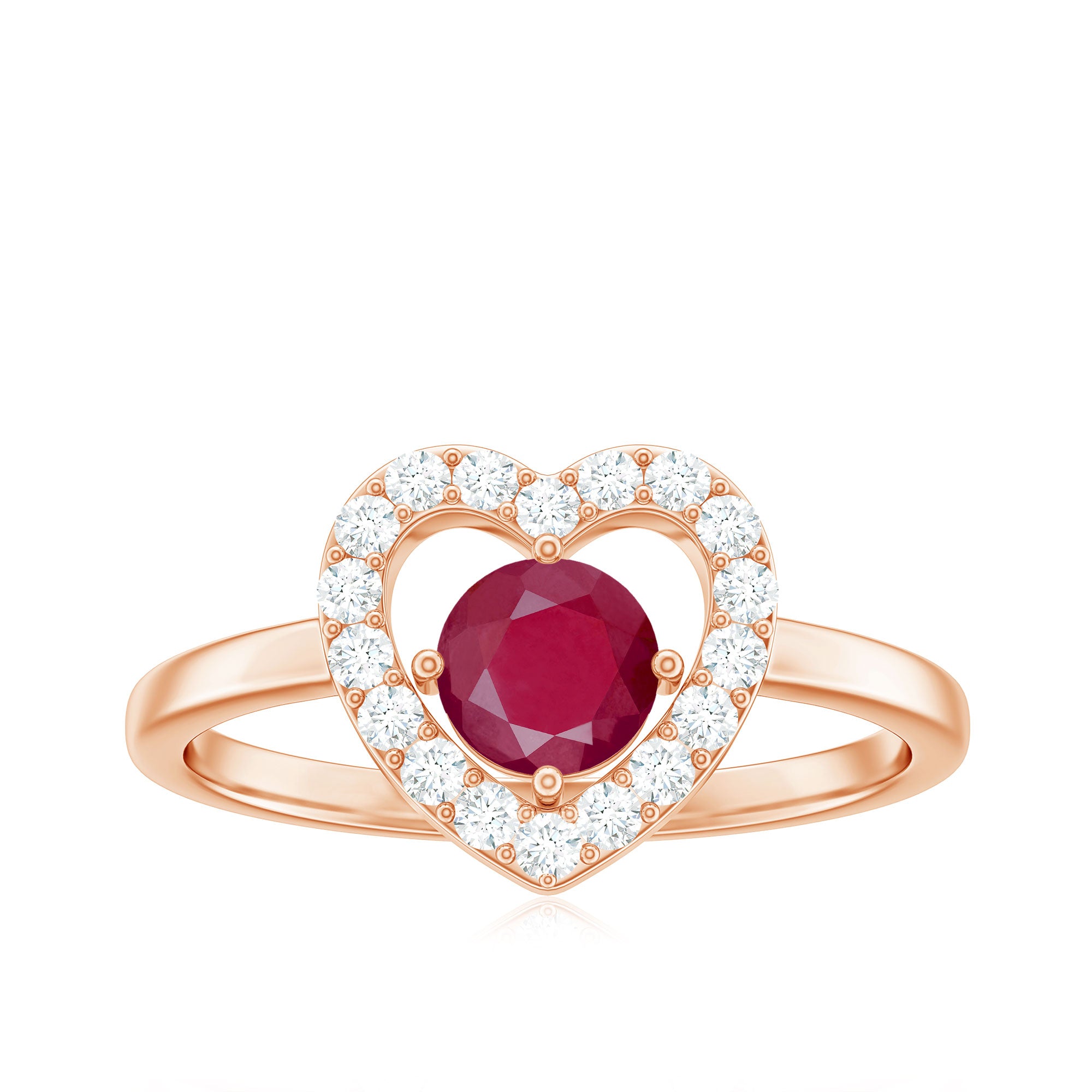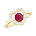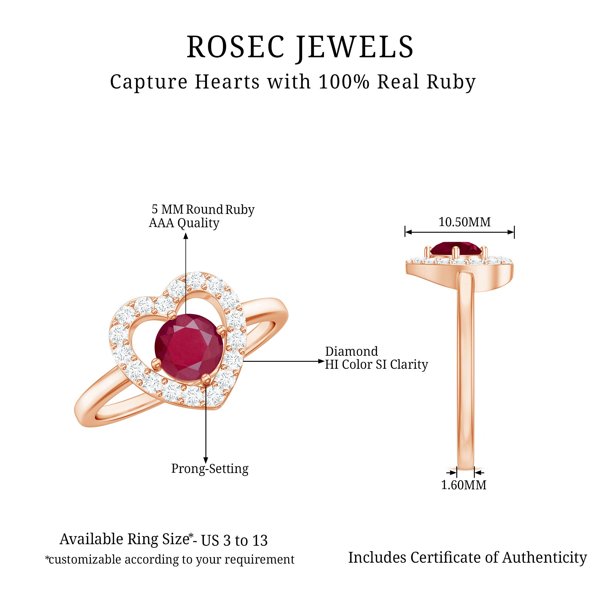 Make a bold declaration of love with this breathtaking Ruby and Diamond Ring. This exquisite piece features a stunning 5 MM Round Shape Ruby in Prong Setting encircled by a dazzling halo of brilliant Heart Shape Diamond, creating a mesmerizing display of romance and elegance. The vibrant red hue of the ruby symbolizes passion and vitality, while the sparkling diamonds exude timeless sophistication. Meticulously crafted this Ruby Heart promise Ring is a symbol of enduring love and affection. Whether it is a gift for a special someone or a treat for yourself, this radiant piece is sure to captivate hearts and turn heads. Perfect for engagements, anniversaries, or any occasion where love takes center stage, this Red Ruby Promise Ring for Her is a testament to the enduring power of love.