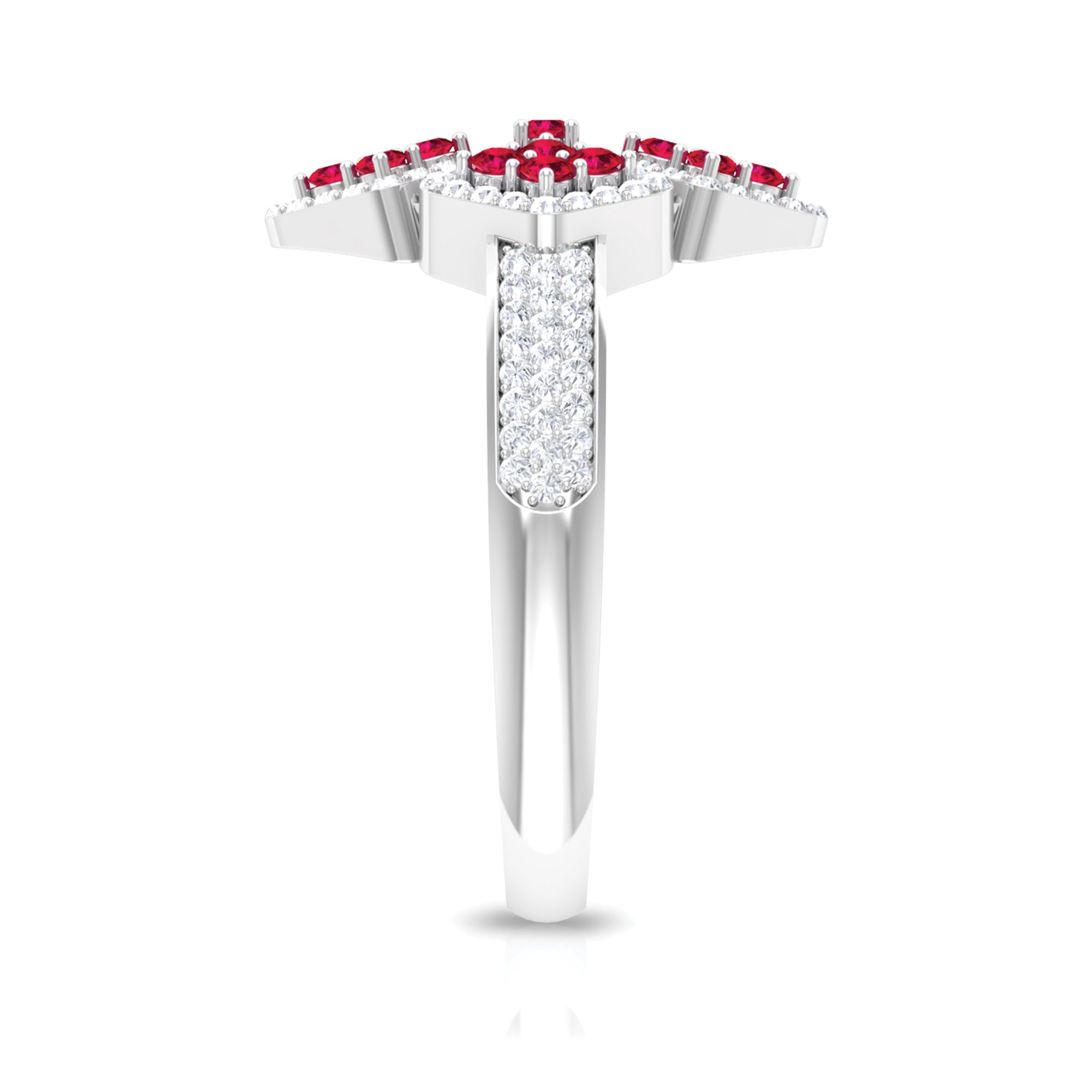 Experience beauty in an unique way with our Statement Ring, designed for Women as an Engagement Ring featuring an Round Shape Ruby and Diamonds are set in a Prong Setting, crafted in a Solid Gold Metal.