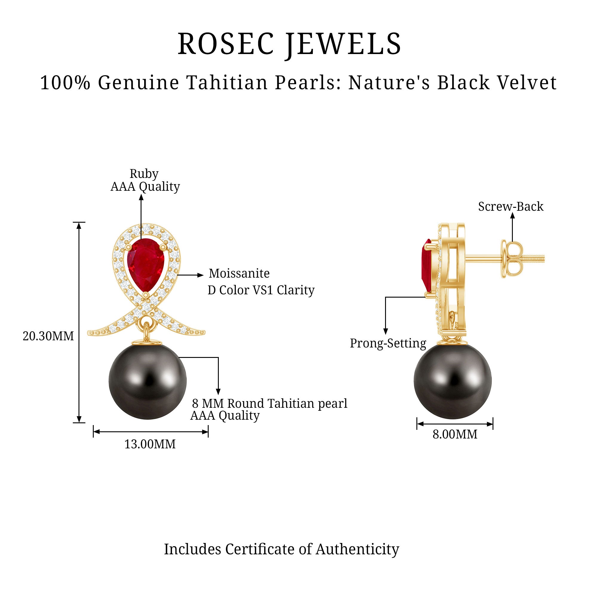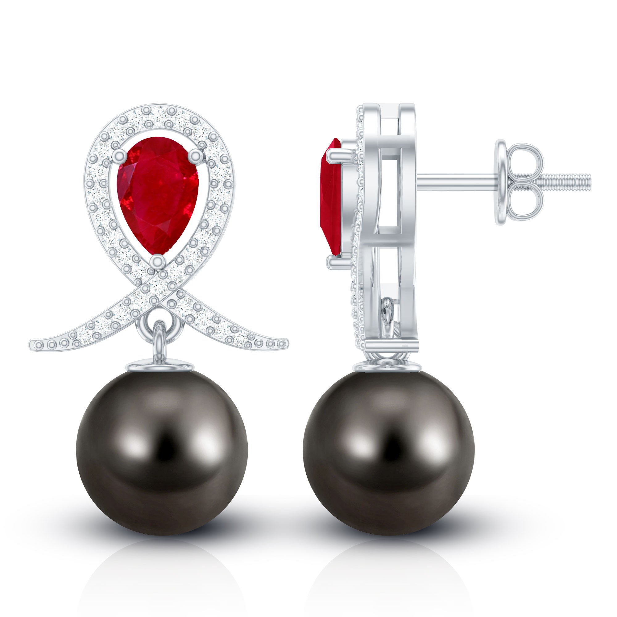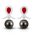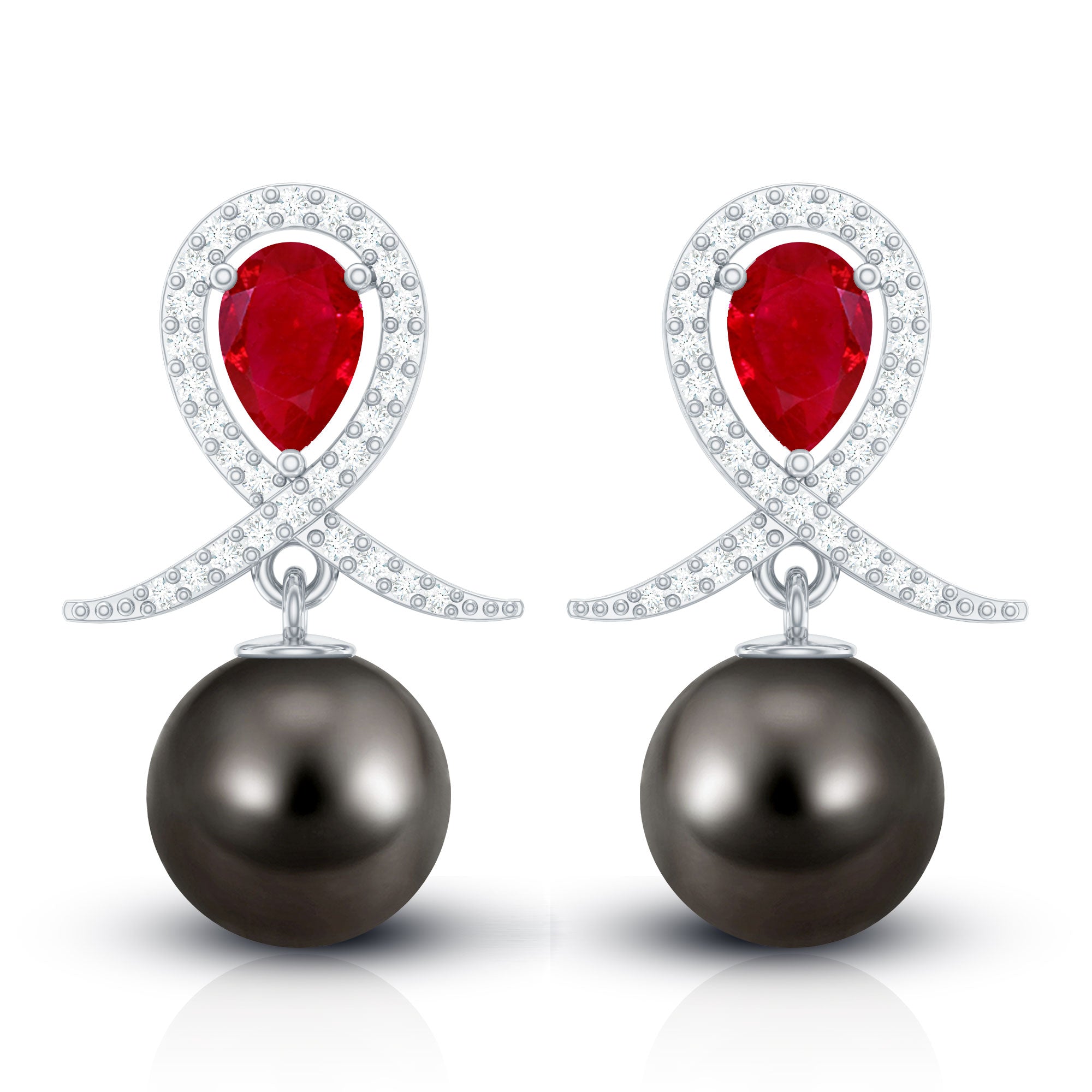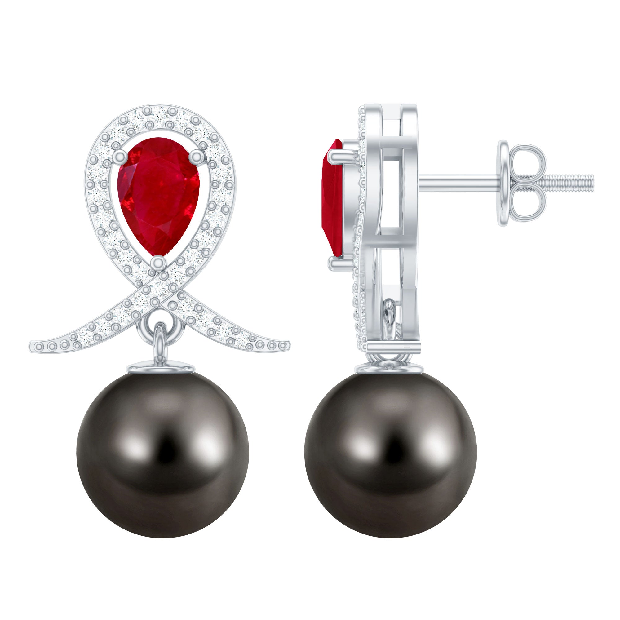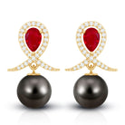 Ruby and Moissanite Teardrop Earrings with Tahitian Pearl Drop
