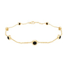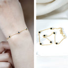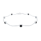 Enhance your wrist with the brilliance and sophistication of this Station Chain Bracelet. It showcases seven round cut Black Spinel stones, each securely held in a bezel setting, emanating a radiant glow. These AAA quality black spinel stones are thoughtfully spaced along a delicate chain, allowing each gem to shine independently. This Black Spinel Bracelet achieves an ideal harmony between minimalism and elegance, offering a subtle yet captivating sparkle to your everyday outfits. You can wear it solo for a stylish, effortless look or layer it with other cherished pieces; this Bezel Set Bracelet is a vital addition to your jewelry collection. Additionally, it makes a delightful gift for your loved ones, making it suitable for celebrating milestones, birthdays, or simply honoring lifes beautiful moments. Whether you are getting ready for a night out or looking to elevate your daily look with a touch of glamour, this august birthstone bracelet effortlessly enhances your fashion style.