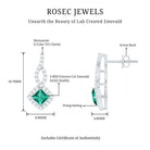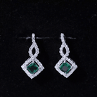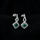 - The Drop Earrings feature a 4 MM princess cut lab-created emerald set in prongs, surrounded by round cut moissanite stones, plus a unique design at the top embellished with small moissanite stones.