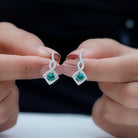 Silver Lab Created Emerald Drop Earrings with Moissanite