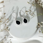 Some jewelry accessories demand attention so as Lab Grown Black Diamond Earrings. Enhancing appearance, enchanting style, and mesmerizing charm make these Hoop Drop Earrings as a standout look for your special day. Crafted from White Gold Plated Silver, these Wedding Earrings for Bride are embellished with 7X10 MM Pear Shape Lab Grown Black Diamond in Prong Setting with Moissanite Halo. Set as a drop with the unmistakable simplicity turns it into a black striking look. They sway with your move and offer a subtle style to your wedding look. These Black Gemstone Earrings resemble your class and are the heart of the jewelry, which is admired by her. Having amazing aesthetics and versatility, these Teardrop Earrings have AAAA Quality Lab Grown Black Diamond and D-VS1 Quality Moissanite, having versatile color and clarity. These Statement Earrings with mysterious and sultry black gemstones are in the notice of all the onlookers and are also the desirable traits for any romantic union. Embodying timeless beauty, it is a tremendous instrument for self-expression, too.