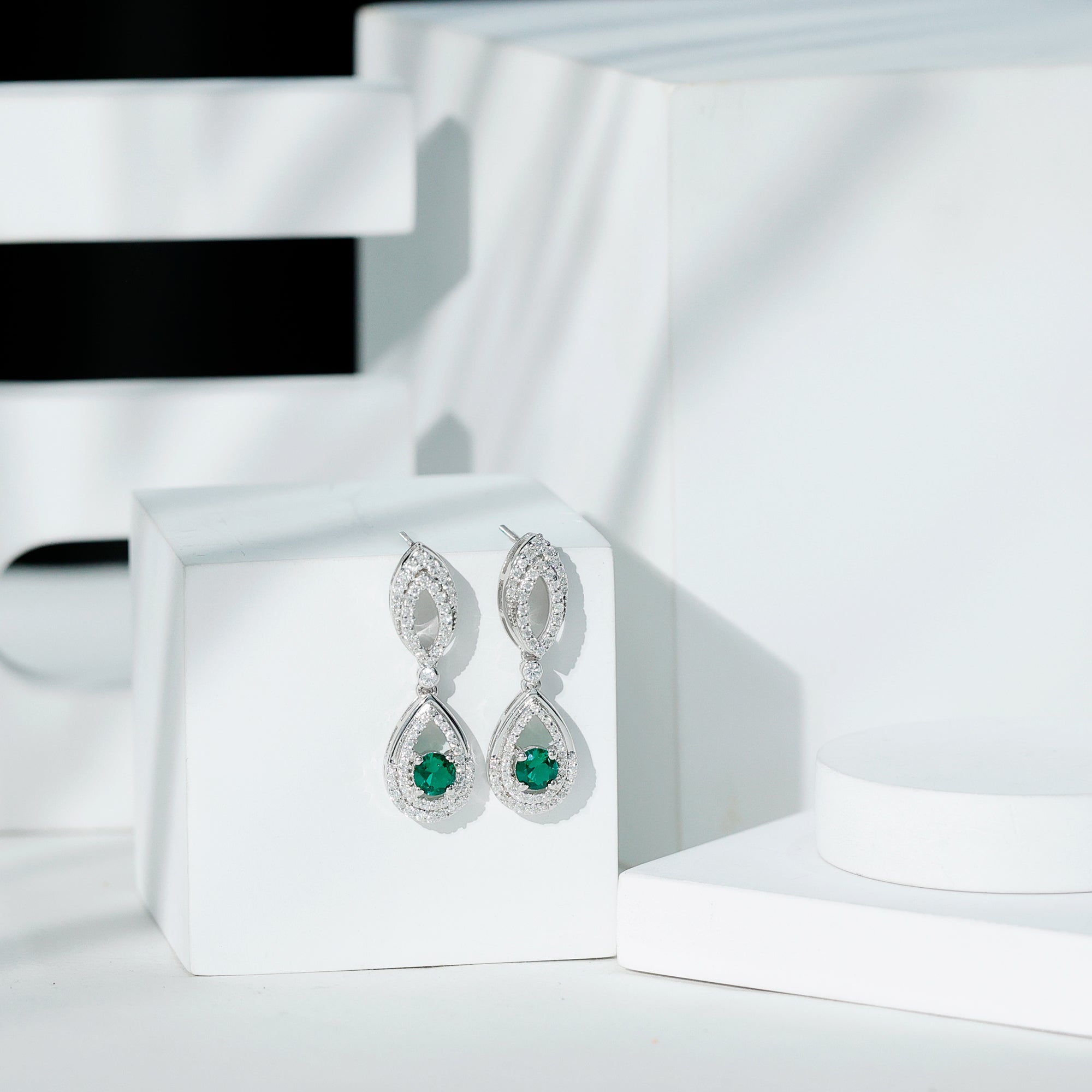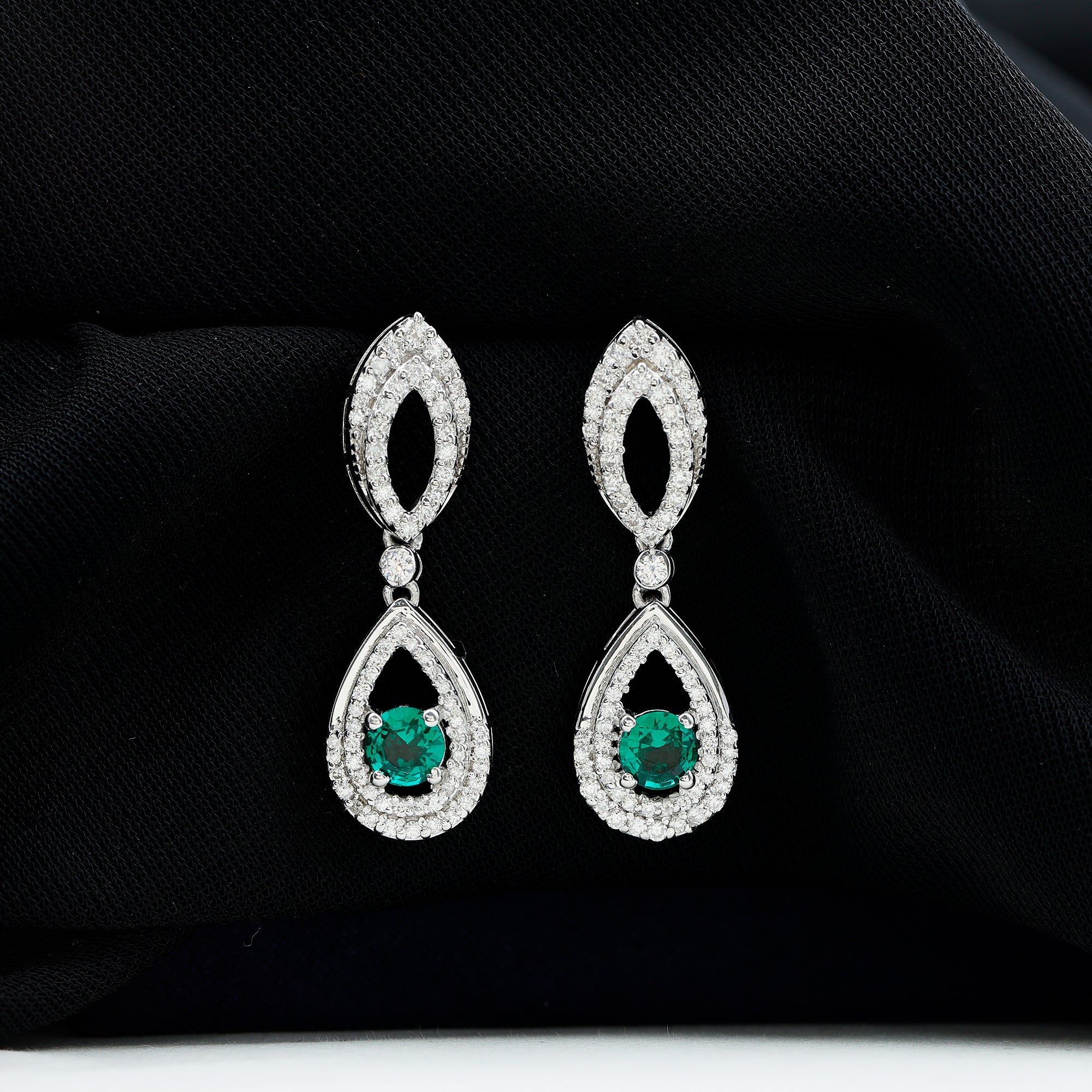 Silver Lab Grown Emerald Teardrop Earrings for Women