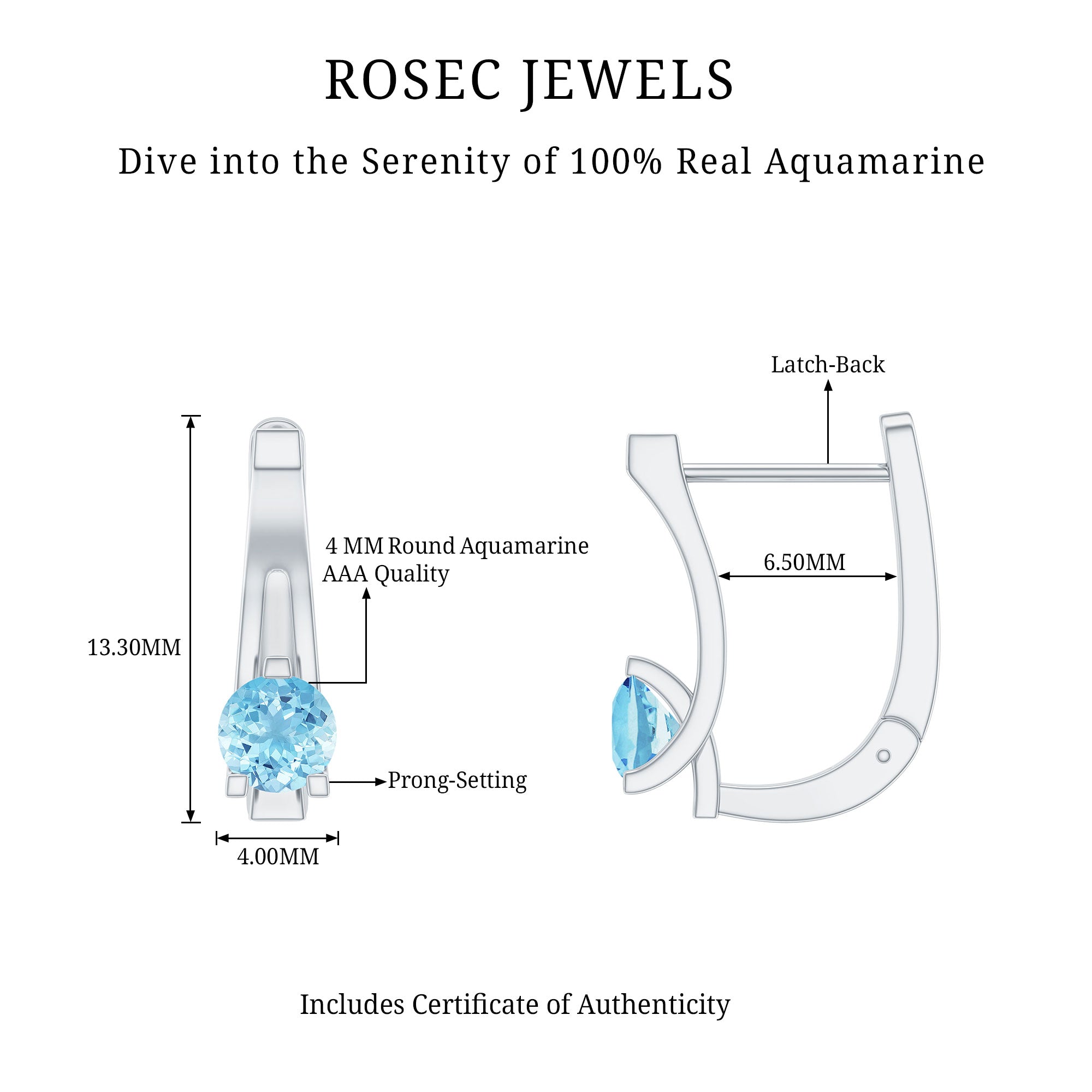 Designed to capture the essence of effortless elegance, these J Hoop Earrings are a modern twist on a classic favorite. Each earring features a 4 mm Round Shape Aquamarine set in 3 Prong Setting, radiating an ocean-blue glow that reflects calm sophistication and natural beauty. The sleek J shaped hoop design offers a contemporary edge, allowing the earrings to gracefully catch the light from every angle. Finished with secure Latch Back Closure, these Aquamarine Hoop Earrings promise comfort, making them perfect for all-day wear or special occasions. The versatile style of these Aquamarine Earrings pairs effortlessly with both casual and formal ensembles, adding a subtle yet striking pop of color and refinement. Presented in a jewelry box, these March Birthstone Earrings make an ideal gift for birthdays, anniversaries or a thoughtful gesture to celebrate someone special. Timeless yet trendy, these Aquamarine Birthstone Earrings embody a balance of modern design and natural charm. Perfect for the woman who loves pieces that are both stylish and meaningful, these earrings are a must-have addition to any jewelry collection.