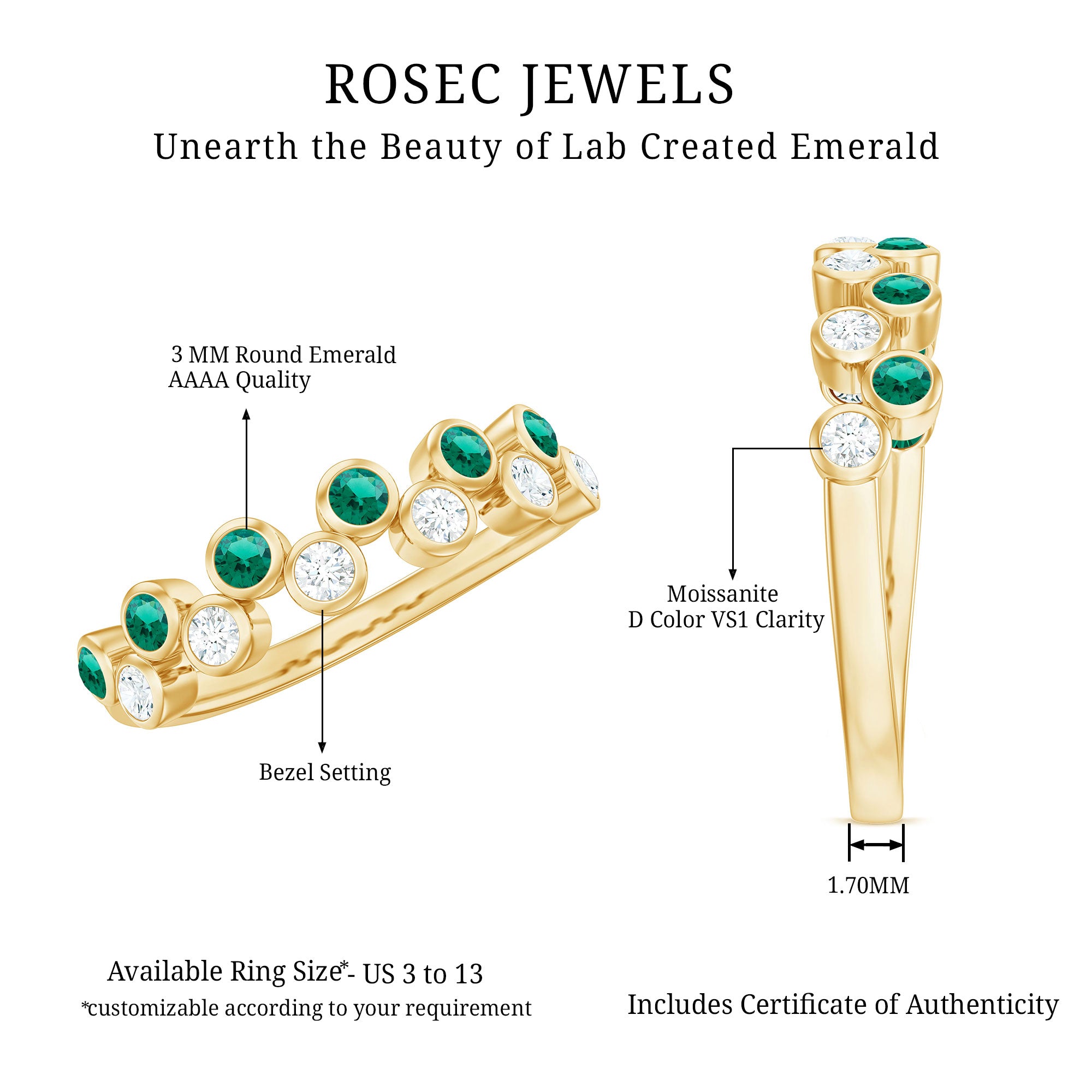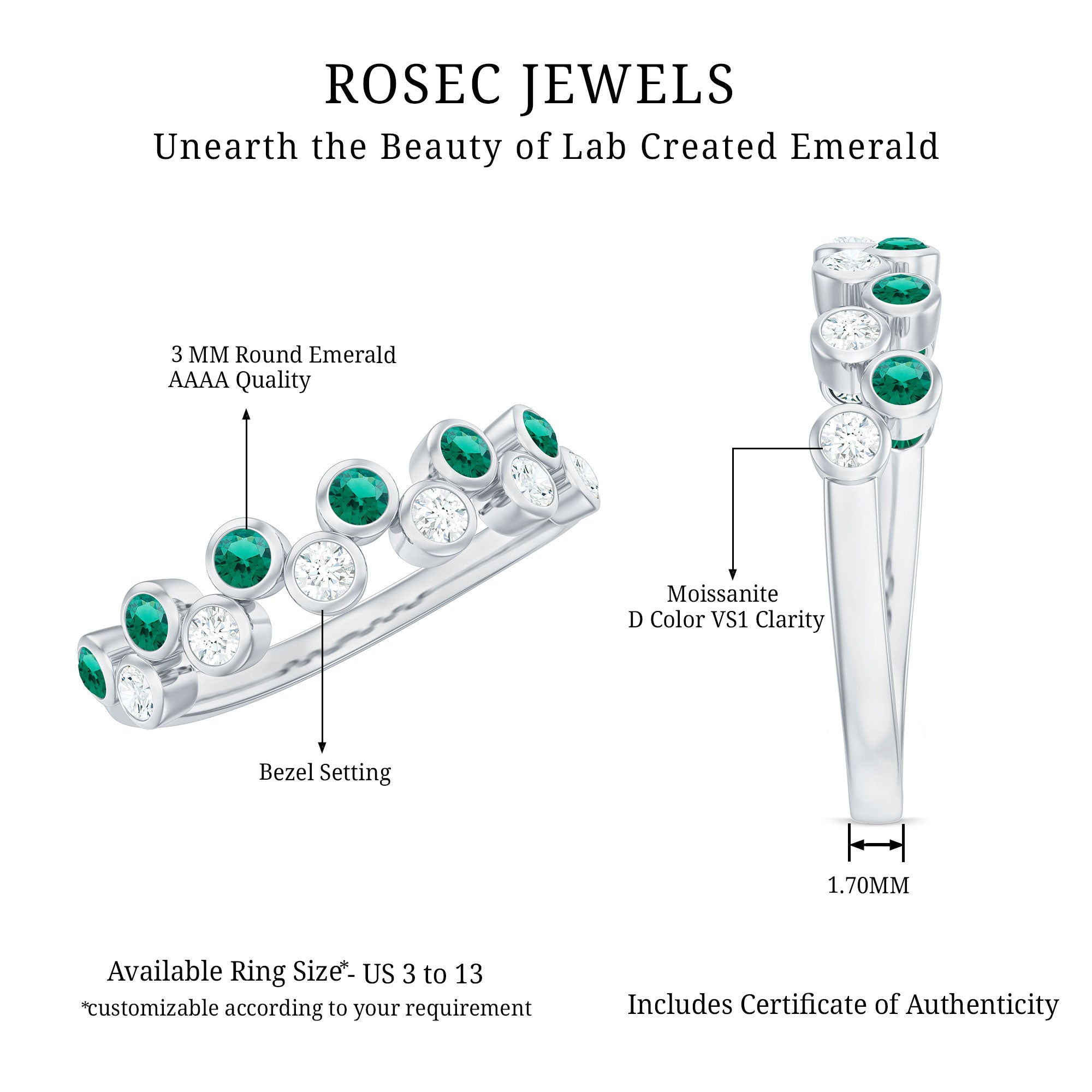 Simple Bezel Set Round Created Emerald and Moissanite Half Eternity Ring