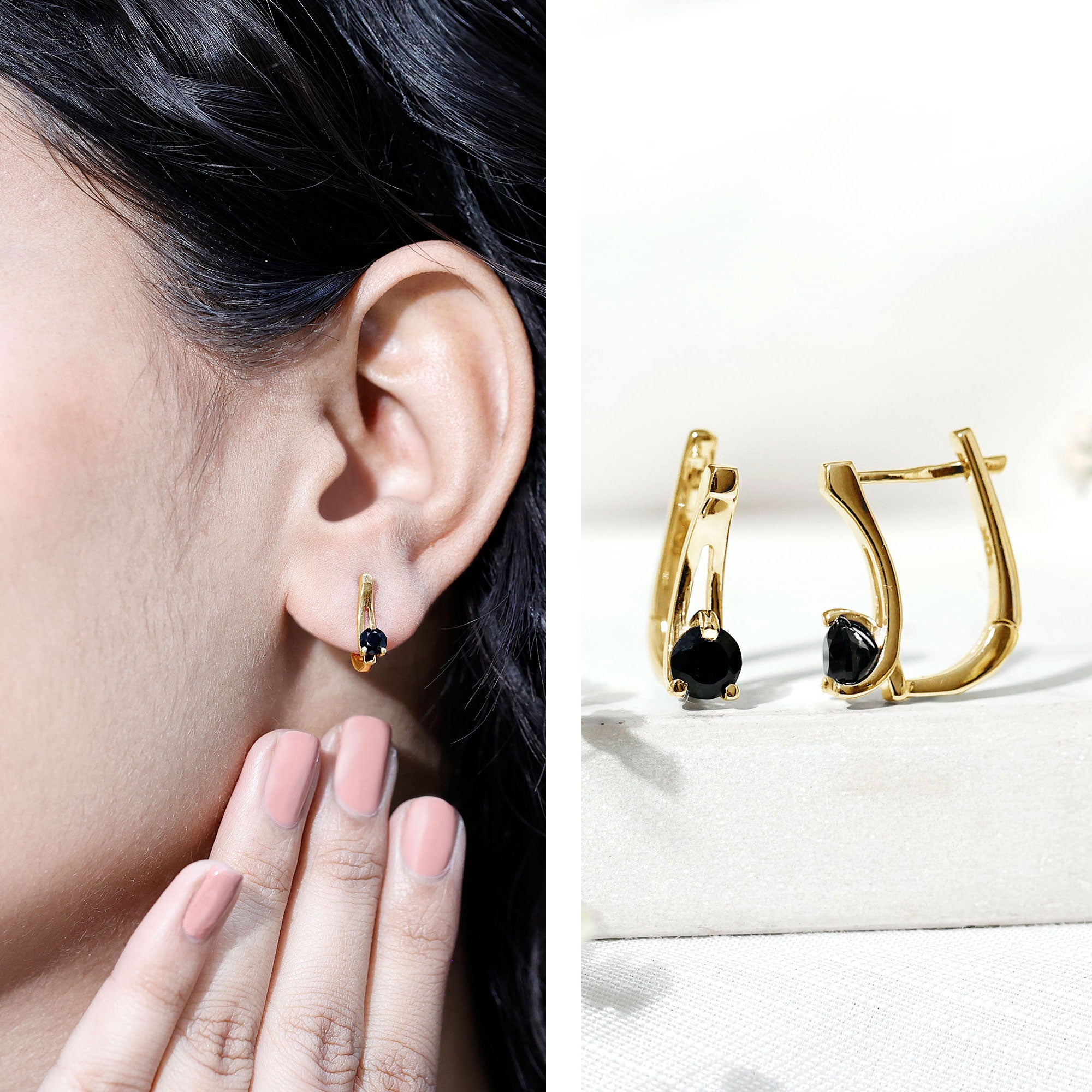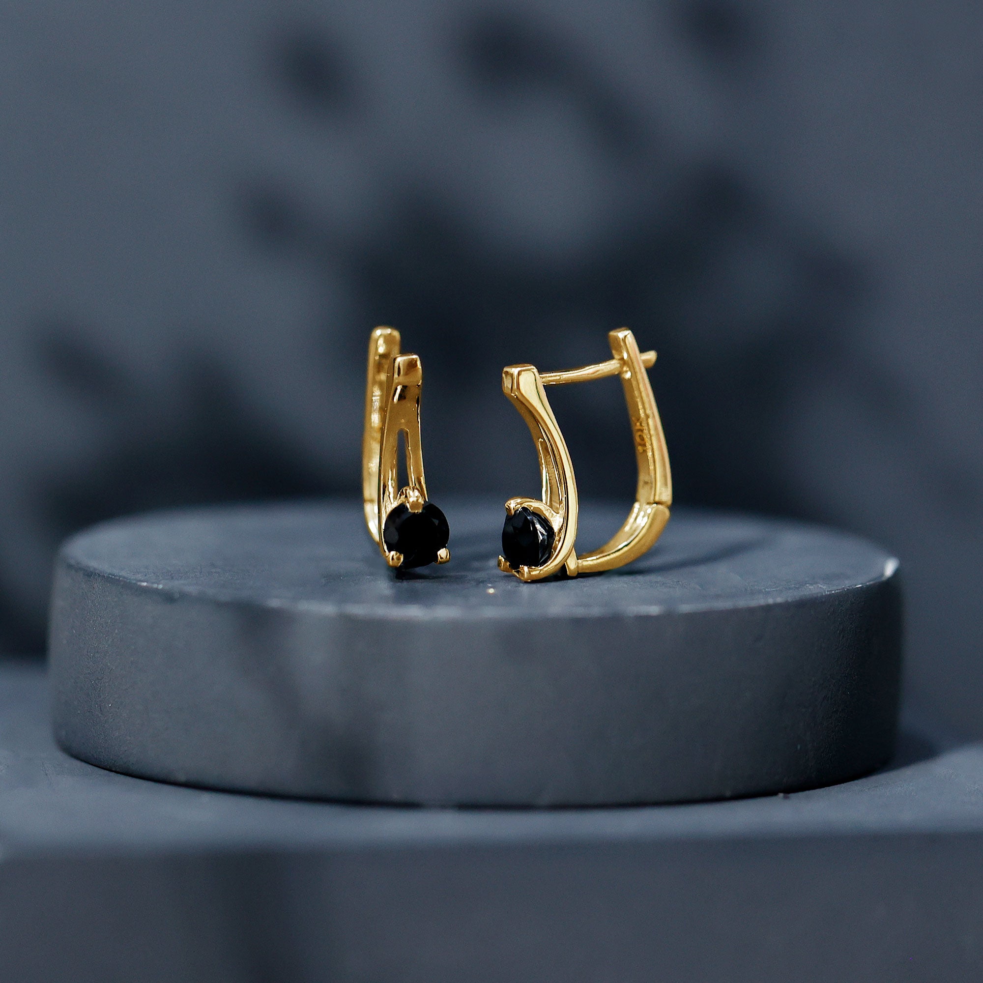 Enhance your everyday style with the bold elegance of these J Hoop Earrings. Designed to make a statement without saying a word, each earring features a 4 mm Round Shape Black Onyx set in 3 Prong Setting, which radiates confidence and sophistication. The J shaped design adds a modern twist to a classic design, while the secure Latch Back Closure ensures comfort and ease for all-day wear. Whether you are dressing up for a special night out or adding a touch of edge to your casual look, these Black Onyx Earrings are the perfect finishing touch. Their deep black hue pairs effortlessly with any outfit, making these Black Onyx Hoop Earrings a versatile favorite for every occasion. Presented in a beautiful jewelry box, these December Birthstone Earrings arrive ready to gift, ideal for birthdays, anniversaries or simply to treat yourself. Elegant, timeless and undeniably chic, these Fine Earrings are the kind of accessory that makes every moment shine just a little brighter.