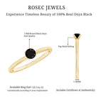 Inspired by the beauty of simplicity, this Black Onyx Promise Ring is a timeless piece made for everyday elegance. The design features a 5 MM round cut Black Onyx, securely set in peg head setting. With its deep, rich black hue, the AAA quality onyx adds a bold yet graceful touch to the Solitaire Promise Ring, making it a perfect choice for those who love minimal style. Known as the birthstone for December, Black Onyx is more than just a beautiful gem. It is believed to bring strength, balance, and protection to its wearer, making it a thoughtful and meaningful gift. Whether you are marking a promise, a birthday, or simply want to show someone how much they mean to you, this Black Onyx Solitaire Ring speaks volumes with its simple beauty. The slim band keeps the look light and comfortable, ideal for everyday wear. Crafted with care and made to last, this December Birthstone Ring is a wonderful blend of elegance and practicality. It arrives in a charming box, ready to be given on any special occasion or just because.