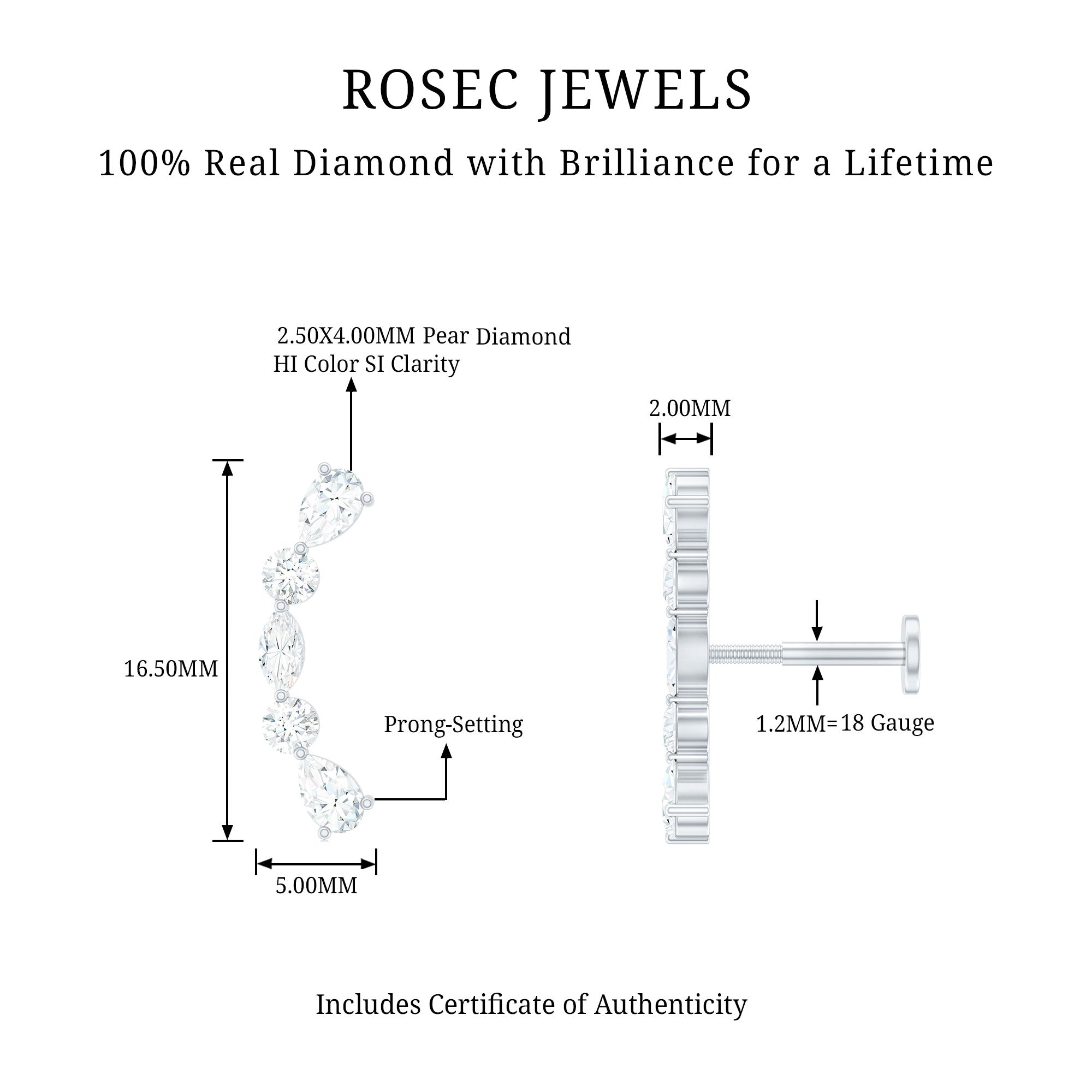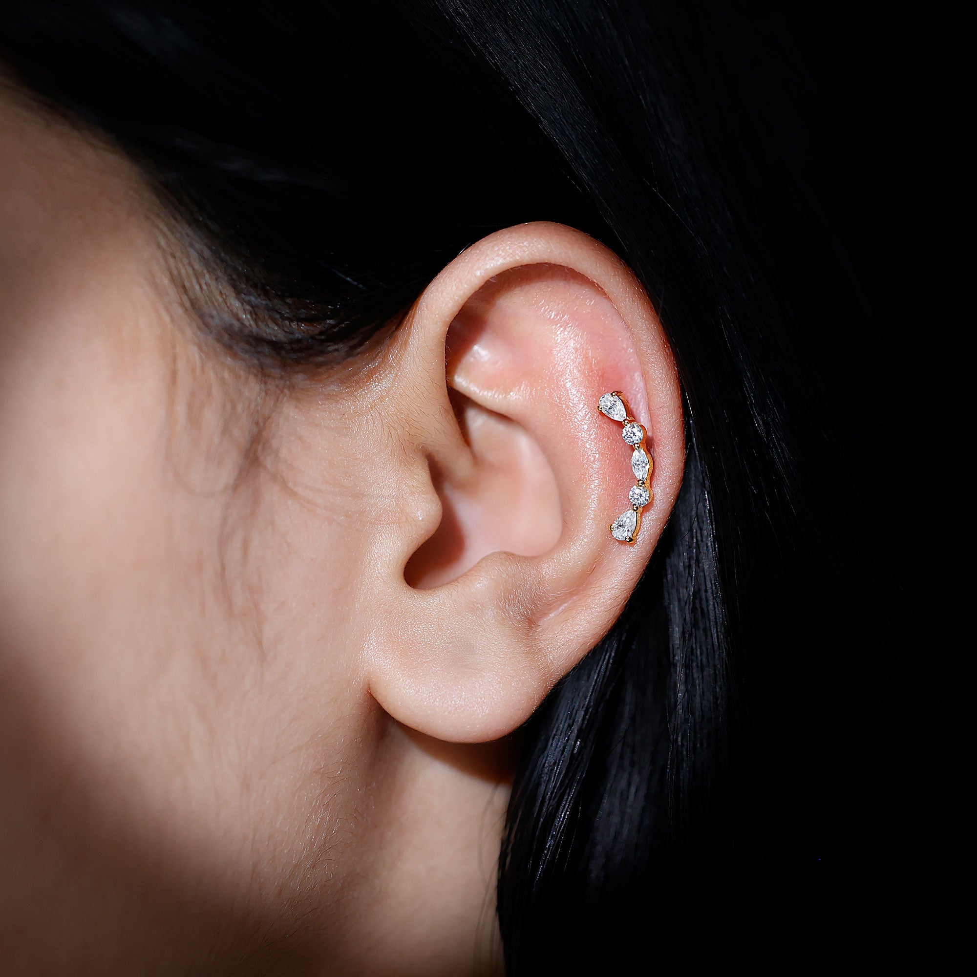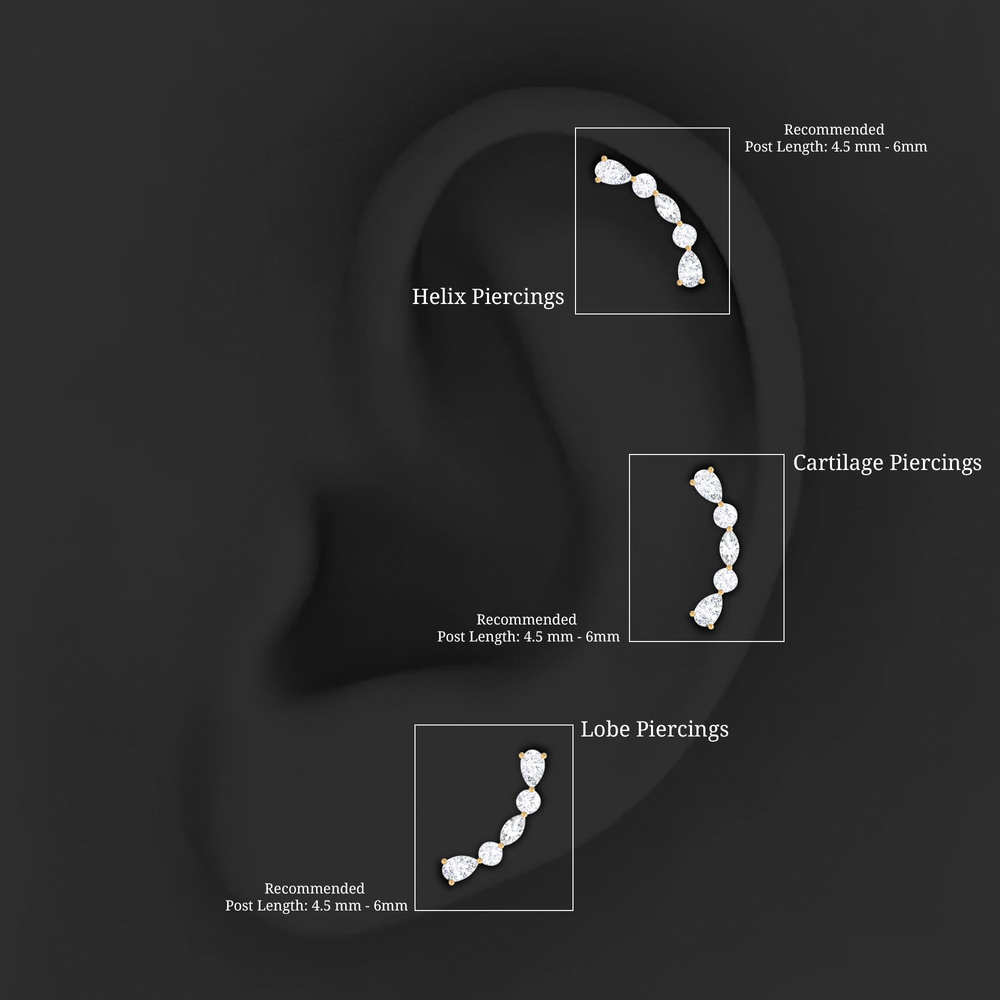 - This crawler earring showcases Pear, Marquise, and Round Shape Diamonds set in Prong Setting in a curved row, adding a burst of beauty!