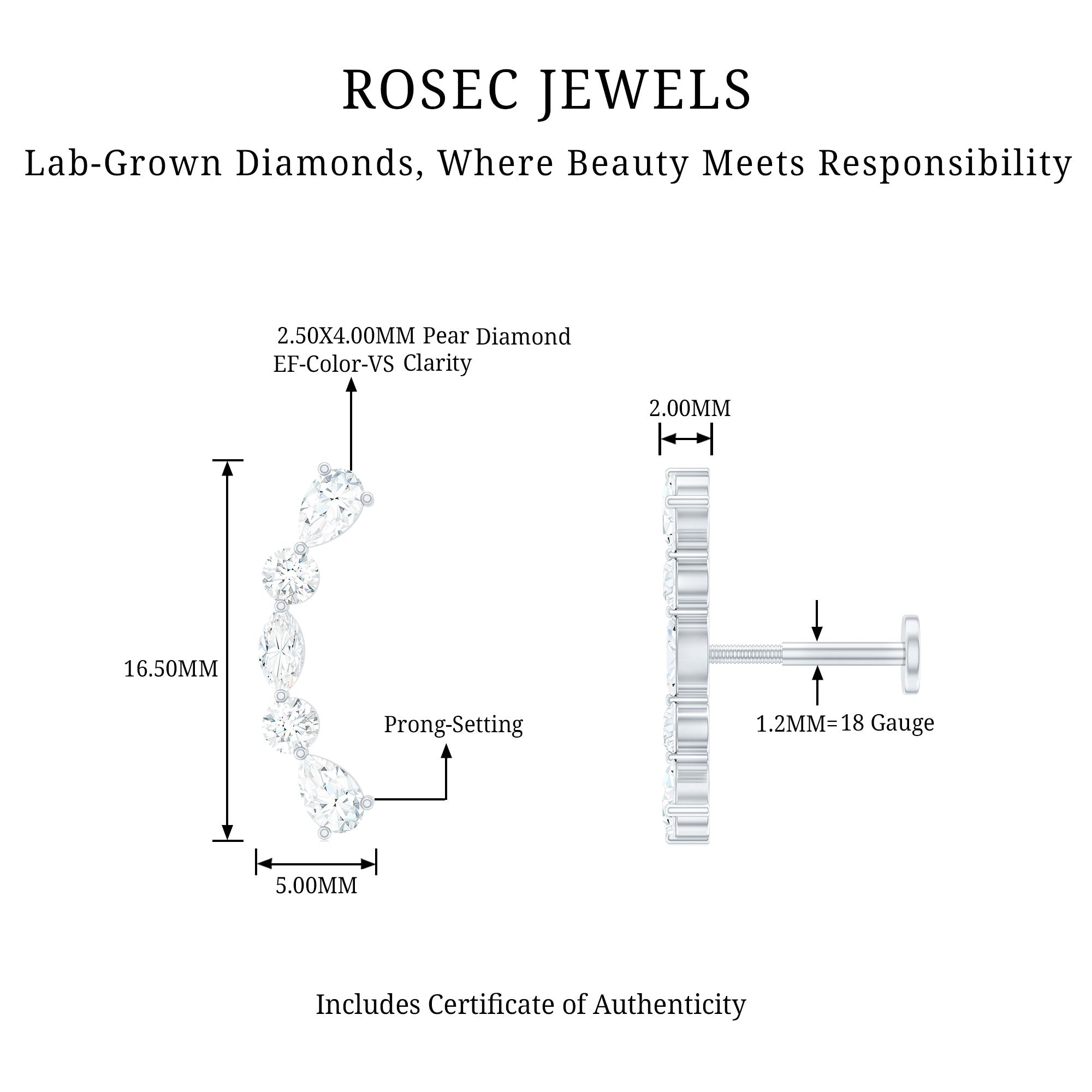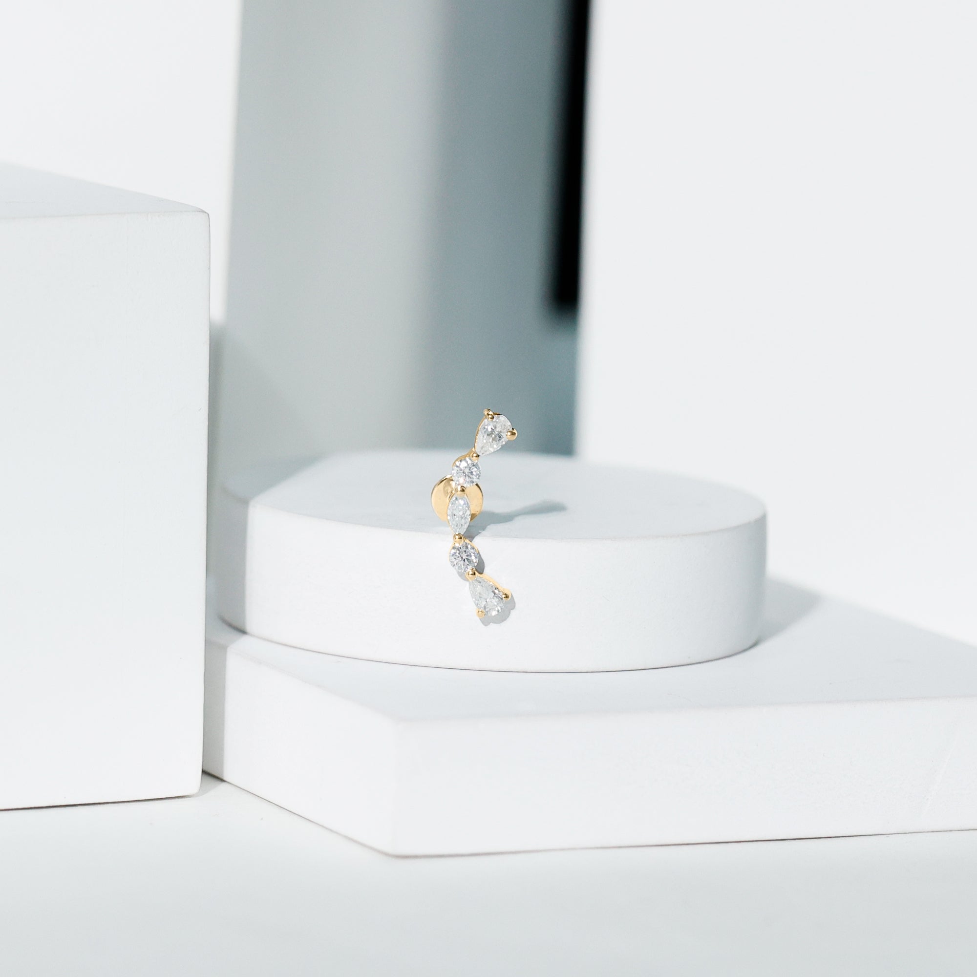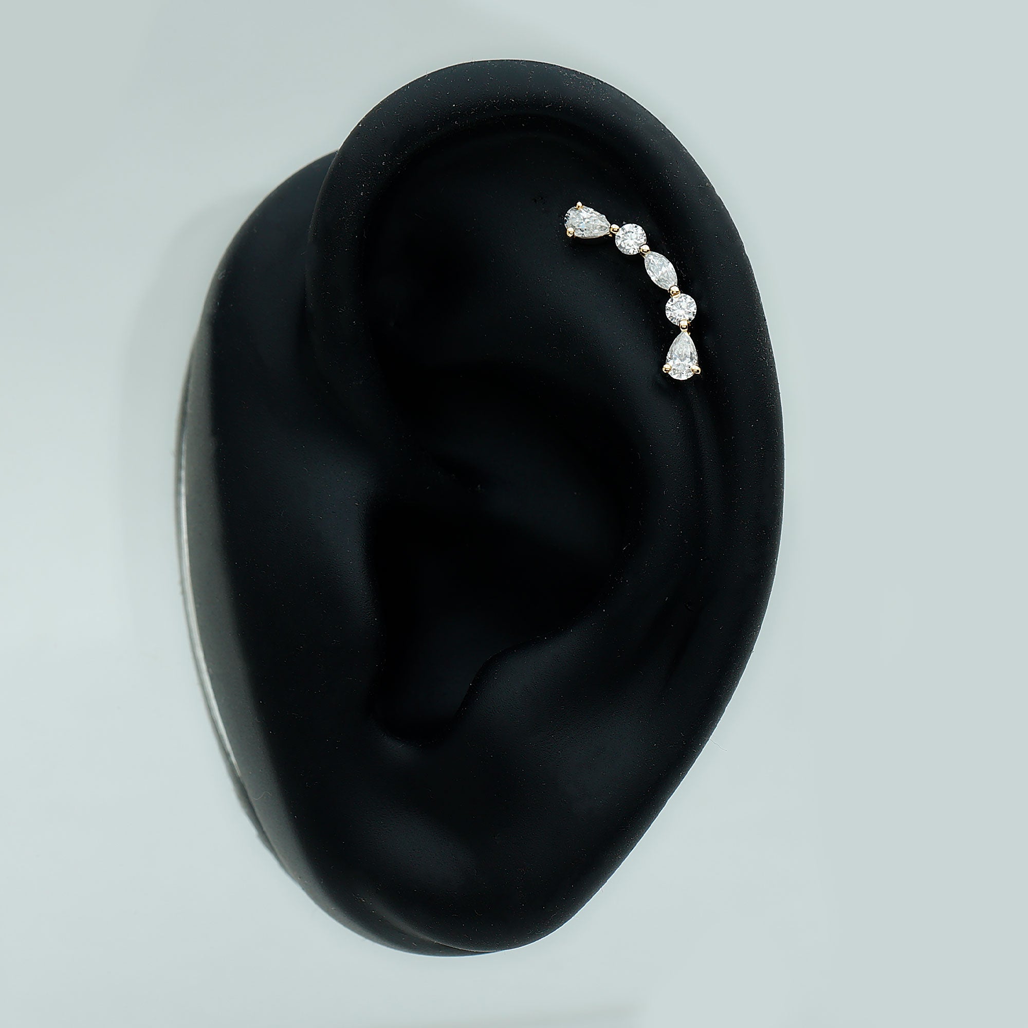 - This crawler earring showcases Pear, Marquise, and Round Shape Diamonds set in Prong Setting in a curved row, adding a burst of beauty!