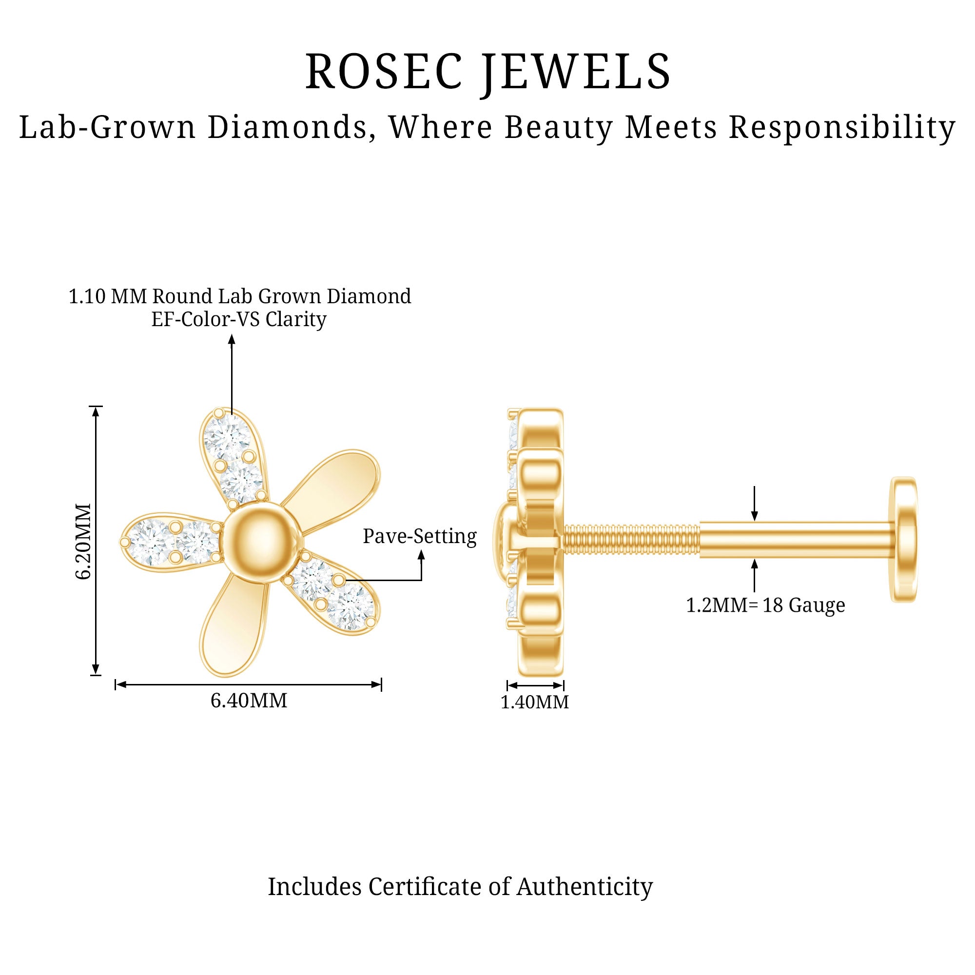 We know you love it: its your favorite Floral Earring. This earring features dainty Round Diamonds add a touch of sparkle.You can never go wrong with the cute stud earring. It can be worn on your Helix, Cartilage, Tragus, Conch, or Upper Lobe Piercing. Upgrade your eardrobe with this elegant Diamond Earring that’s crafted in Hallmarked Metal for a shiny and finished look. Ready to spread some elegance? Gift this splendid Cartilage Earring to your beloved wife, and make her day as special as yours.