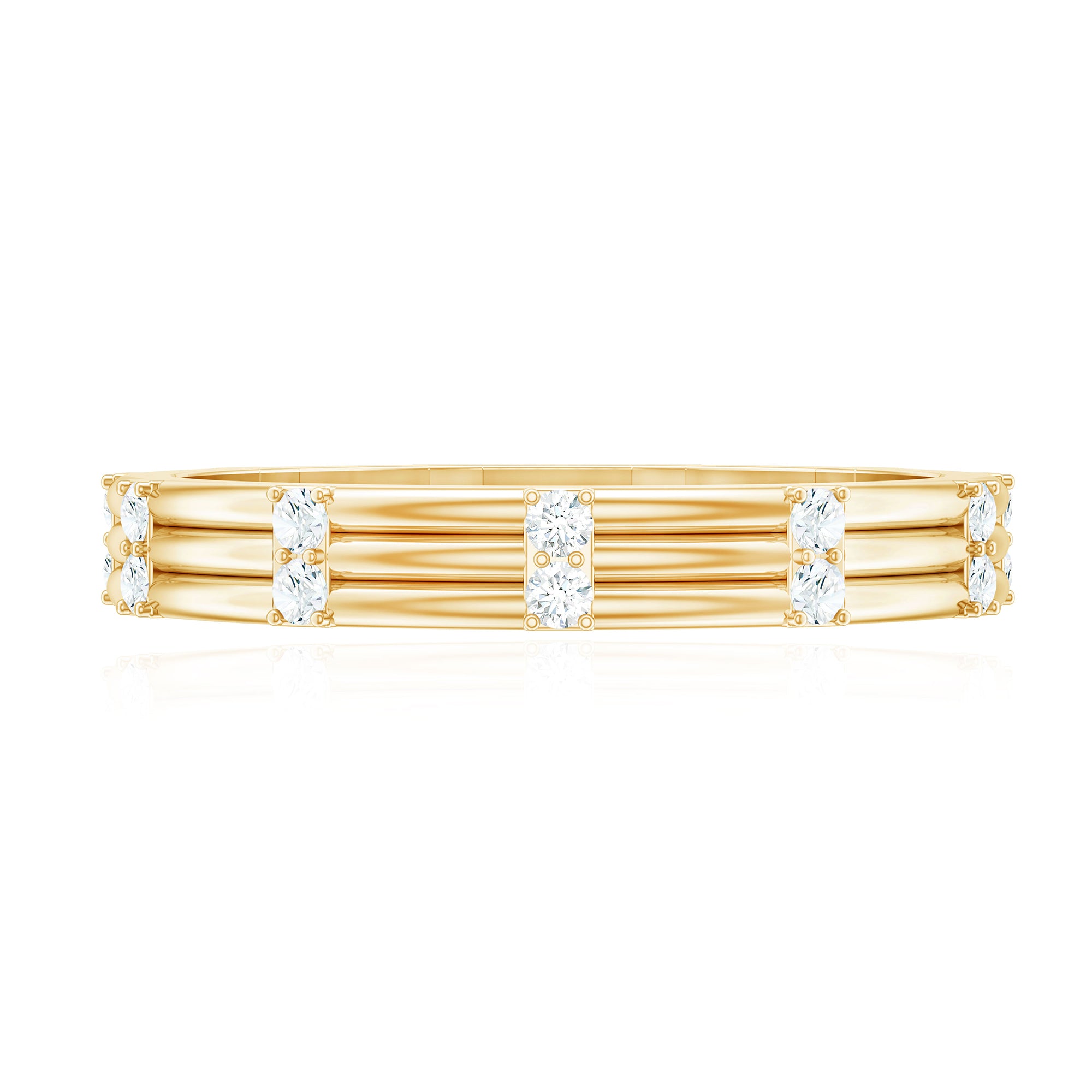 This Diamond Stackable Band Ring is the epitome of refined elegance and versatile style. This exquisite band features a sleek, minimalistic design adorned with a row of sparkling Diamond set in a Pave Setting, creating a continuous, shimmering effect. Enhancing the brilliance of the Diamond with the polished band which is perfect for stacking with other rings or wearing solo for a touch of understated luxury, this Band effortlessly complements any jewelry collection. Its delicate design ensures a timeless appeal, making it ideal for commitment or as an anniversary present. Whether celebrating a milestone or simply adding a hint of sparkle to your look, the Minimal Diamond Stackable Ring is a versatile and elegant choice that will be cherished for years to come.