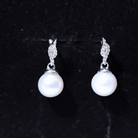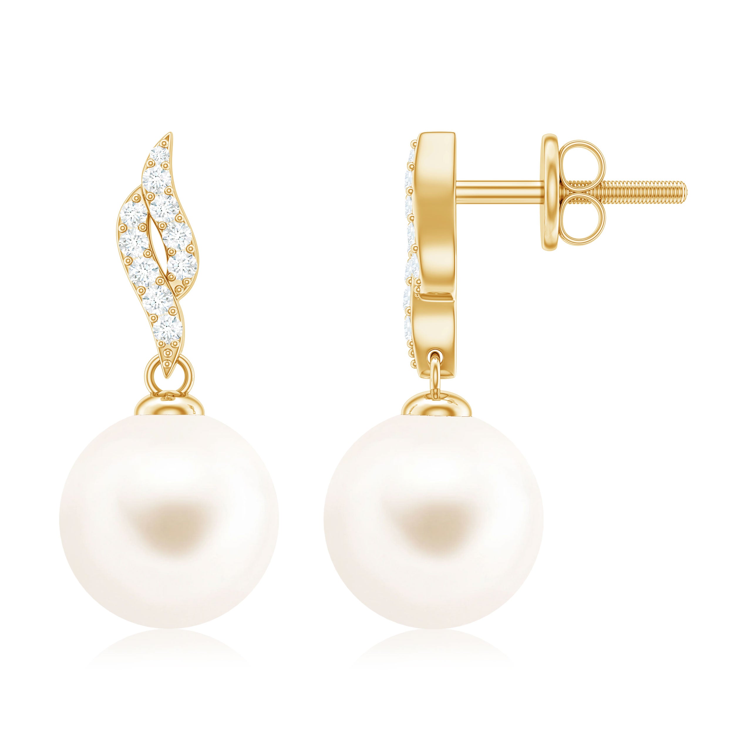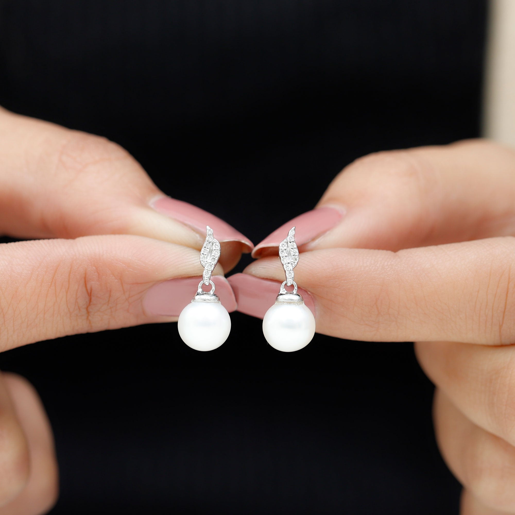 Simple Drop Earrings with Freshwater Pearl and Diamond Stones