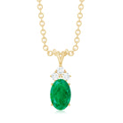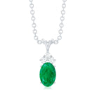 Simple Emerald Oval Pendant Necklace with Diamond Trio