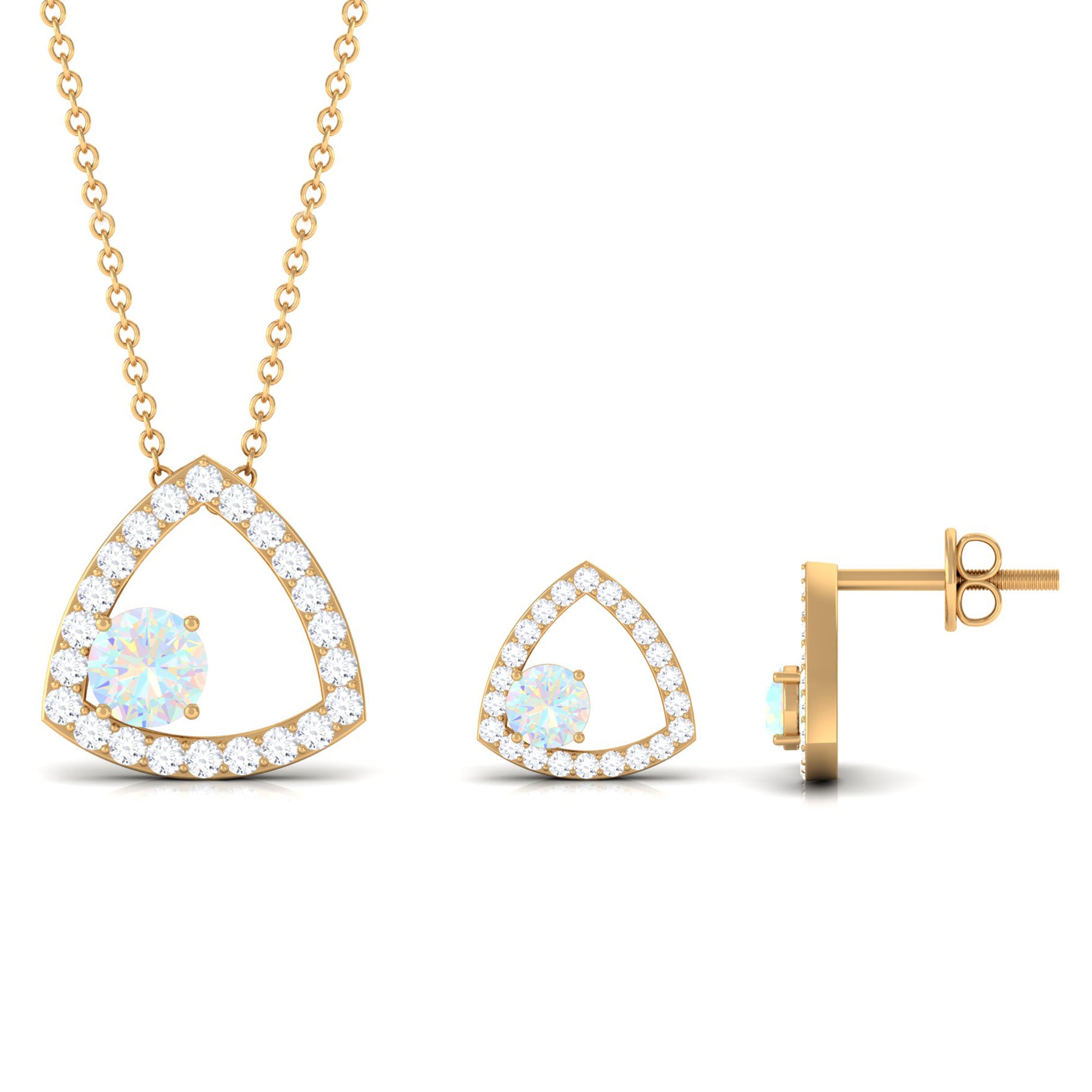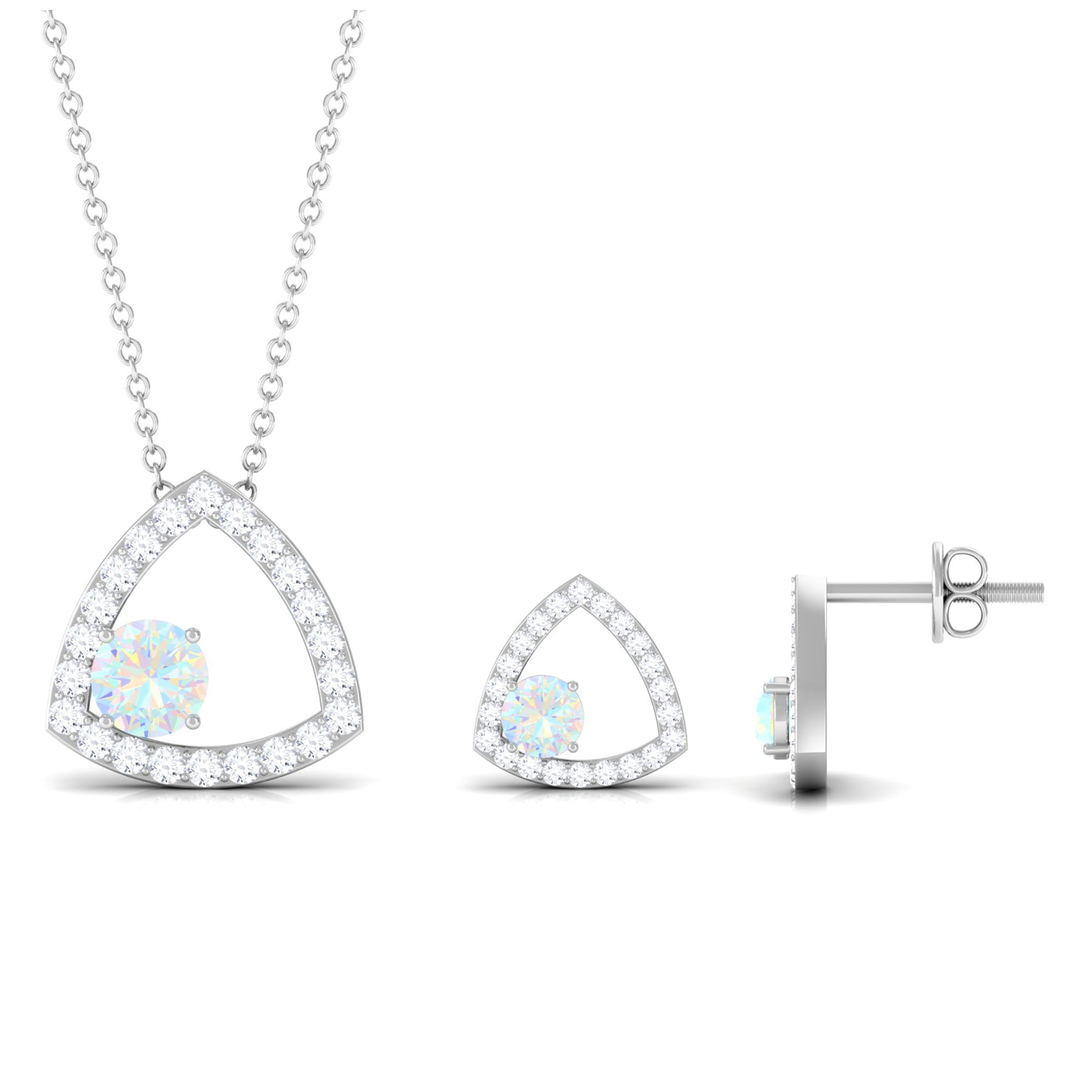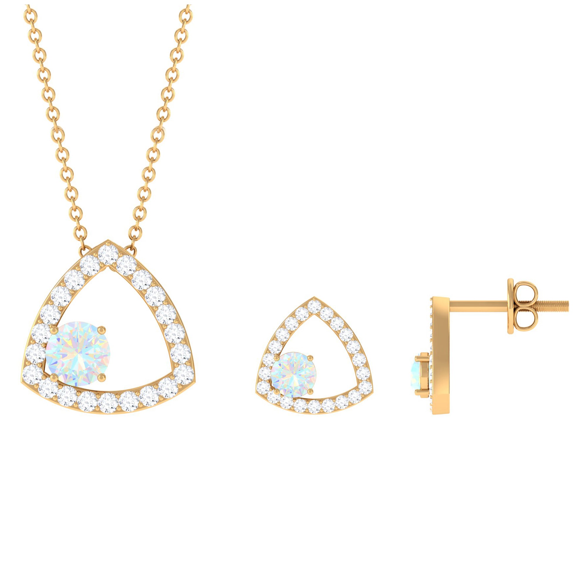 Simple Ethiopian Opal and Moissanite Triangle Jewelry Set