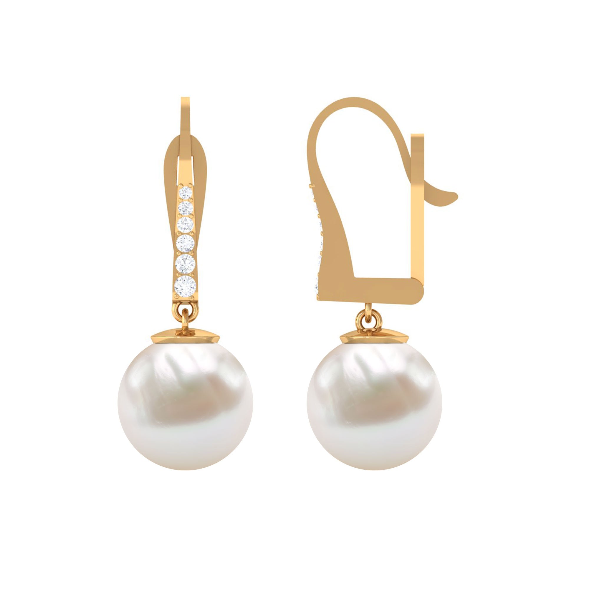 Simple Freshwater Pearl and Diamond Drop Earrings with Lever Back