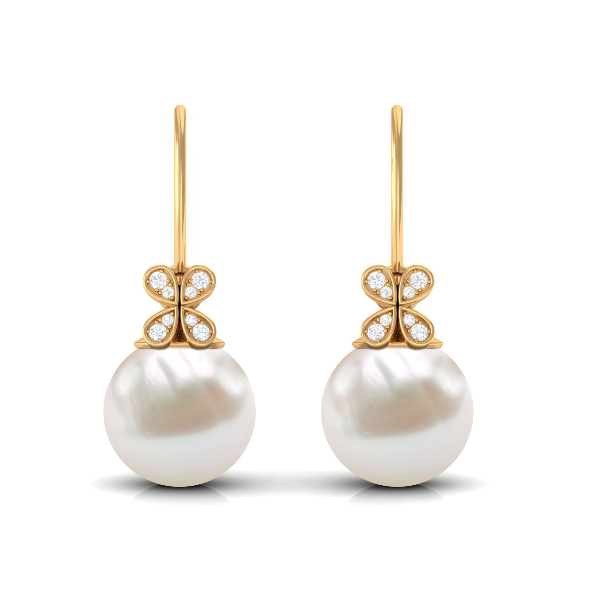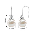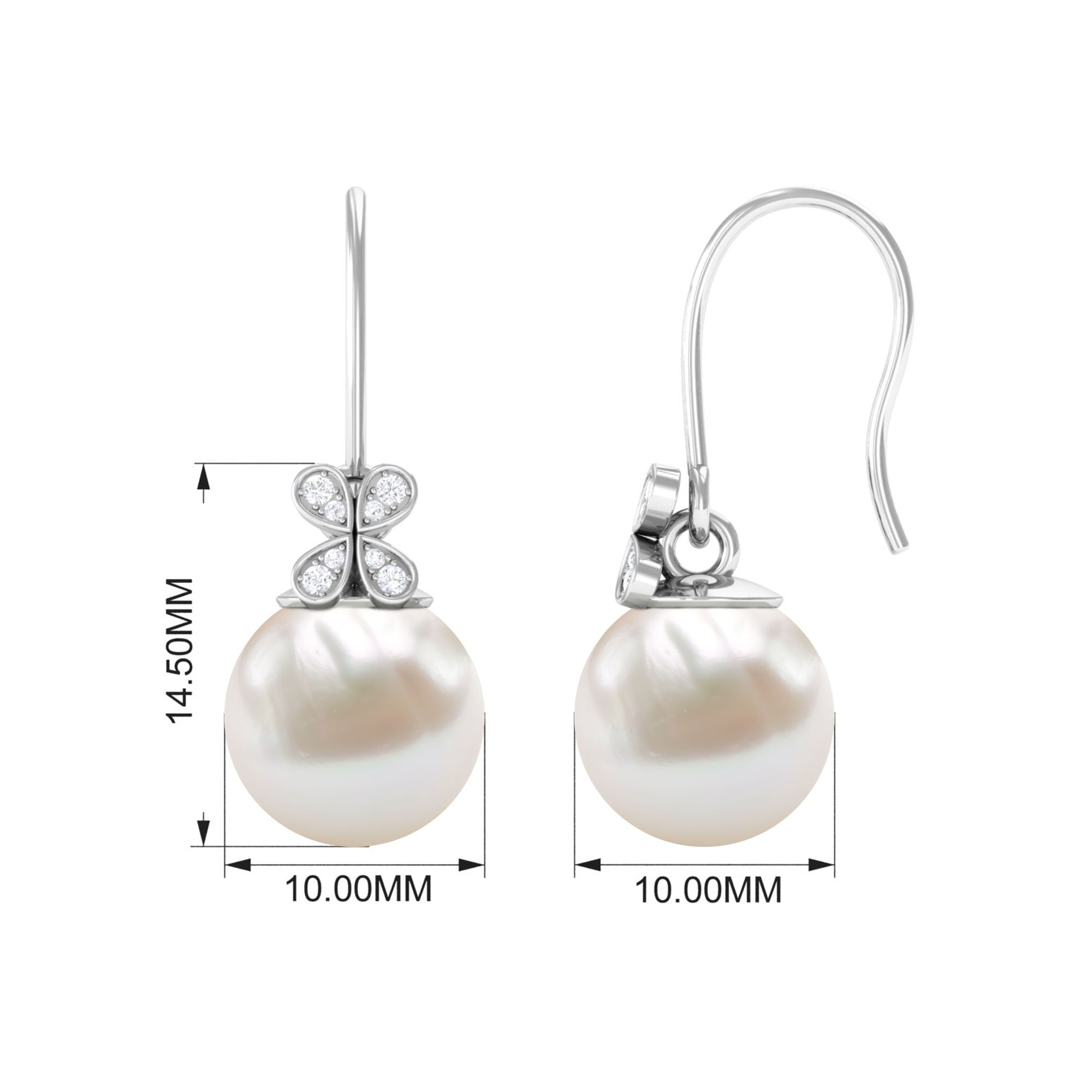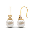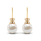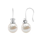 Simple Freshwater Pearl and Diamond Flower Drop Earrings with Fish Hook