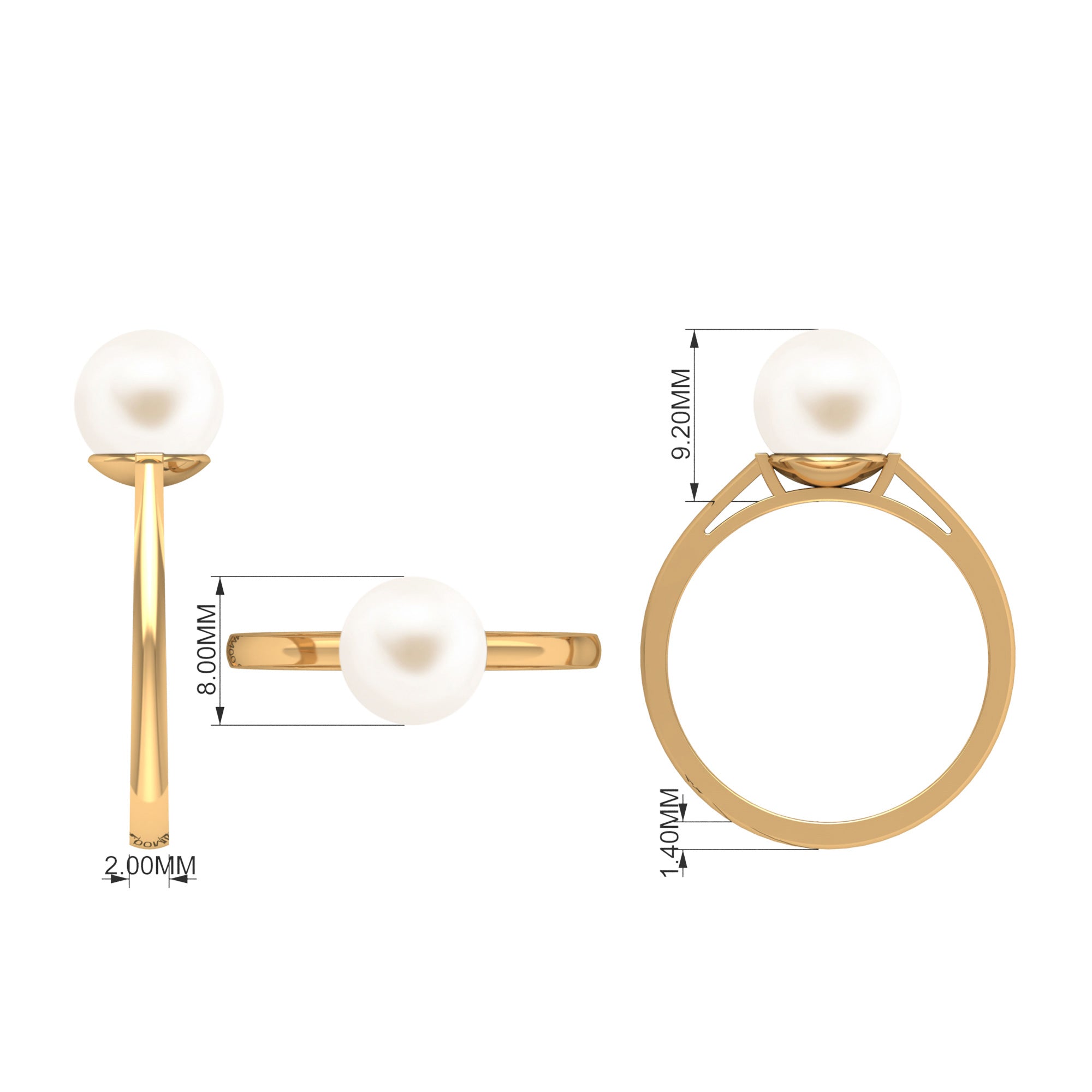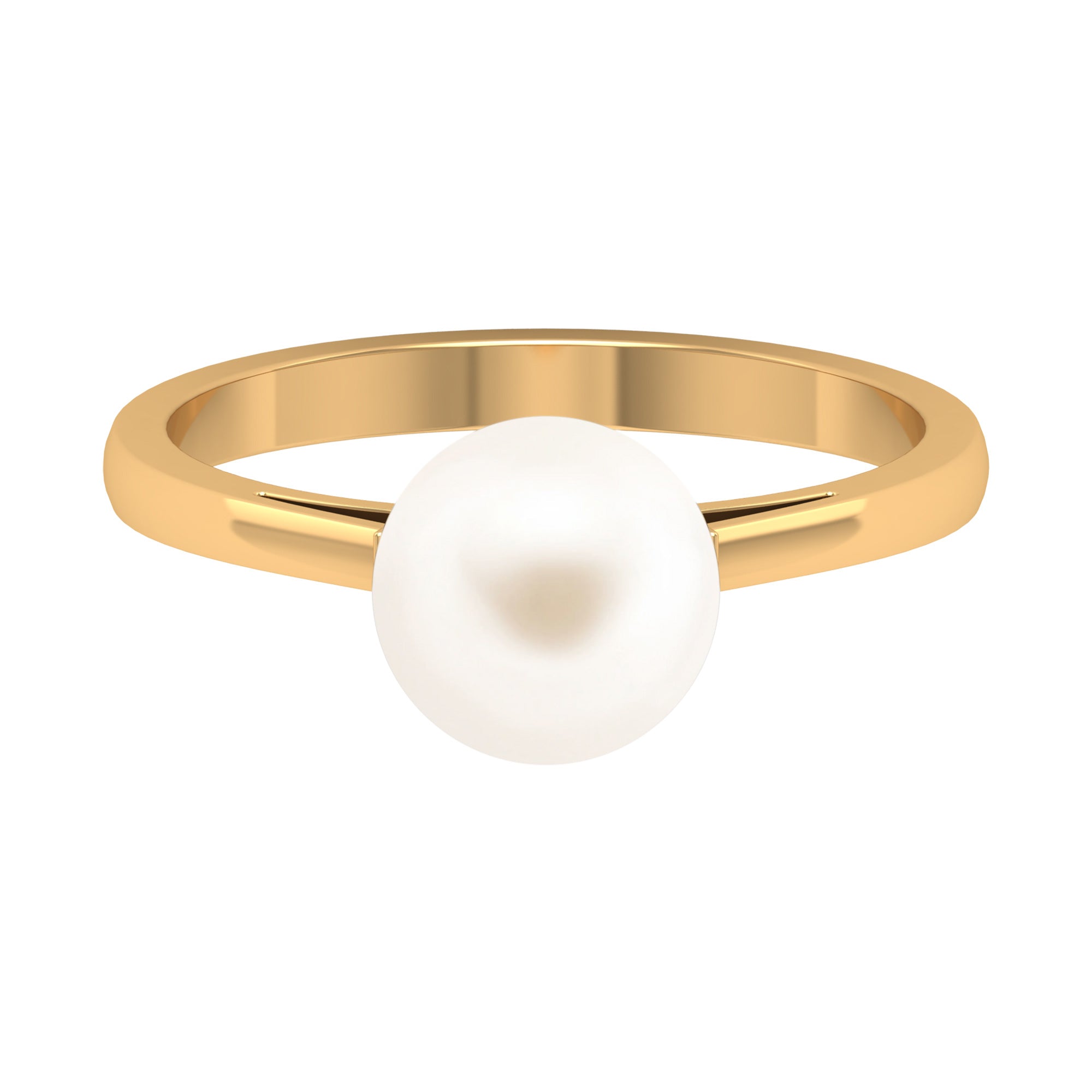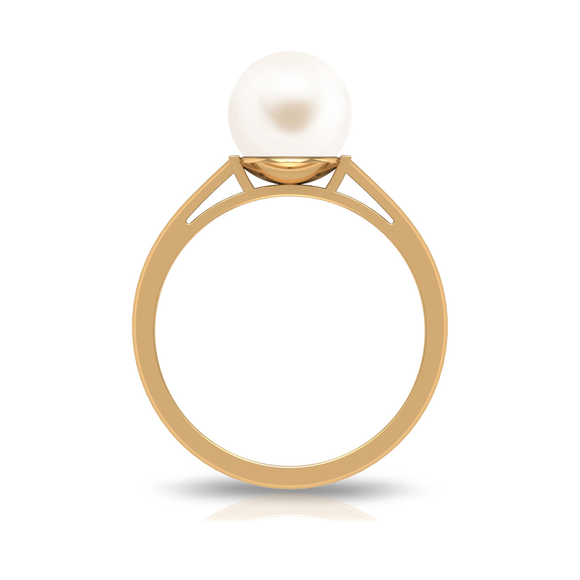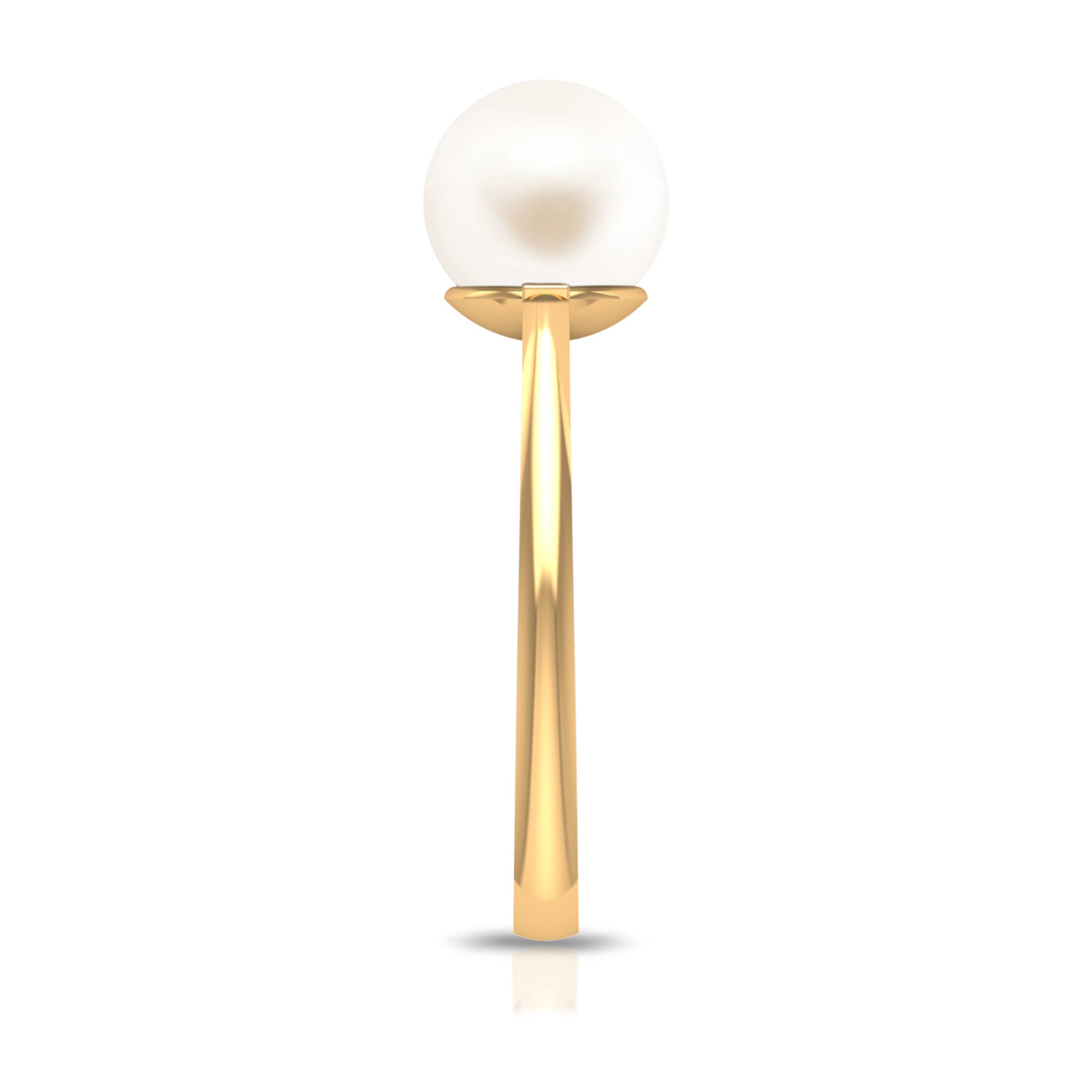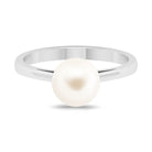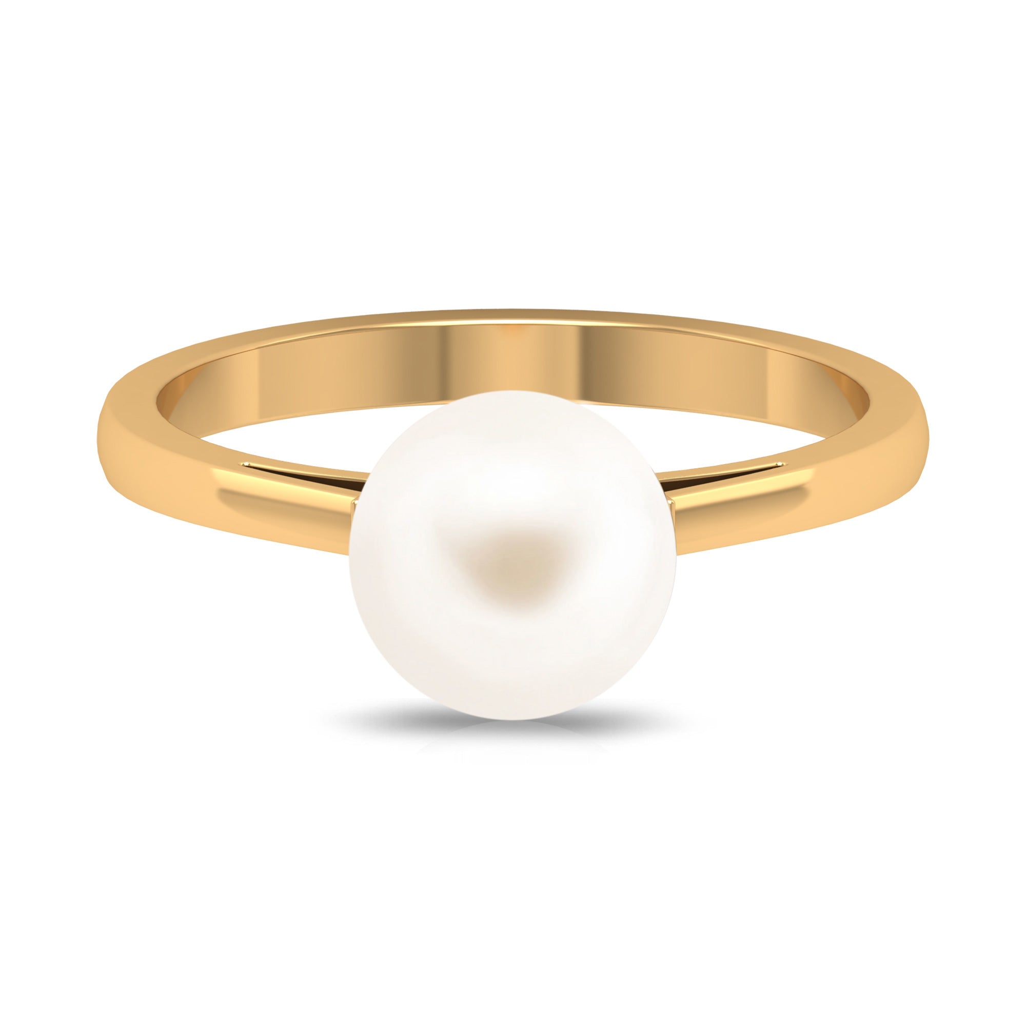 Simple Freshwater White Pearl Solitaire Engagement Ring in Gold