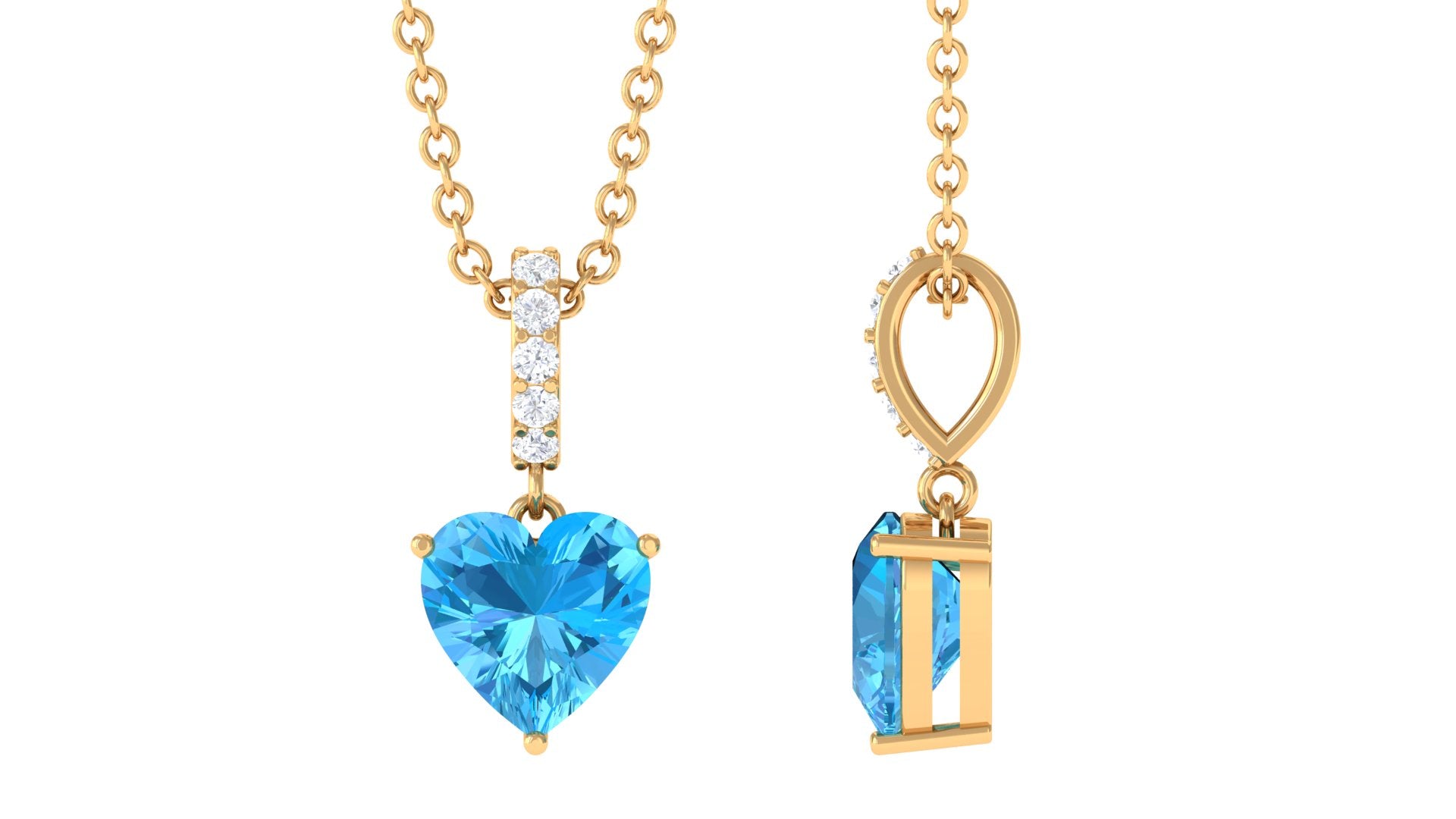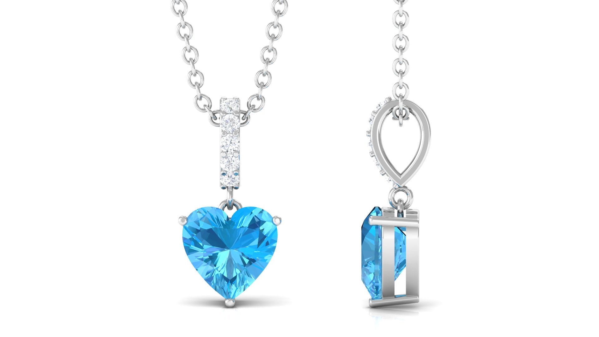 Simple Heart Shape Swiss Blue Topaz Solitaire Pendant with Diamond Accent Bail